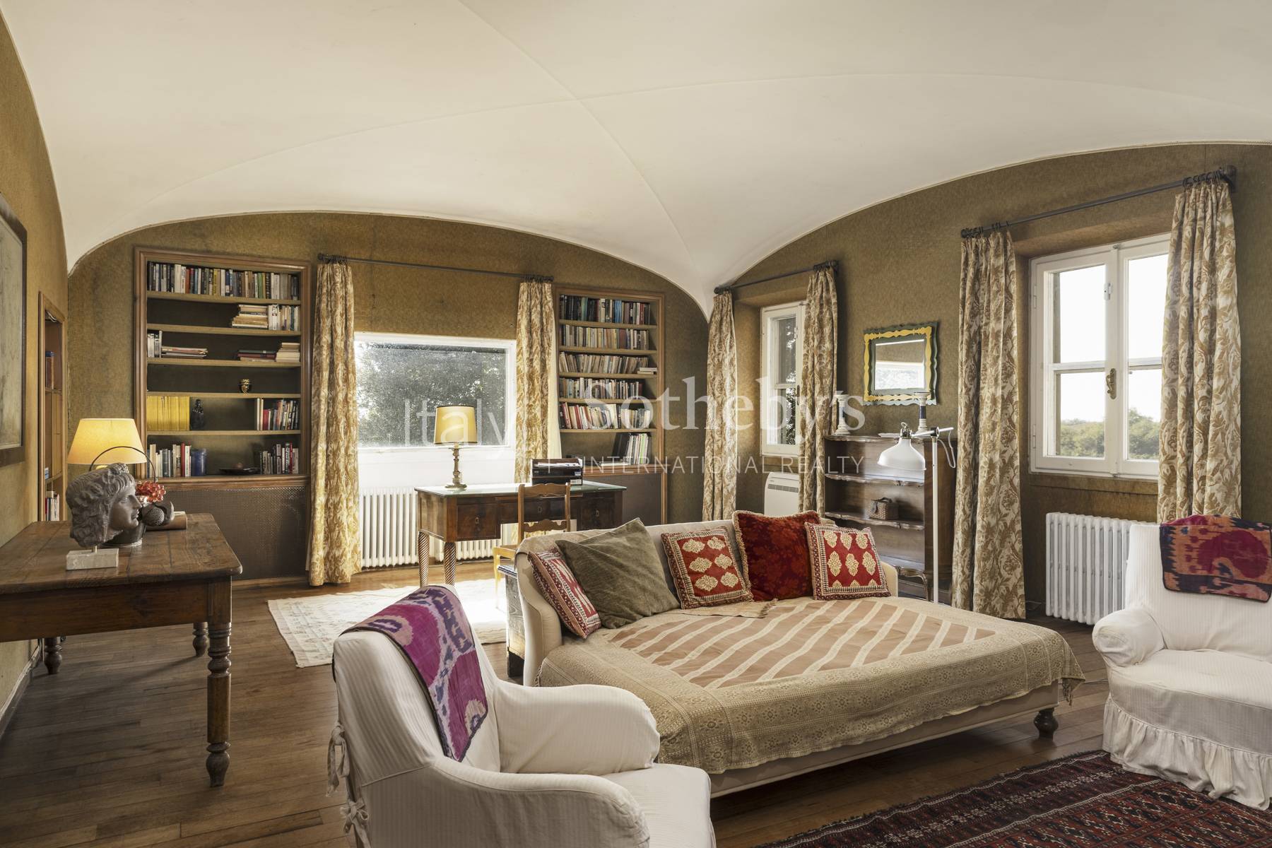 This elegant 17th-century property, located north of Rome, is set in an area of great historical and cultural significance, with roots dating back to the Etruscan and Roman periods. It has been home to illustrious families, including the Medici.The villa, spread across three levels, offers over 1,000 sqm (10,7639 sq ft) of refined living space, along with an additional 1,500 sqm (16,1459 sq ft) of dépendances and outbuildings.The main floor is dominated by a grand entrance with a fireplace, leading to a spacious living room adorned with exposed beam ceilings, fireplaces, and an elegant library. The furnished veranda opens directly onto the gardens, creating an ideal space for dining and relaxation. The master suite is a true luxury retreat, with a fireplace, walk-in closet, private study, double bathrooms, and guest rooms, each with dedicated bathrooms. On the upper floor, there are additional bedrooms, each with an en-suite bathroom, while the ground floor includes a kitchen, dining room, and an independent service apartment.This magnificent historic residence extends across 40 ha of land, featuring meticulously landscaped gardens and lush woodlands. The garden, covering approximately 10,000 sqm (107,639 sq ft), is a landscape masterpiece designed by the renowned Russell Page, with various relaxation areas, a large pool with a guest-equipped dépendance, and a tennis court surrounded by greenery. The remaining 39 ha include fields, pastures, and woods, offering exceptional privacy and a rare natural beauty.An additional feature enhancing this remarkable property is the private Renaissance chapel, still consecrated, adding a touch of spirituality and historical charm. The presence of a helipad and ample parking complete the exclusivity of this residence.This property is a rare example of 17th-century rural architecture that has successfully preserved its authentic charm, blending tradition with modern comforts. Situated on a site inhabited since 300 AD, the villa offers a timeless living experience, surrounded by the beauty of the Roman countryside and just a short distance from the artistic wonders of Rome. Perfect as an exclusive residence or guesthouse, it is the ideal place for those seeking a prestigious home, where the serenity of nature meets luxury and the millennia-old history of the Eternal City.Despite its secluded and private location, the villa is just a short distance from the center of Rome, with easy access to the beaches of Fregene and Maccarese, Lake Bracciano, and Fiumicino Airport.