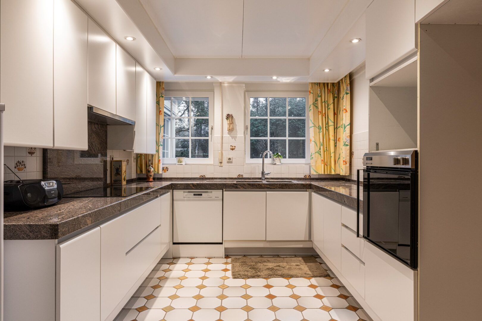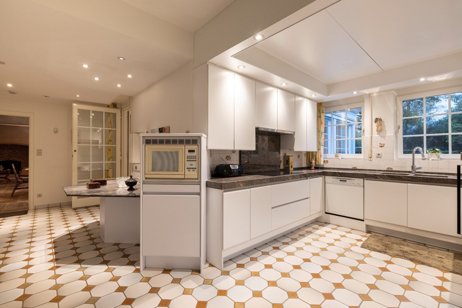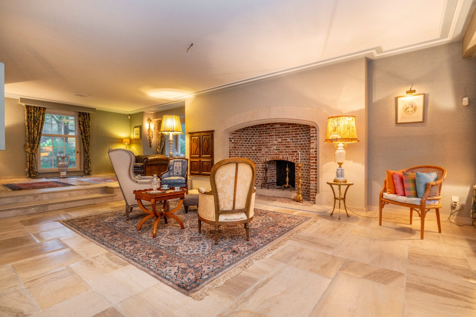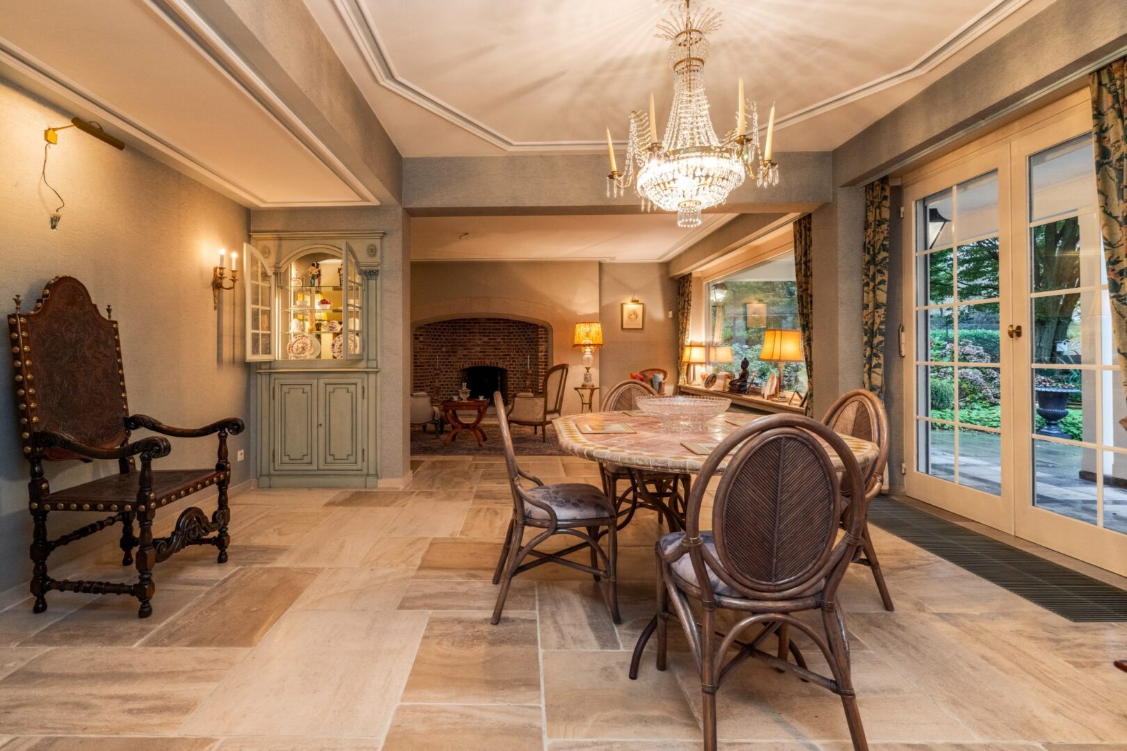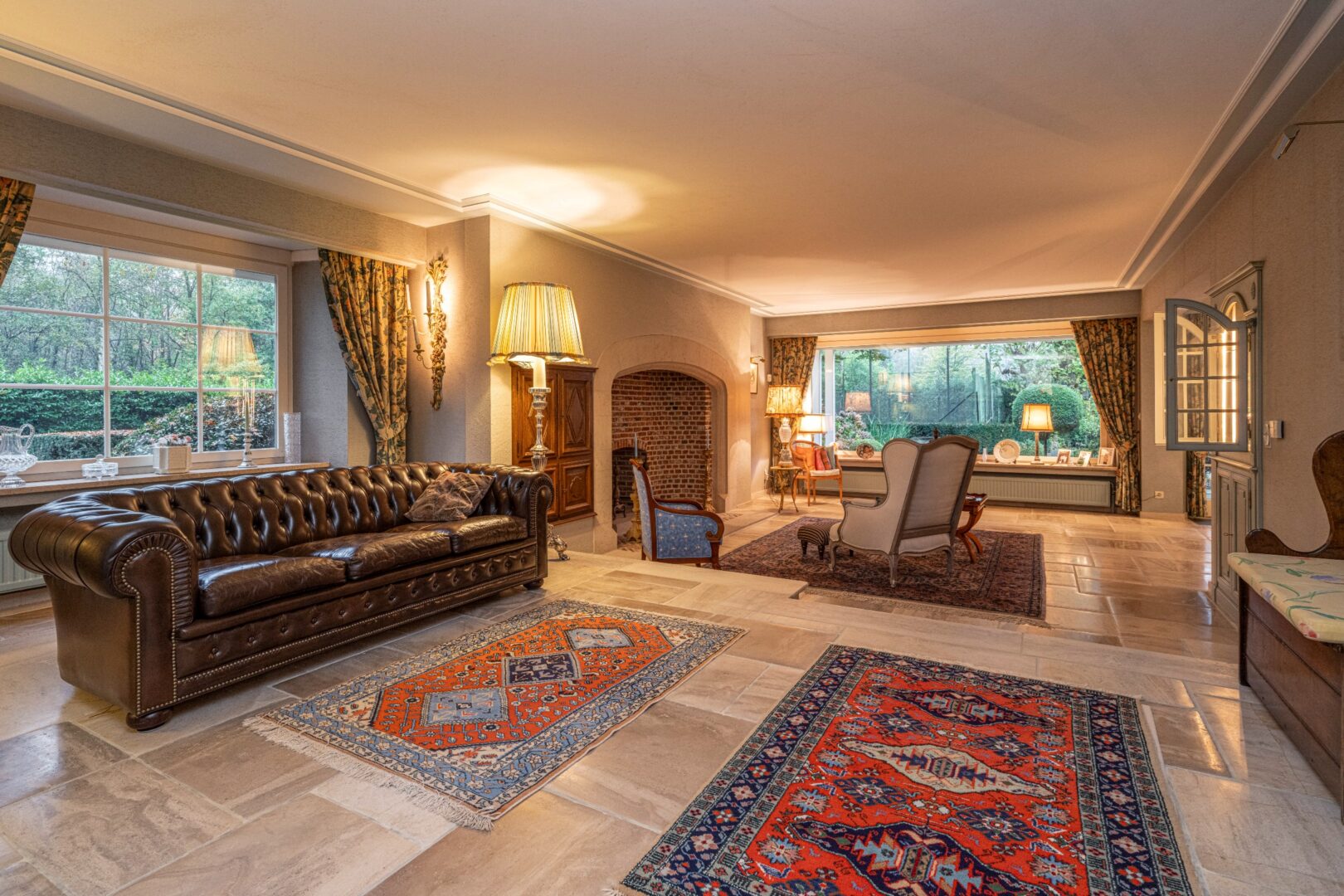 This architectural Classical villa with 5 to 6 bedrooms and 3 bathrooms on 5,233m² was built in 1981 by architect Laporta, commissioned by the current owners. This villa has not had any other owner to date.Layout ground floor:Through the stately entrance hall with its beautiful travertine floor and large staircase, we enter this classy villa. On the right side, there is a very spacious office, centrally located the kitchen, and on the left side, the living room. It consists of 3 spacious parts including a reading corner, a TV corner by the fireplace, and a dining area with access to the covered terrace, the garden room, and also the very spacious kitchen with breakfast nook. The kitchen has a cool storage room and leads us to the laundry room, the very spacious double garage, and the stairs to the basement. Through a covered passage to the garden, we come to the 3rd extra attached garage.Basement:This consists of 2 different parts and offers a lot of storage space.First floor:The stately staircase leads us to the 1st floor, with the landing on a beautiful Brabo parquet, which leads us to the various sleeping and living quarters. The master suite consists of a spacious dressing room, a completely renovated bathroom with double sink, a separate toilet, and a sleek walk-in rain shower, and 2 bedrooms or extra dressing rooms. The 3rd and 4th bedroom share a communicating bathroom in between. The 5th room is currently set up as an extra living room with a beautiful castle fireplace, bar, balcony, and extra storage room.Second floor:The staircase leads us to the 2nd floor with a small landing. This leads us to the 6th bedroom with its own shower room. The remaining part is an incredibly spacious attic (110 m²) with many possibilities.Special features:- Extremely quiet location- Beautifully landscaped and sunny garden with a beautiful terrace, pond, tennis court, and garden sheds