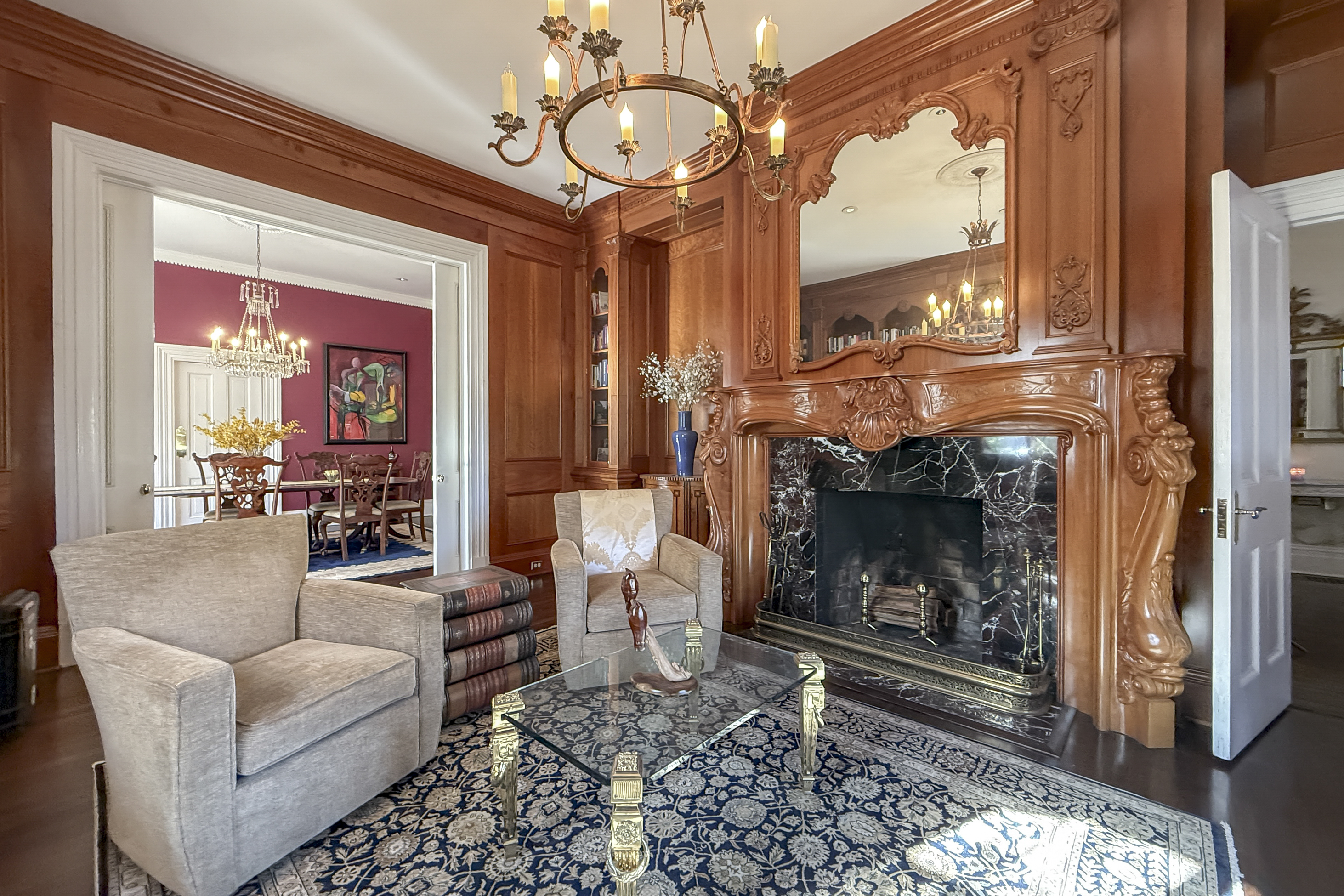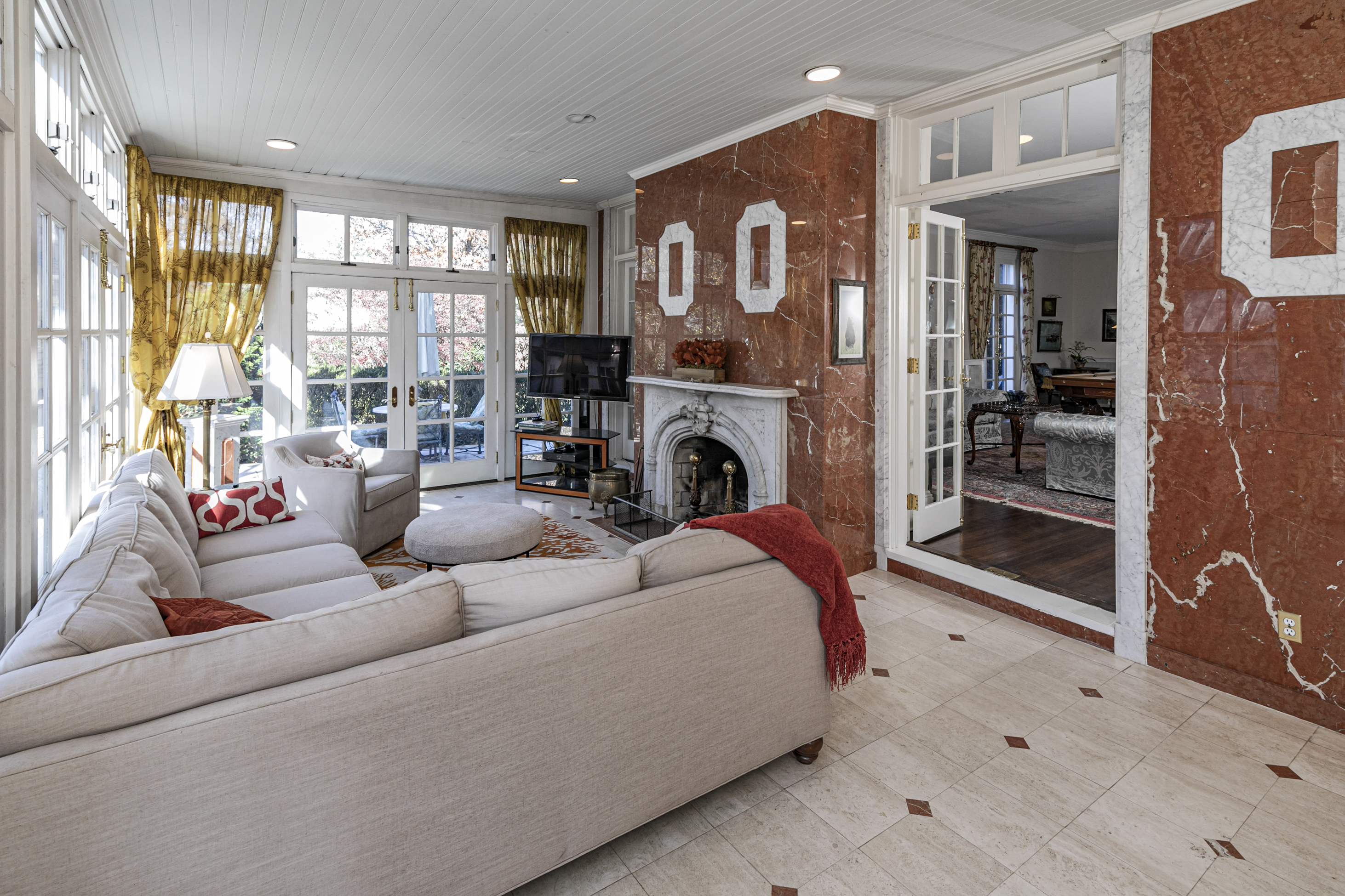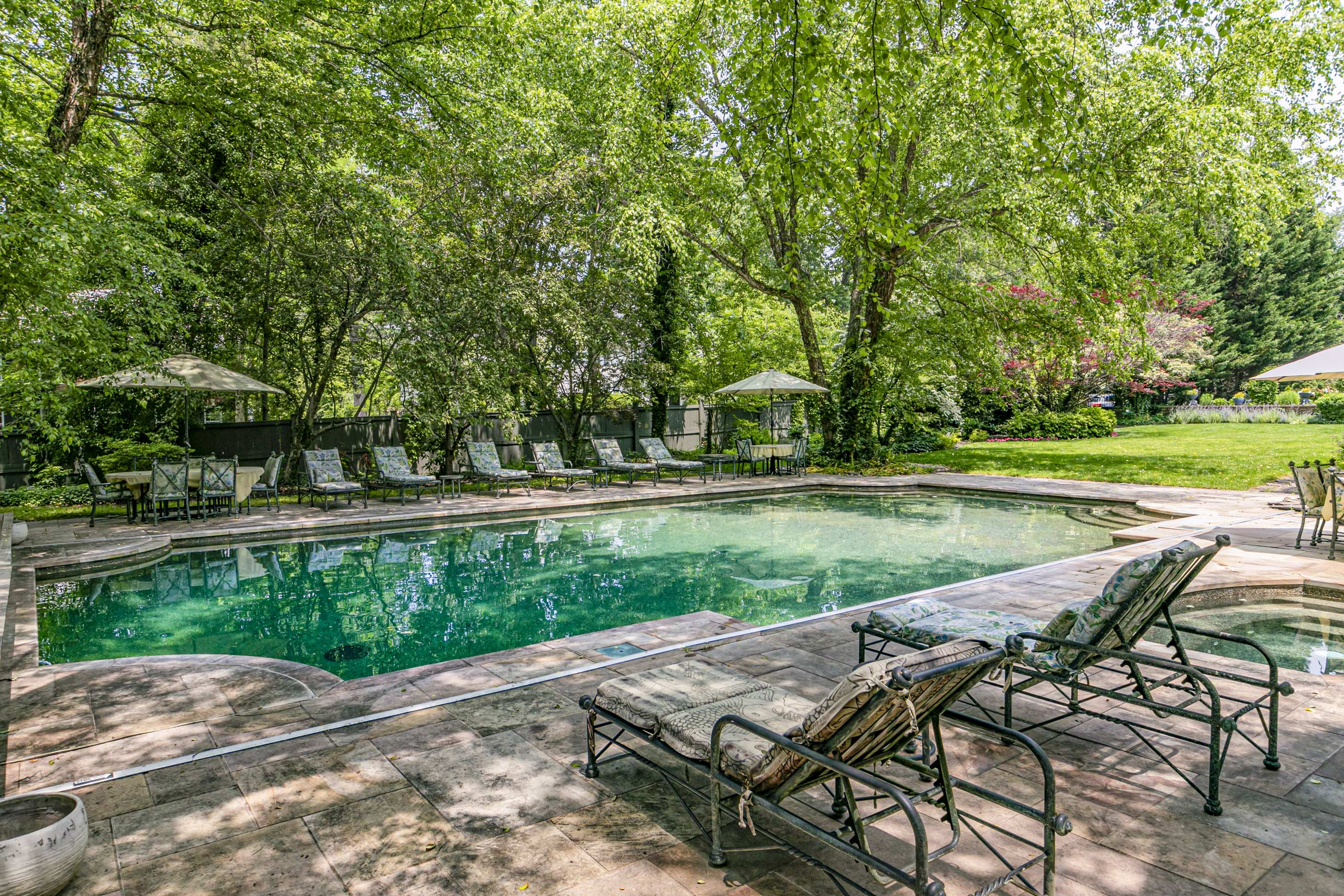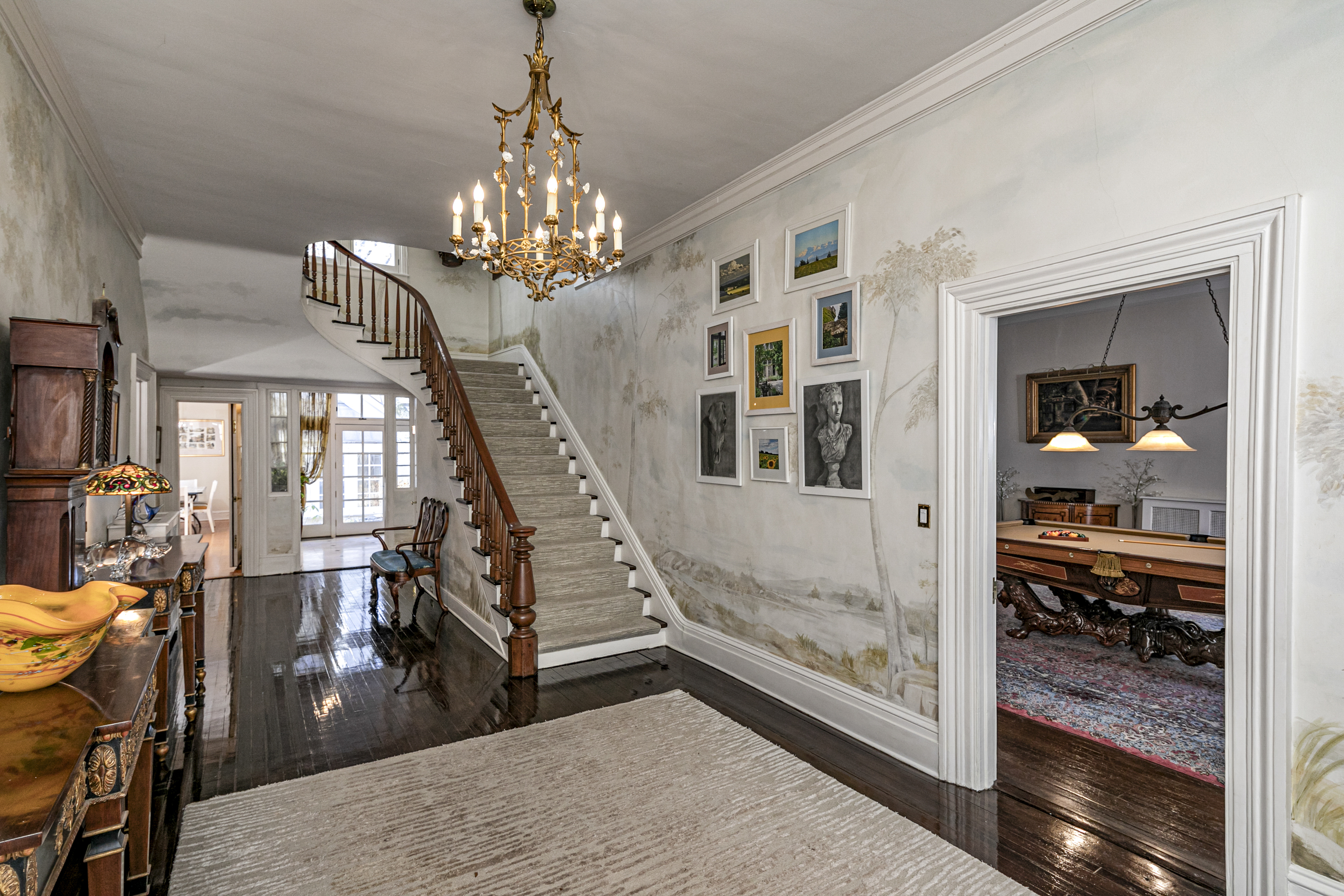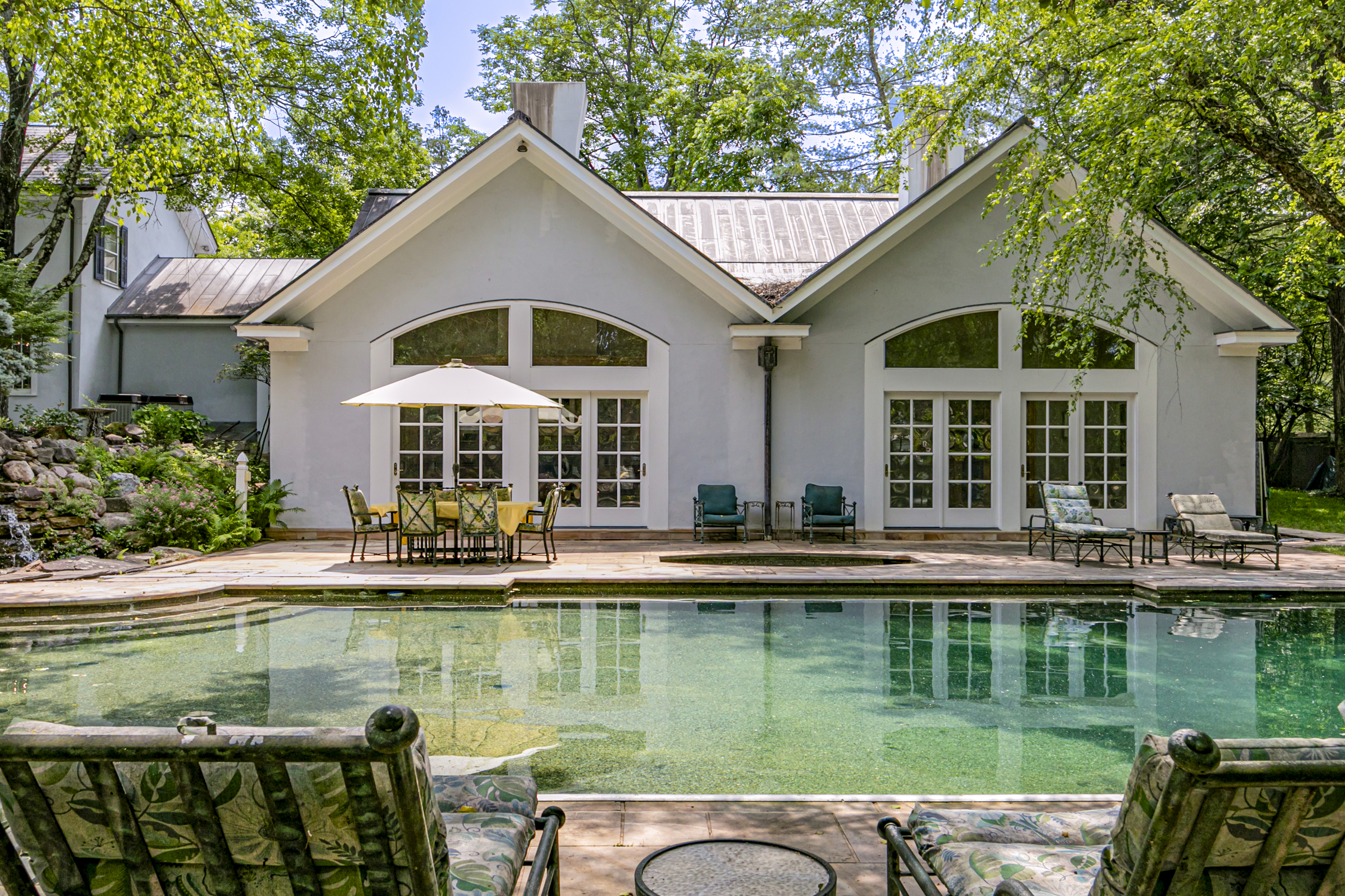 On a corner lot in the heart of the famous Western Section, a mere half-mile from bustling downtown and Princeton University's world-class campus, astonishing artistry and a fascinating history combine for a home like no other. As refined as it appears from the courtyard entry, it only gets more impressive as you continue through the array of rooms discovering storied mantelpieces, carved woodwork and imported fixtures along the way. The deep grounds also never fail to surprise and delight all who are lucky enough to spend a day relaxing by the Roman style pool or dining on the stone terrace. The lawn and formal garden have even hosted tented celebrations for hundreds with ease. The 1840 house welcomes you into the foyer, where a mural's softly colored tree branches reach toward an unusually high ceiling. The living room is large enough for a combination of seating areas or even billiards, as the current set-up shows. Pocket doors allow a view of the library's elaborately detailed woodwork while seated in the classically styled dining room. Plenty of sunshine and radiant heat keep the marble-clad family room from ever feeling chilly. New quartz countertops freshen up the crisp white kitchen with a wealth of storage around every turn. A breezeway connects the three-car garage and leads to a pool house like no other, where glass and crystal creations custom-made in Paris by the artisans of Lalique conjure a magical underwater fantasy world. Carved sea creatures whimsically watch over the gathering space served by a full kitchen, wine cellar and bathrooms worthy of Poseidon himself! Above, a playroom/gym provides plenty of space for healthy indoor recreation. The upper levels of the main house hold seven bedrooms served by five baths. The largest and airiest of those bedrooms radiate from the light-filled landing, along with an office beyond fanlight-topped pocket doors. The main suite has it all: dressing room, fireplace, marble bath, sunroom and a deck overlooking a trickling water feature and stunning trees that put on an autumnal show. This is your chance to leave your mark on one of the Western Section's finest showplaces. The property's tax assessment has been reduced.