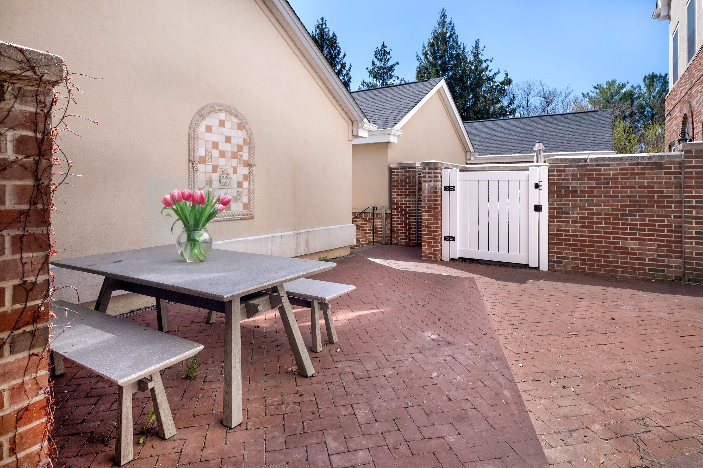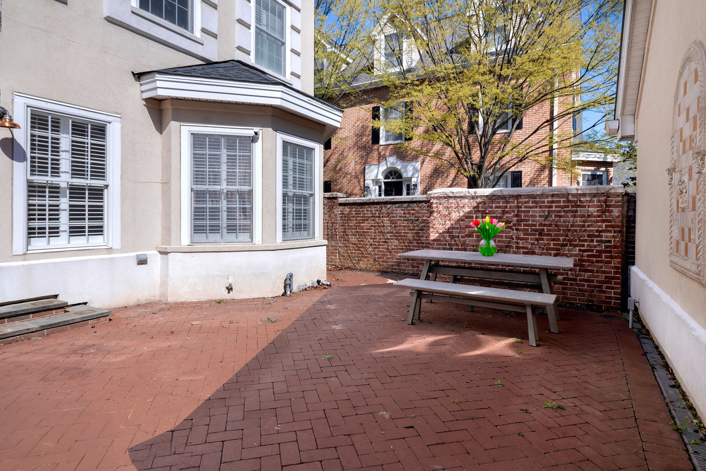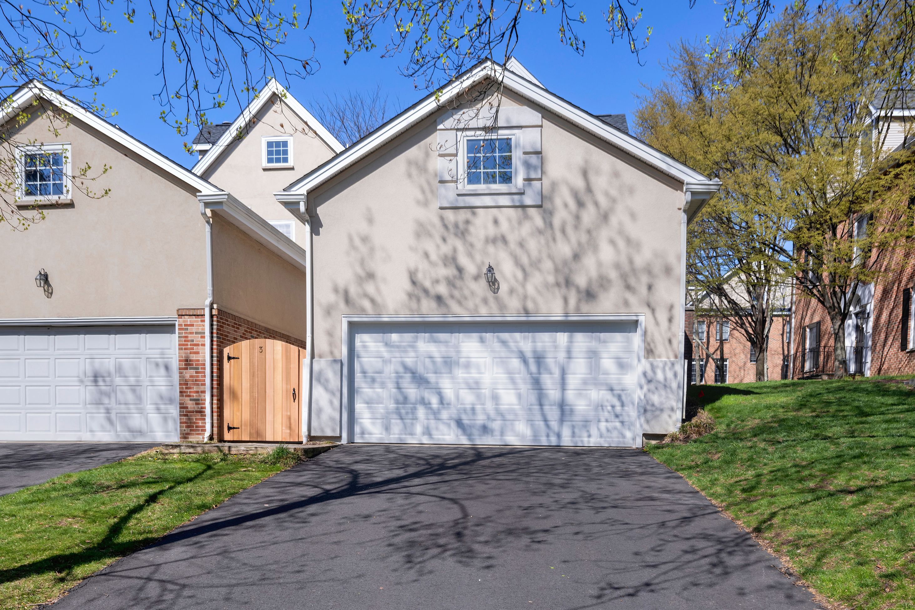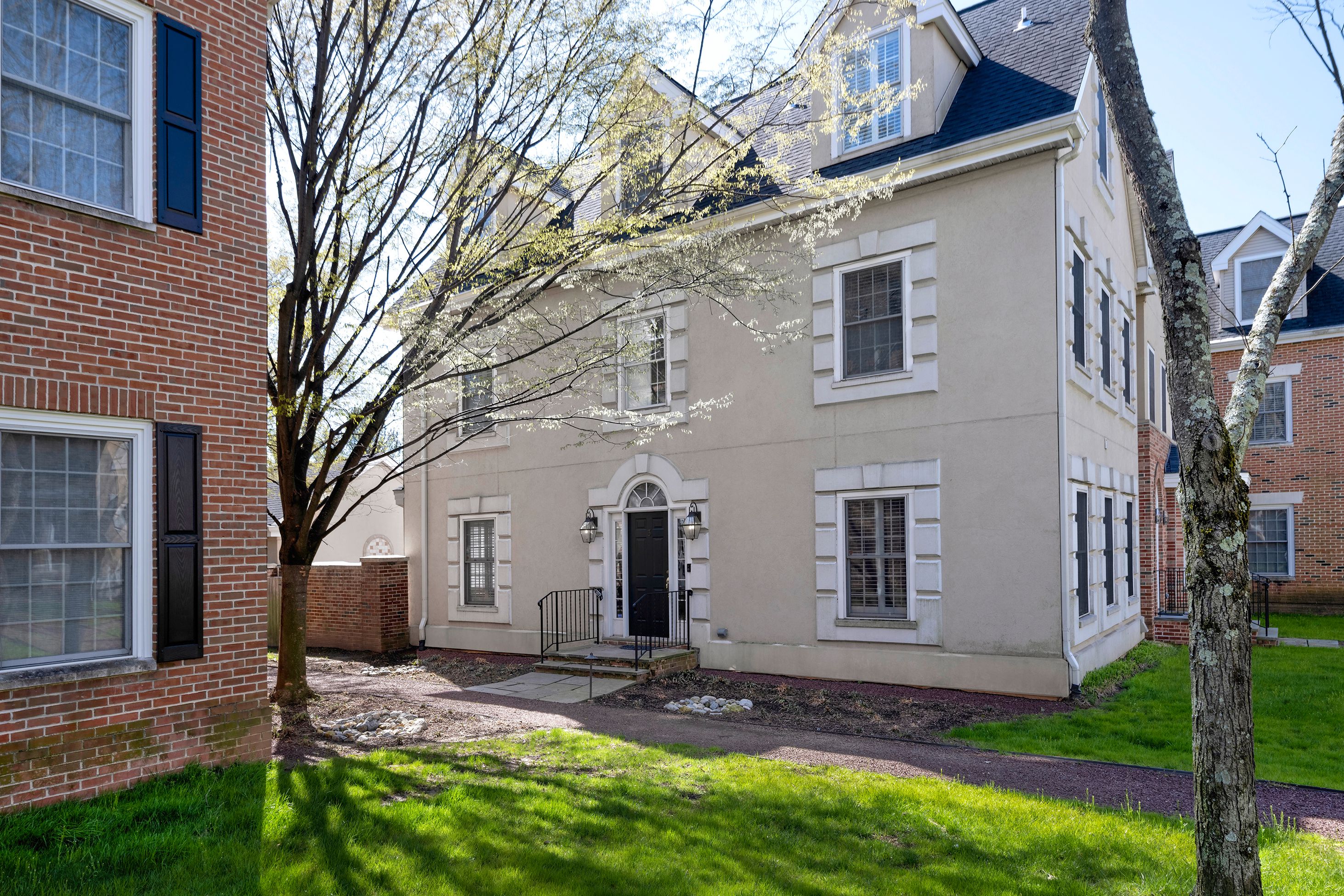 Bigger, brighter and beautifully renovated, this end-unit townhouse is as good as it gets at upscale Governors Lane. The garage lends an extra level of privacy to the brick courtyard, while the formal side entry properly welcomes guests. Inside, a wall was wisely removed during the stunning kitchen renovation, creating an open area for communal cooking and casual living. Quartz and marble surround a big apron sink and Thermador appliances, including a 6-burner range. Custom shutters and fresh paint add to the polished look. You may choose to use the adjoining space as a family room, a breakfast room or a combination of the two. Either way, the nearby living room is plenty big enough for a second dining table, if desired. Cheerful wallpaper and a gas fireplace certainly make it worthy of special occasions! To everyone’s delight, all closets and all baths are organized and updated, even the coat closet and powder room. The primary suite level is both luxurious and flexible with a modern soaking tub, towel warmer and more in the bath off the bedroom. With a second fireplace and another pretty bath, use the room across the hall as a sophisticated study or supremely appointed guest accommodations, if visitors are frequent. The top floor has a spacious bathroom with a thick marble vanity and tub situated between two big bedrooms, each with a window seat and desk alcove. Head all the way down the open skylit staircase to find tons of finished space for play or hobbies with plenty of storage to stow everything away when it’s time to tidy up. This location is ideal for quick trips to Princeton Shopping Center, drop-offs at Princeton Charter School and easy access to an array of professional offices.