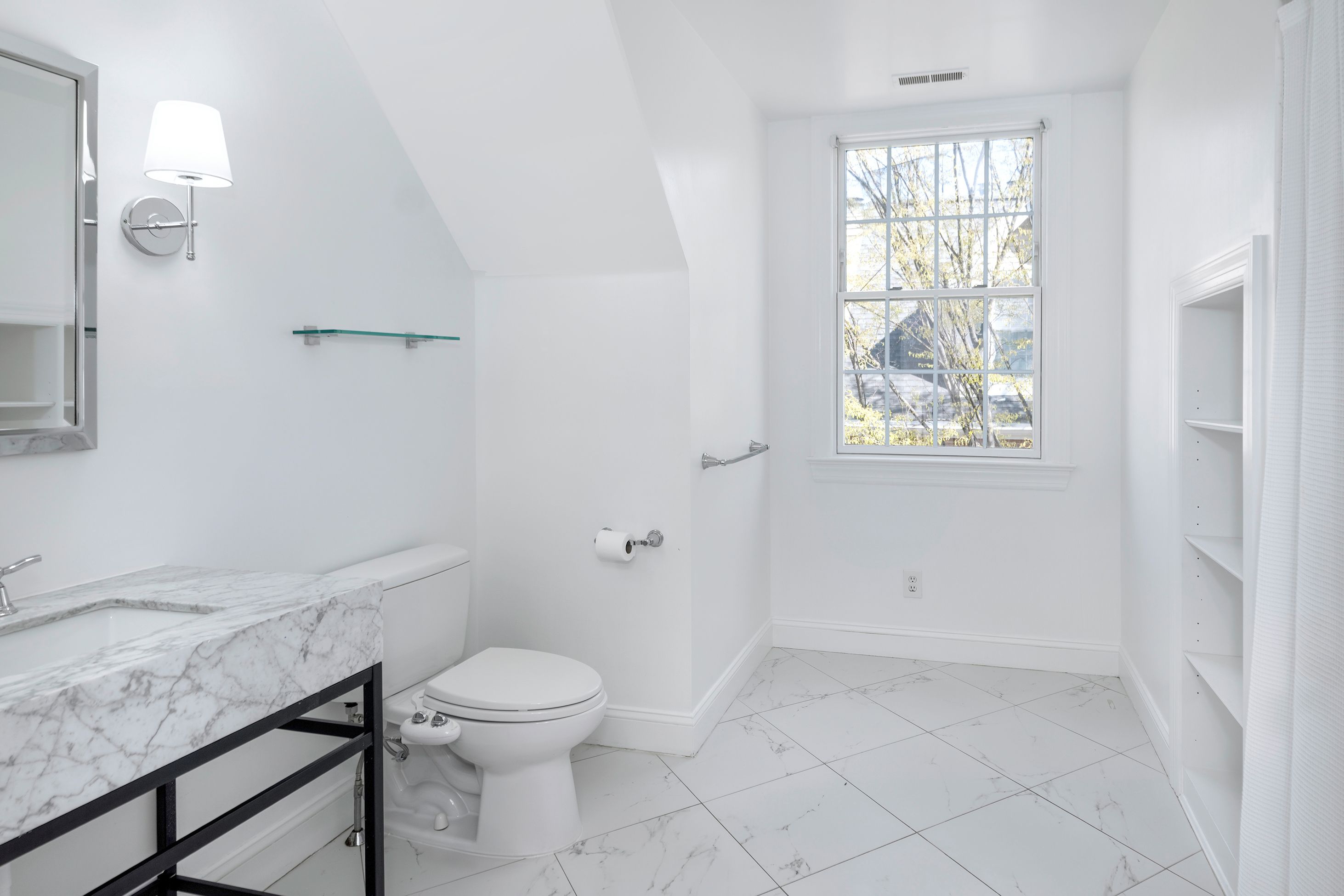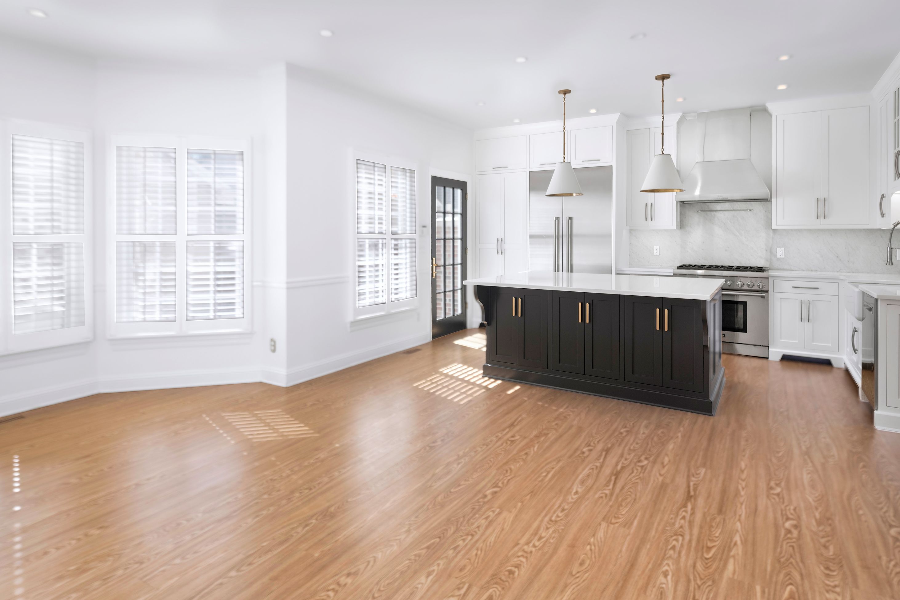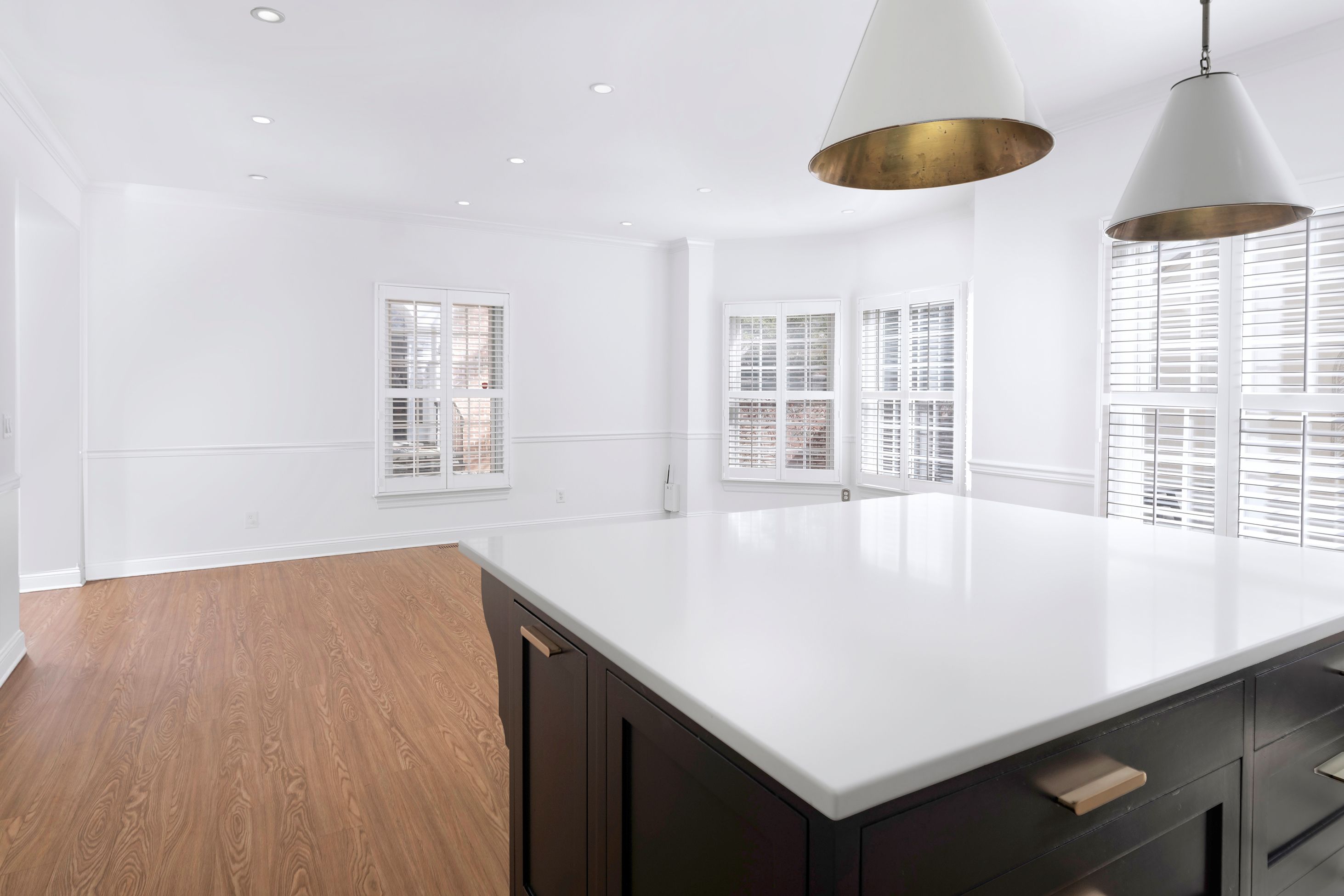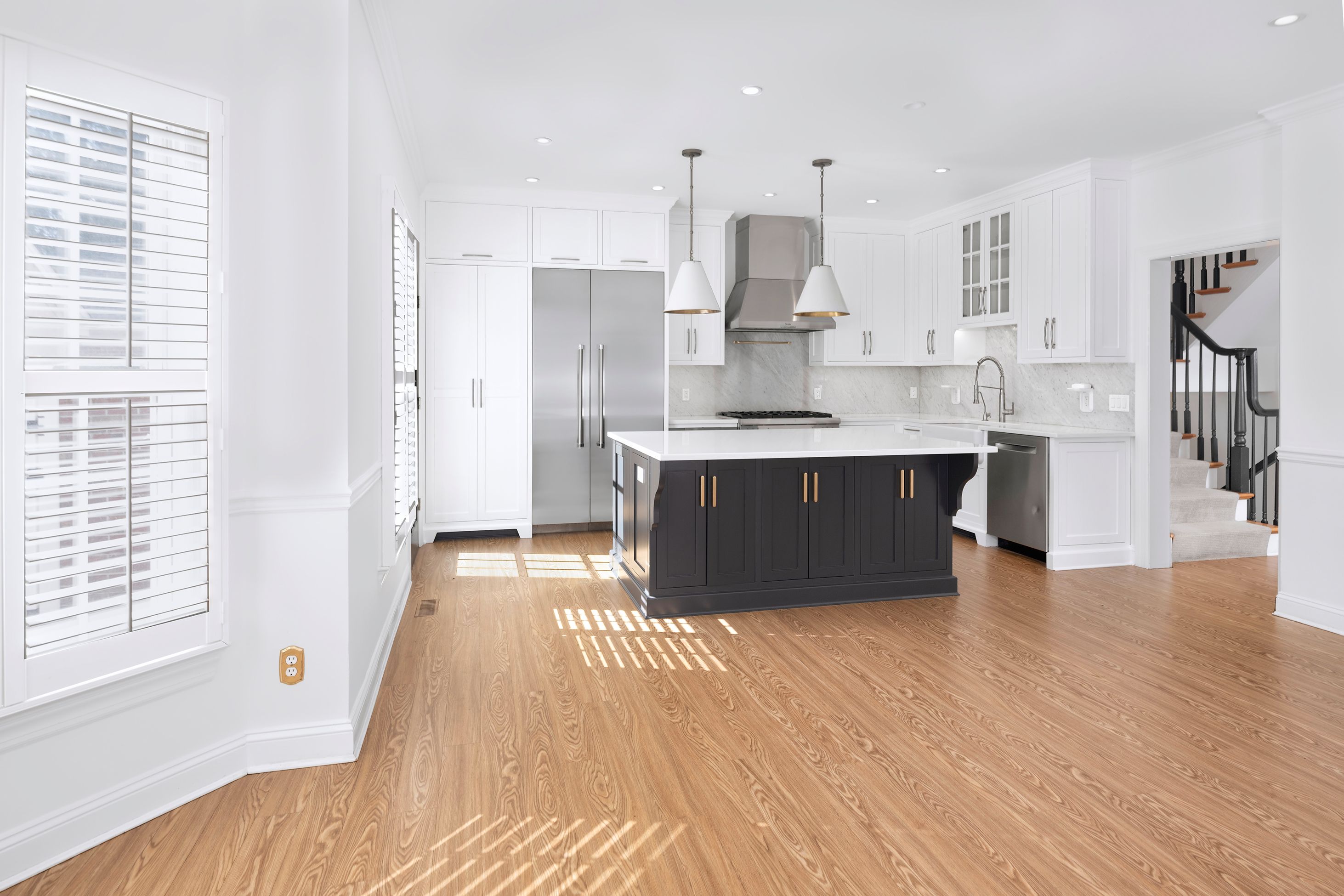 Bigger, brighter and beautifully renovated, this end-unit townhouse is as good as it gets at upscale Governors Lane. The garage lends an extra level of privacy to the brick courtyard, while the formal side entry properly welcomes guests. Inside, a wall was wisely removed during the stunning kitchen renovation, creating an open area for communal cooking and casual living. Quartz and marble surround a big apron sink and Thermador appliances, including a 6-burner range. Custom shutters and fresh paint add to the polished look. You may choose to use the adjoining space as a family room, a breakfast room or a combination of the two. Either way, the nearby living room is plenty big enough for a second dining table, if desired. Cheerful wallpaper and a gas fireplace certainly make it worthy of special occasions! To everyone’s delight, all closets and all baths are organized and updated, even the coat closet and powder room. The primary suite level is both luxurious and flexible with a modern soaking tub, towel warmer and more in the bath off the bedroom. With a second fireplace and another pretty bath, use the room across the hall as a sophisticated study or supremely appointed guest accommodations, if visitors are frequent. The top floor has a spacious bathroom with a thick marble vanity and tub situated between two big bedrooms, each with a window seat and desk alcove. Head all the way down the open skylit staircase to find tons of finished space for play or hobbies with plenty of storage to stow everything away when it’s time to tidy up. This location is ideal for quick trips to Princeton Shopping Center, drop-offs at Princeton Charter School and easy access to an array of professional offices.