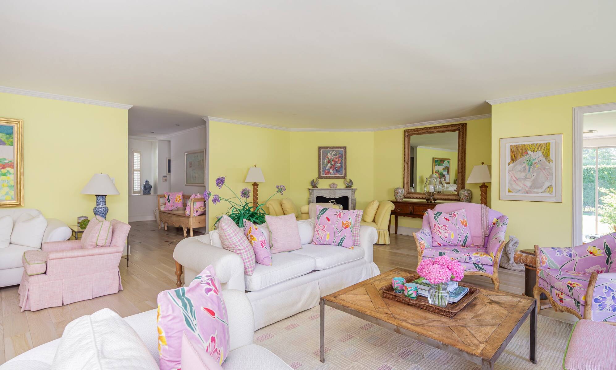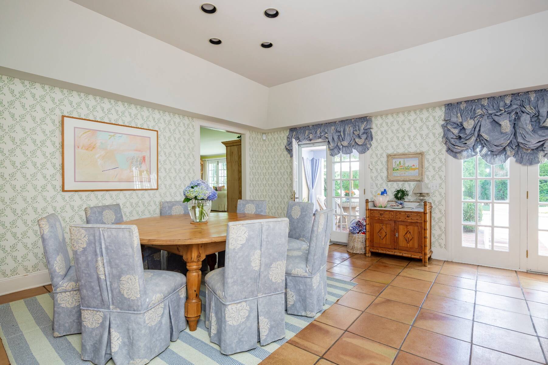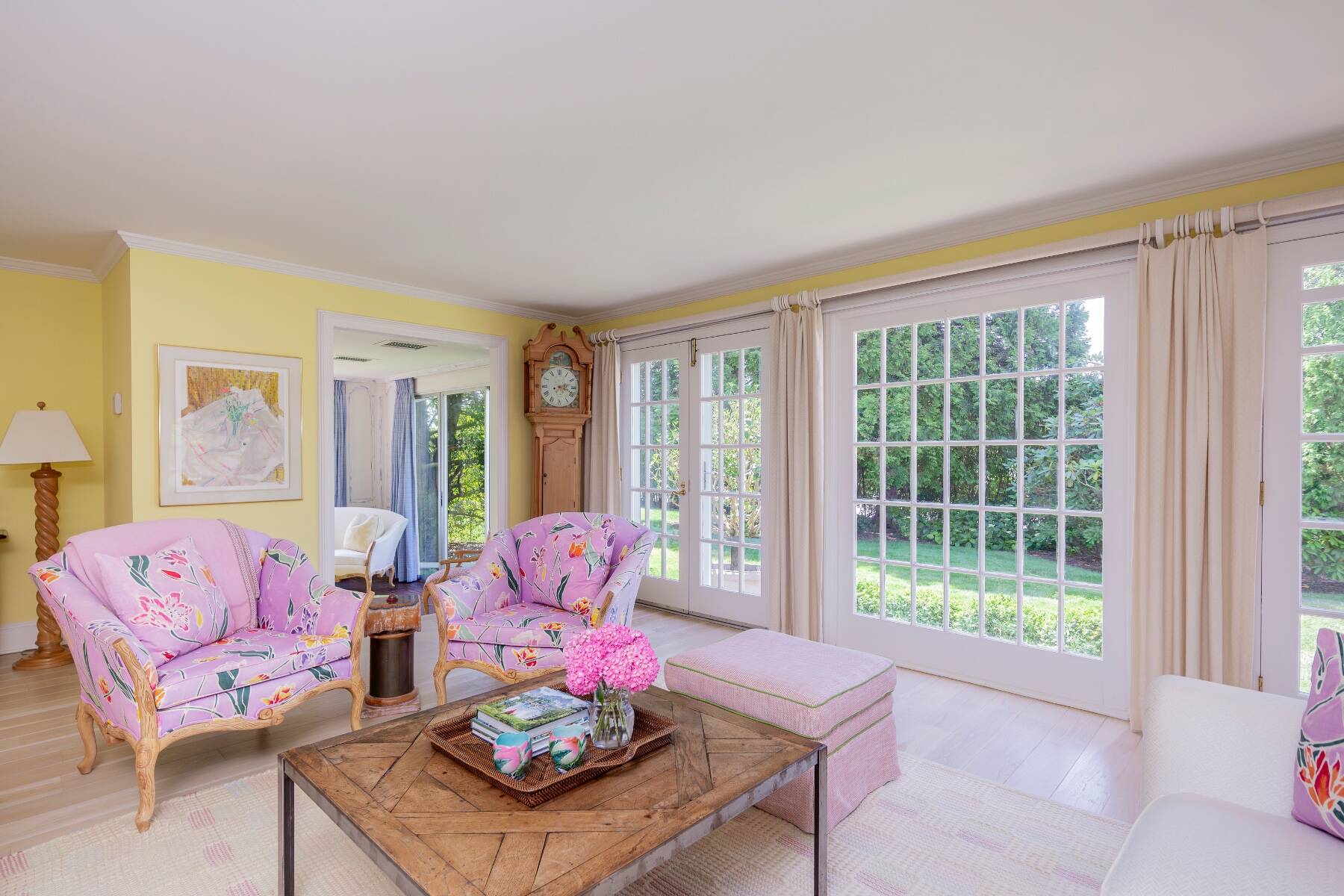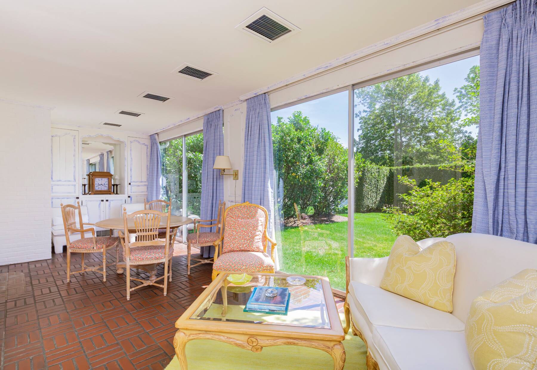 Tucked away on one of the most iconic private streets off world-famous Gin Lane, this classic Southampton residence offers timeless charm, privacy, and exclusive beach access. Set on beautifully landscaped grounds, the property is surrounded by lush greenery, creating a serene oasis just moments from the ocean. Inside, the home is filled with natural light, with large windows and French doors that invite the outdoors in. The main house features five bedrooms and six bathrooms across two levels, including a sun-drenched primary suite with dual baths, walk-in closets, and a private terrace. A separate guest wing offers additional space and comfort for visitors. Gracious living and dining rooms, a bright and functional chef's kitchen, and a cozy den all open to the gardens, perfect for relaxed summer living. Outdoors, the covered porches and patios are ideal for entertaining, while a heated gunite pool is nestled among mature landscaping. With private access to one of the most beautiful beaches in the Hamptons, this is a rare opportunity in the heart of Southampton Village.