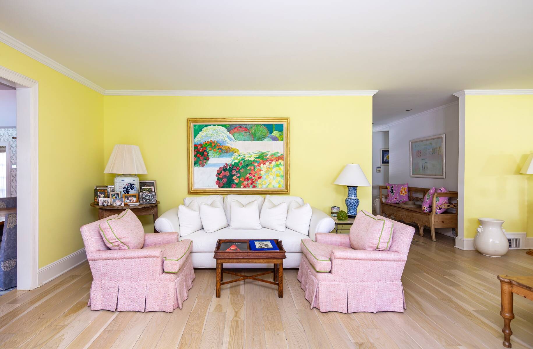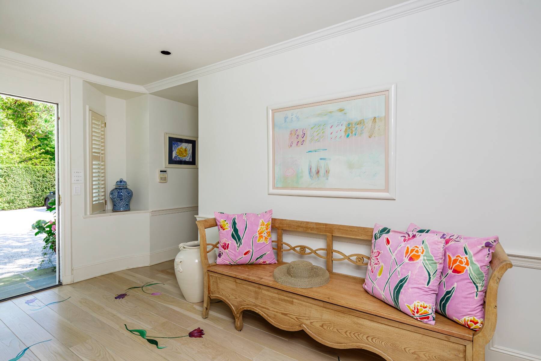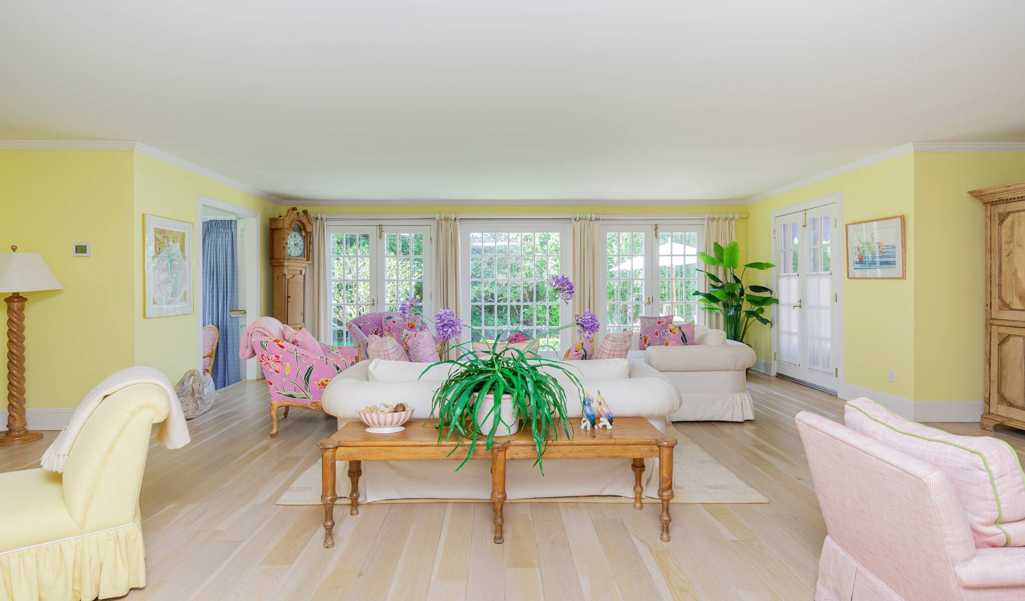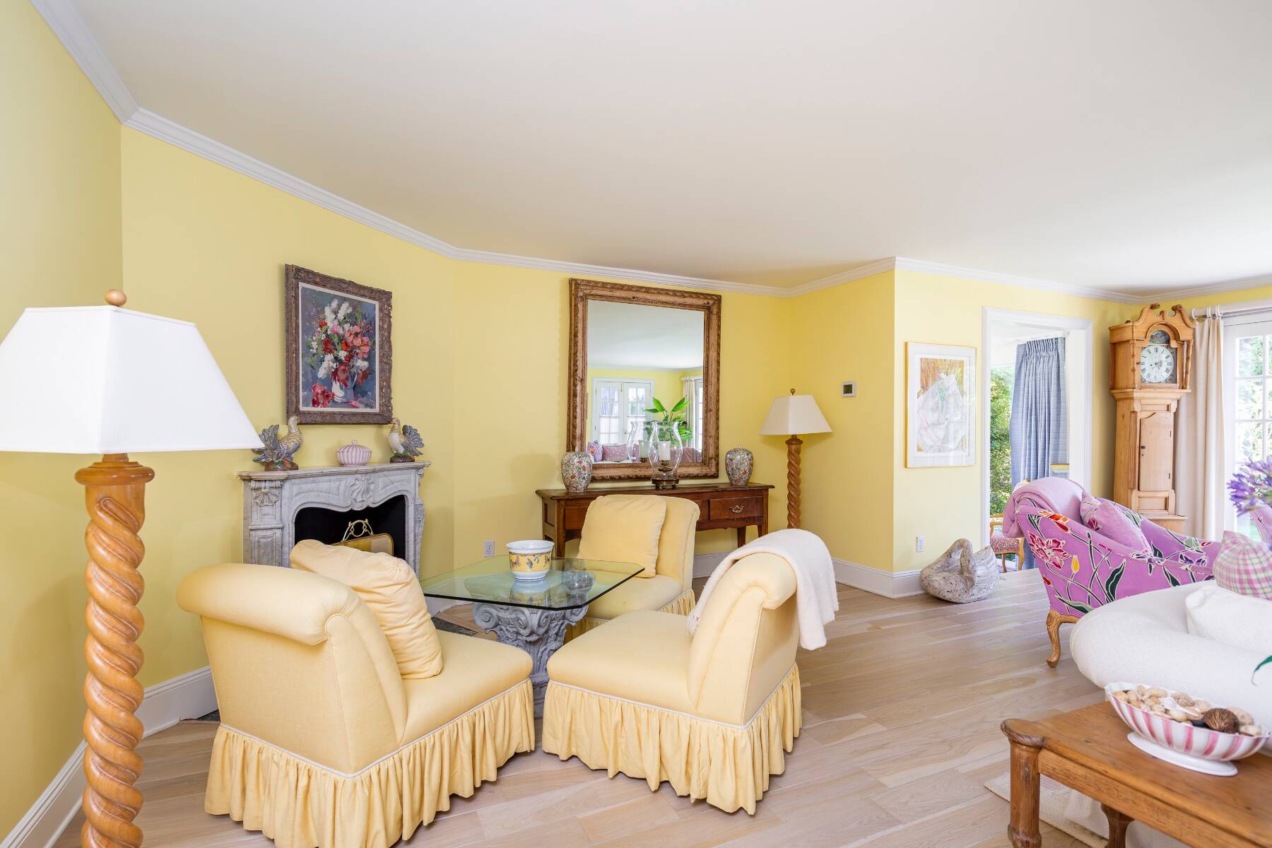 Tucked away on one of the most iconic private streets off world-famous Gin Lane, this classic Southampton residence offers timeless charm, privacy, and exclusive beach access. Set on beautifully landscaped grounds, the property is surrounded by lush greenery, creating a serene oasis just moments from the ocean. Inside, the home is filled with natural light, with large windows and French doors that invite the outdoors in. The main house features five bedrooms and six bathrooms across two levels, including a sun-drenched primary suite with dual baths, walk-in closets, and a private terrace. A separate guest wing offers additional space and comfort for visitors. Gracious living and dining rooms, a bright and functional chef's kitchen, and a cozy den all open to the gardens, perfect for relaxed summer living. Outdoors, the covered porches and patios are ideal for entertaining, while a heated gunite pool is nestled among mature landscaping. With private access to one of the most beautiful beaches in the Hamptons, this is a rare opportunity in the heart of Southampton Village.