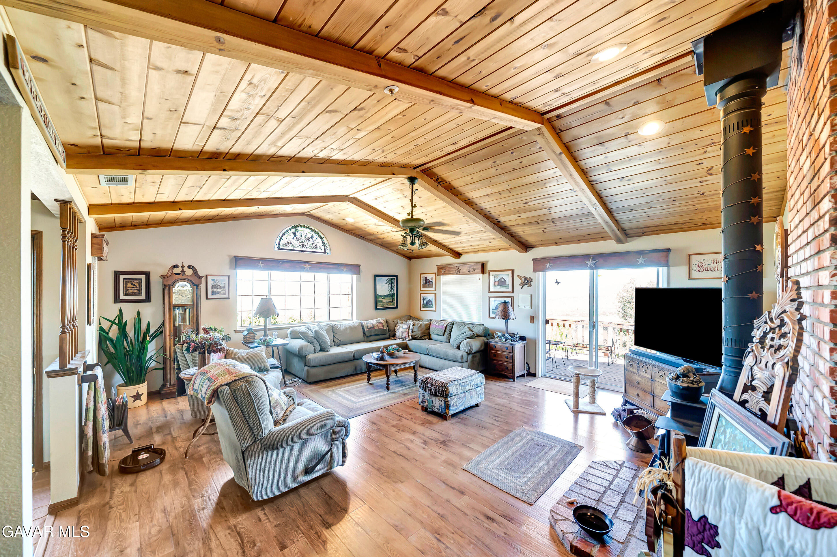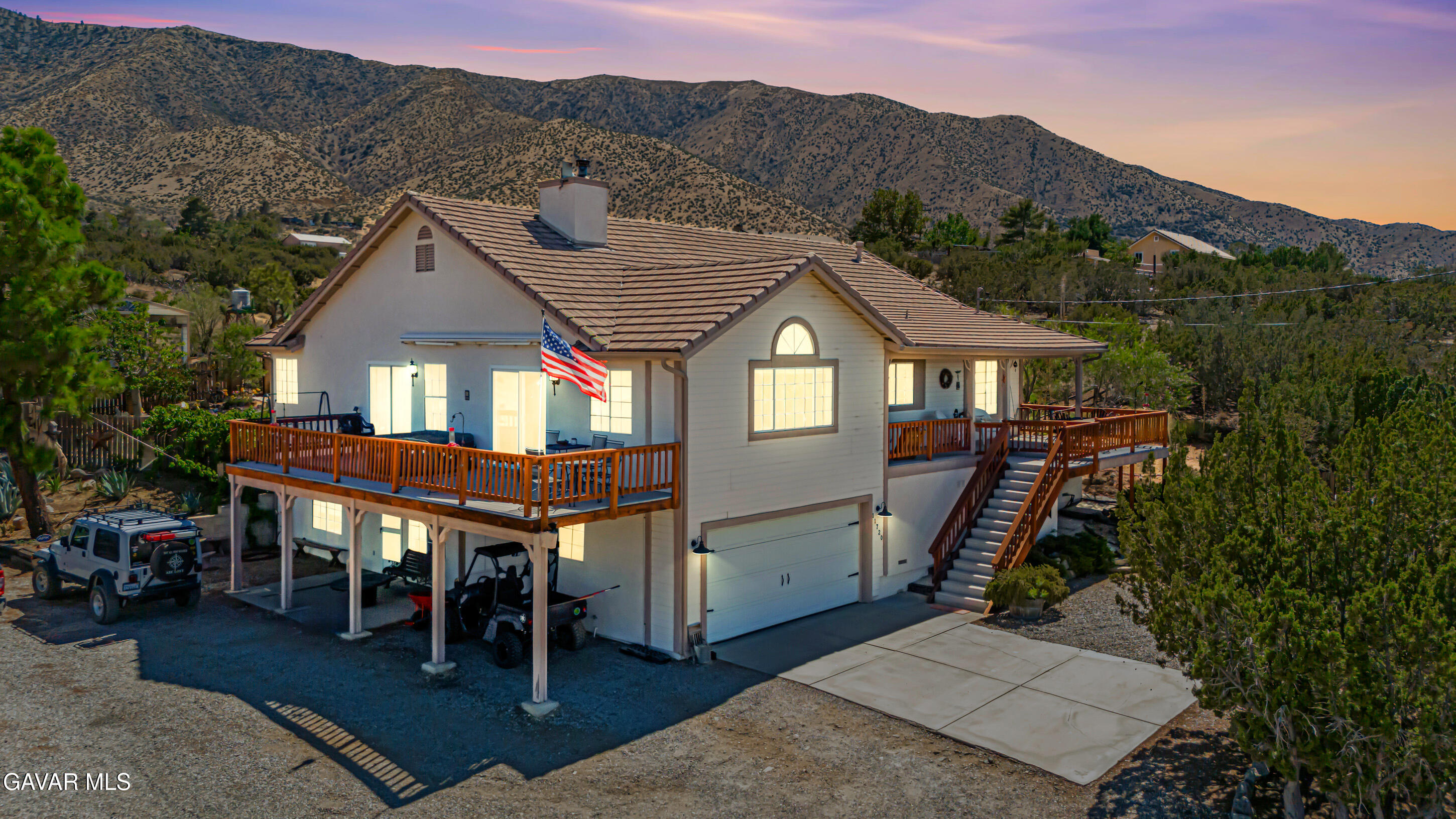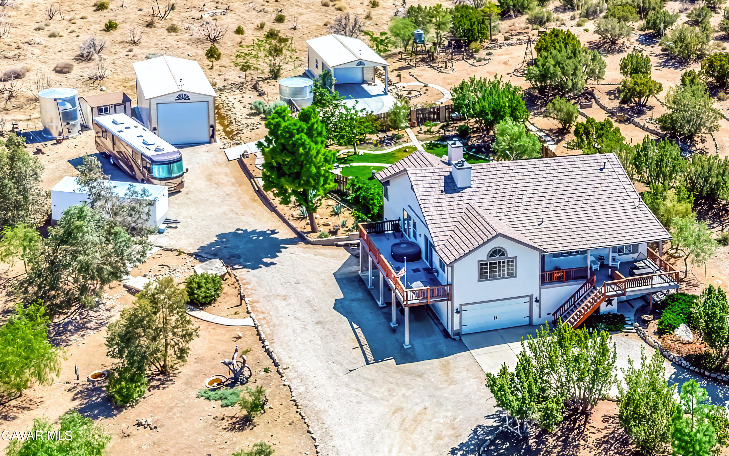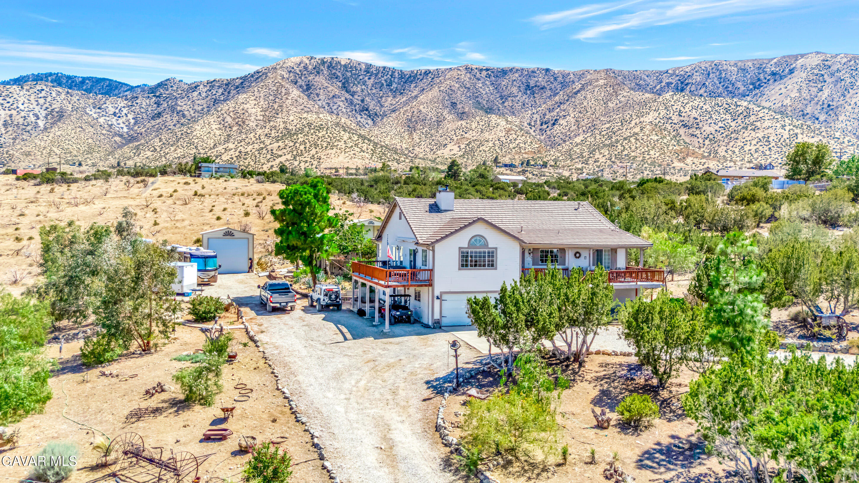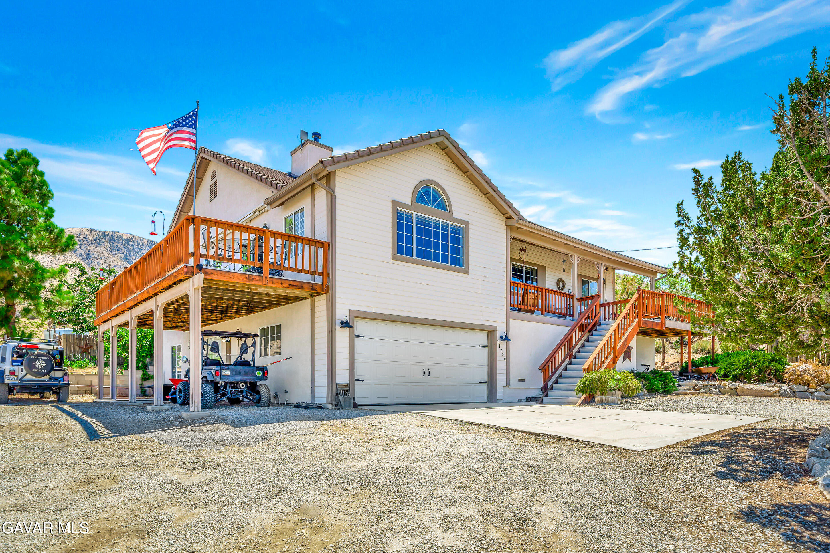 Grand Ranch Two-Story Estate in the Scenic Juniper Hills Community. This Warm & Inviting Estate Nestled in the Picturesque Juniper Hills Sitting on 2.50 Acres of Serene, Usable Land with Breathtaking Panoramic Views of the Mountains. This Gorgeous Home Offers Four Bedrooms & Three Bathrooms Featuring 3,188 sq. ft. of Thoughtfully Designed Living Space. This Custom Two-Story Home is Perfect for those Seeking Privacy, Space, and Versatility. Step Into a Home that Exudes Rustic Ranch Charm, with Classic Country-Style Architecture & Rich Wood Features Throughout, Including Exposed Beams, Wood-Paneled Accents, & Warm Finishes that Give the Home a Cozy, Timeless Feel. The Spacious Living Areas are Anchored by a Charming Potbelly Stove, Perfect for Gatherings on Cool Evenings. The Chef's Kitchen Featuring Ample Cabinet Space, a Large Center Island with a Built-In Range & a Breakfast Bar. The Open-Concept Dining Room Flows Seamlessly into the Patio Deck Complete with a Stylish Atmosphere for Effortless Gatherings. Cozy up During Winter Nights by a Stunning Rock Fireplace in the Luxurious Primary Suite. The Primary Suite Boasts a Large Walk-In Closet & an En-Suite Bathroom with a Large Custom-Tiled Shower & a Soaking Tub that Looks Out onto a Peaceful Patio Oasis. The Guest Bathrooms are Tastefully Decorated with a Ranch-Inspired Feel, Featuring Rustic Finishes & Natural Tones that Perfectly Complement the Home's Country Aesthetic. Additional Features Include a Private Well for Water Independence, & Two Oversized Covered RV Garages, One of Which Includes a Fully Covered Carport Providing Ample Space for RVs, Boats, Trailers, or Extra Vehicles. Downstairs, You'll Find a Cozy Ranch-Style Game Room with Its Own Built-In Bar & Fireplace, along with a Full Bathroom, an Ideal Space for Entertaining, a Private Guest Suite, or Multi-Generational Living. Looking for a Private Retreat, or Equestrian Property! Juniper Hills is a Hidden Gem Offering Rural Charm with City Convenience