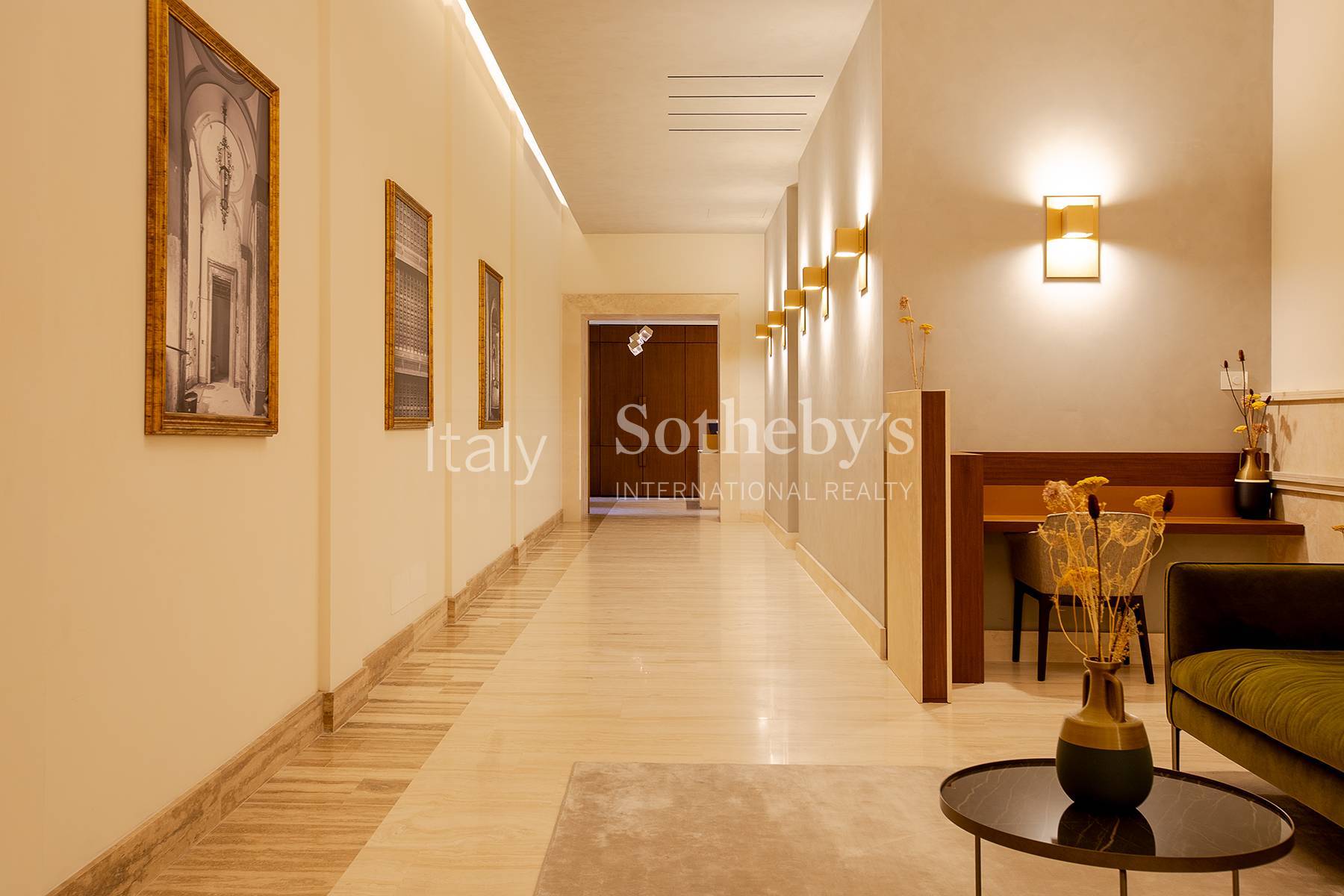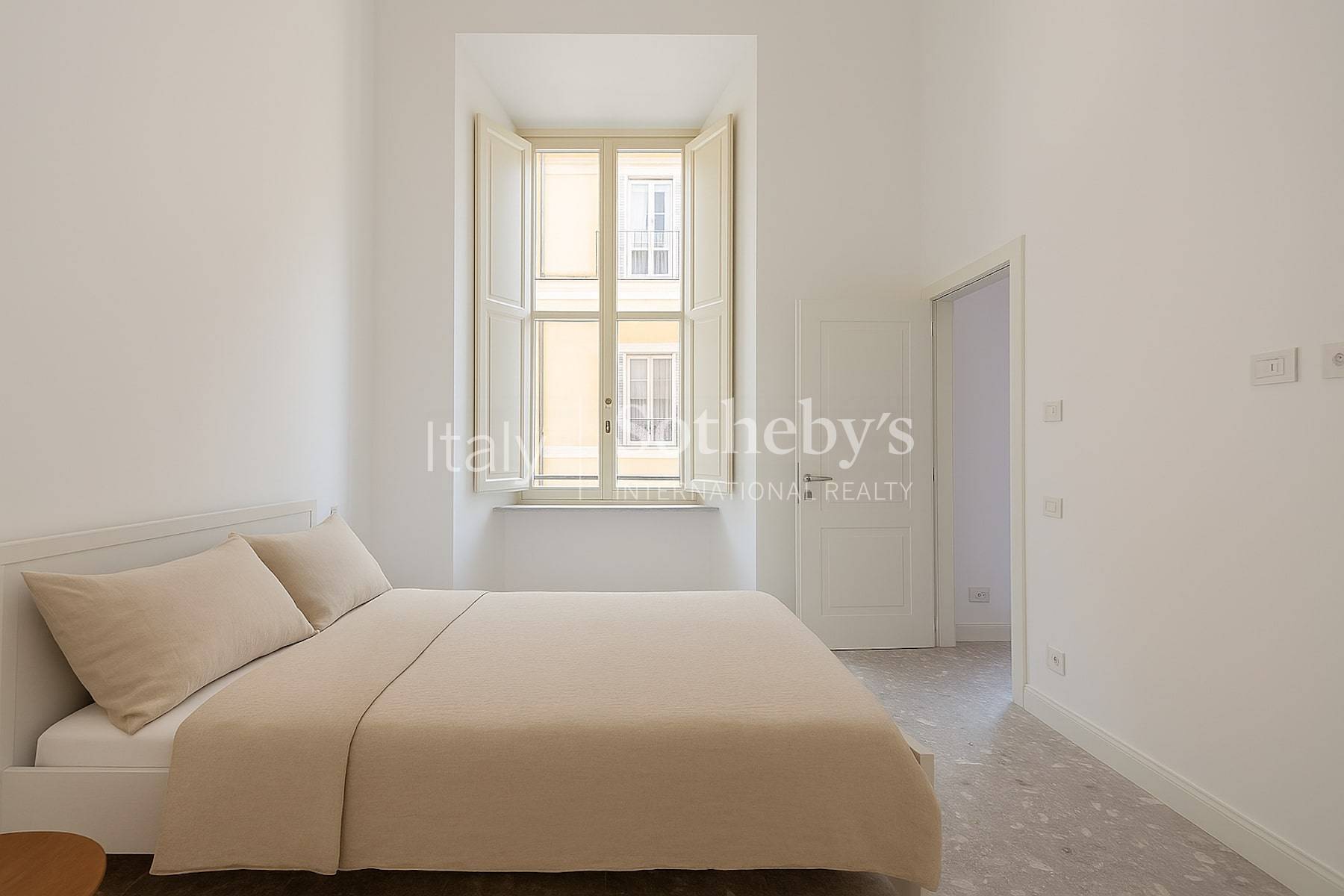 In the historic center of Rome, between Piazza di Spagna, the Trevi Fountain and the Pantheon, an exclusive one-bedroom apartment on the fourth floor of the prestigious Palazzo Raggi-an elegant 18th-century building restored to its original splendor through a major renovation supervised by the Superintendency.The project, signed by the Tamburini and dL Engineering studios, masterfully combines historical elegance with cutting-edge architectural and technological solutions, such as the scenic glass panoramic elevator, the imposing original monumental staircase, and the refined lobby, all enhanced with high-quality materials reinterpreted in a contemporary style.The apartment, never lived in, has a surface area of approximately 60 sqm (646 sqft), with ceilings over 4 meters high and direct views of the spectacular Via del Corso. The interiors include a spacious living room with a custom open kitchen fitted with Boffi designer furnishings, a large double bedroom, and an elegant en suite bathroom with high-end finishes. A second guest bathroom, perfectly integrated into the layout, completes the property.The home is equipped with underfloor heating, air conditioning, and a home automation system, while the building features video surveillance and concierge service-offering an exclusive living experience in a unique and private architectural setting.