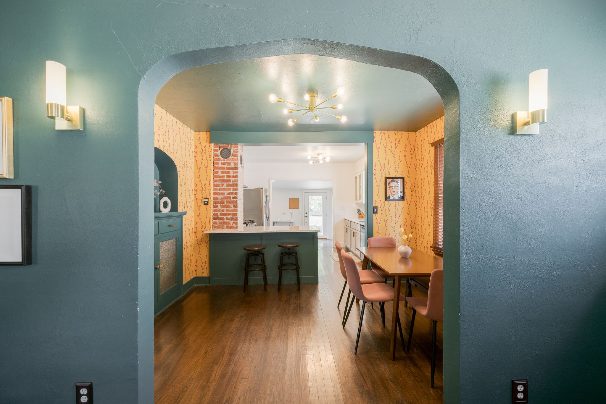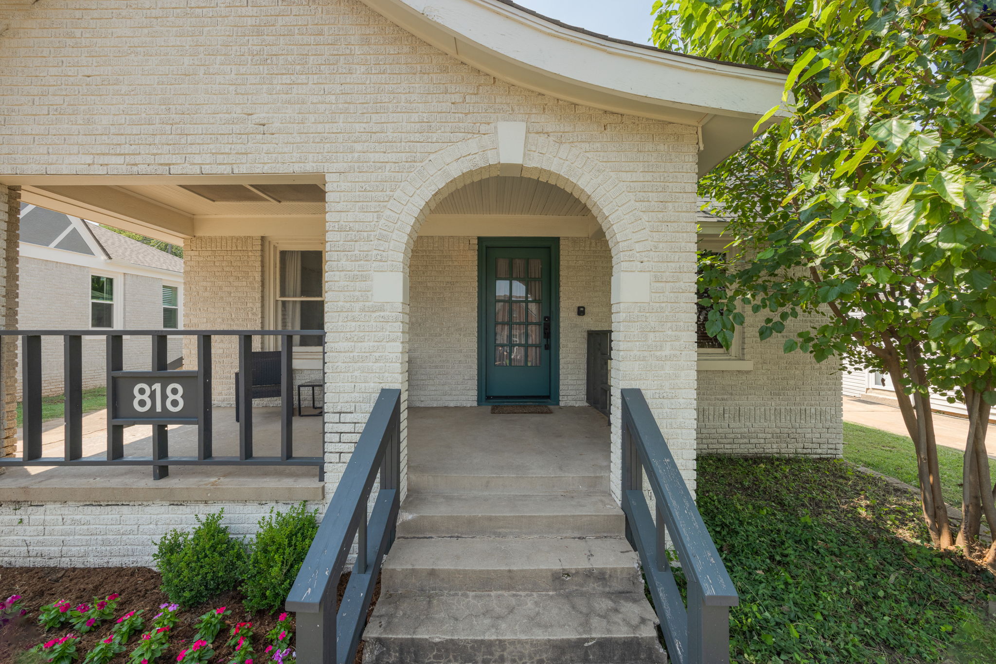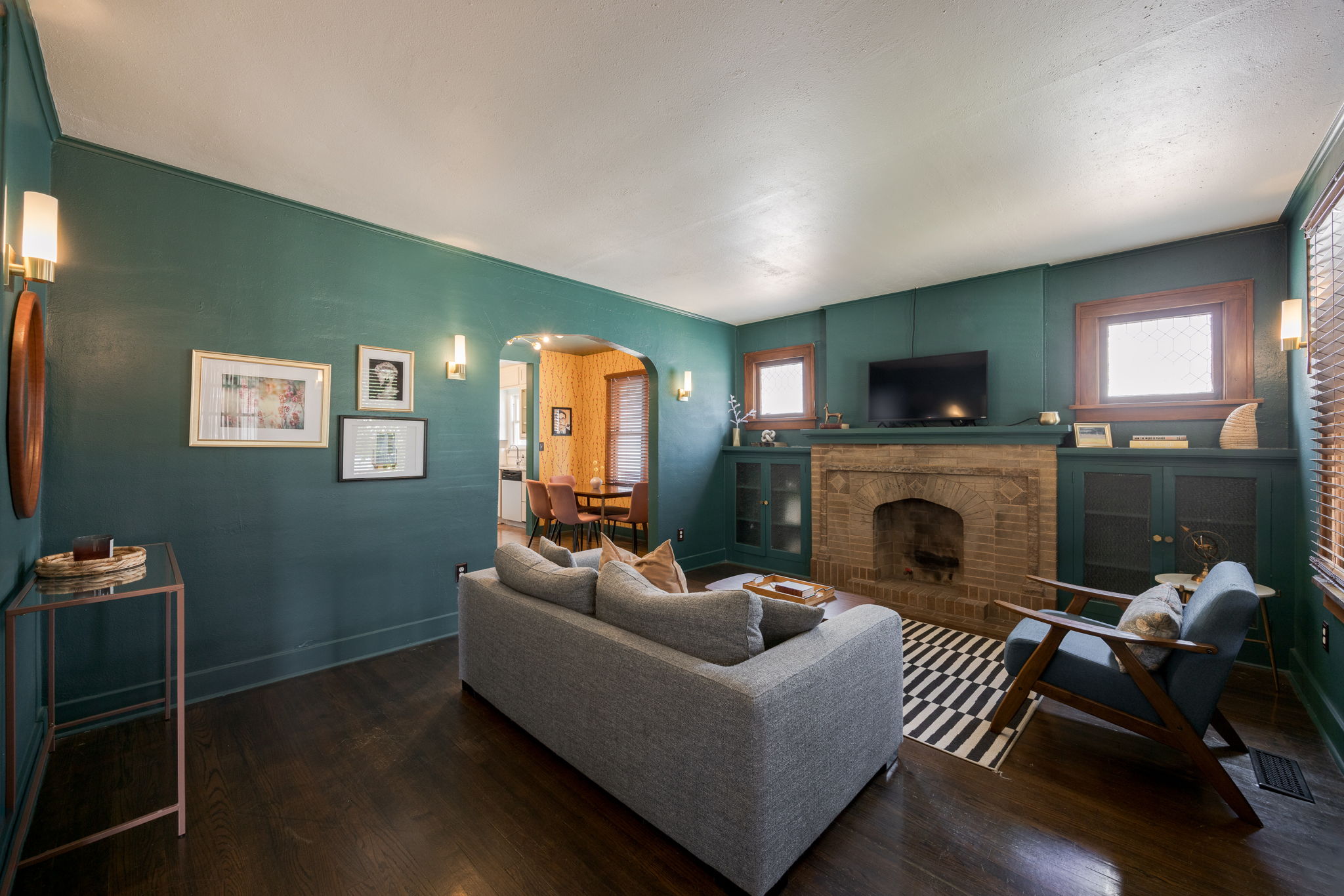 A storybook charmer in the heart of OKC! This dreamy white-brick bungalow, framed by colorful flowering landscaping, feels like it’s been plucked from the pages of a novel. Inside, you’ll be greeted by a teal-drenched living room where a beautiful brick fireplace stands at the center, hugged by built-ins. Through the arched doorway, the dining room blooms with playful wallpaper, sunlight pouring over the original hardwood floors, and another built-in ready to tuck away your favorite things. The kitchen is full of character with crisp white subway tile, two-tone cabinets, and quartz countertops. Just beyond, a versatile bonus room awaits, perfect as a sunny reading nook, a creative studio, or a serene yoga space. Two well-sized bedrooms and a centrally located bath make for an effortless layout. Outside, a generous backyard and detached one-car garage complete the picture. Near the Paseo Arts District and Western Avenue’s vibrant scene, and highways, this home offers both charm and convenience in one picture-perfect package. Welcome to your next chapter!