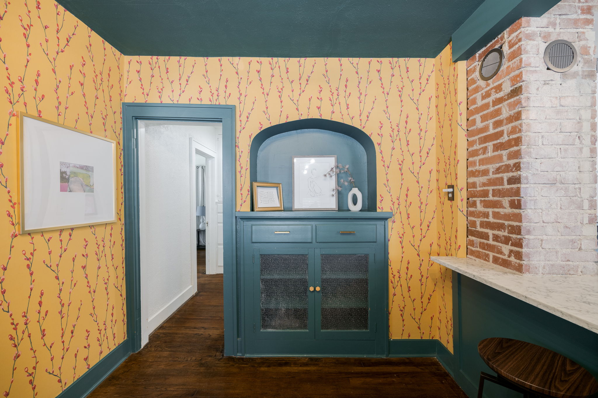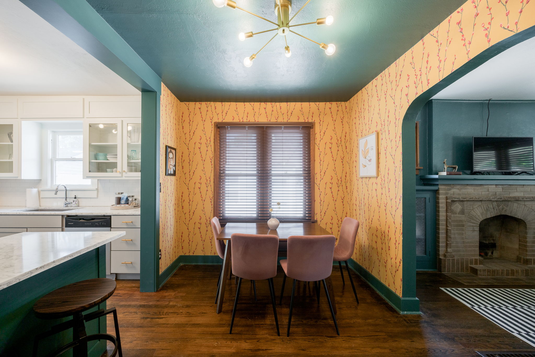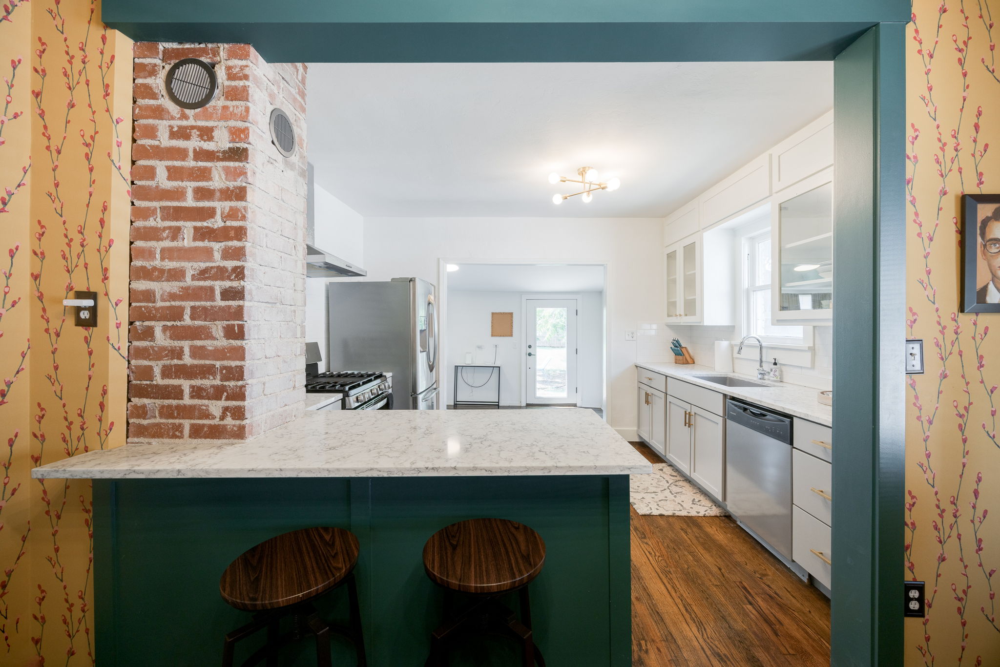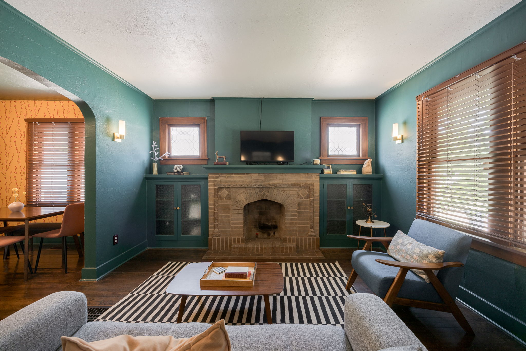 A storybook charmer in the heart of OKC! This dreamy white-brick bungalow, framed by colorful flowering landscaping, feels like it’s been plucked from the pages of a novel. Inside, you’ll be greeted by a teal-drenched living room where a beautiful brick fireplace stands at the center, hugged by built-ins. Through the arched doorway, the dining room blooms with playful wallpaper, sunlight pouring over the original hardwood floors, and another built-in ready to tuck away your favorite things. The kitchen is full of character with crisp white subway tile, two-tone cabinets, and quartz countertops. Just beyond, a versatile bonus room awaits, perfect as a sunny reading nook, a creative studio, or a serene yoga space. Two well-sized bedrooms and a centrally located bath make for an effortless layout. Outside, a generous backyard and detached one-car garage complete the picture. Near the Paseo Arts District and Western Avenue’s vibrant scene, and highways, this home offers both charm and convenience in one picture-perfect package. Welcome to your next chapter!