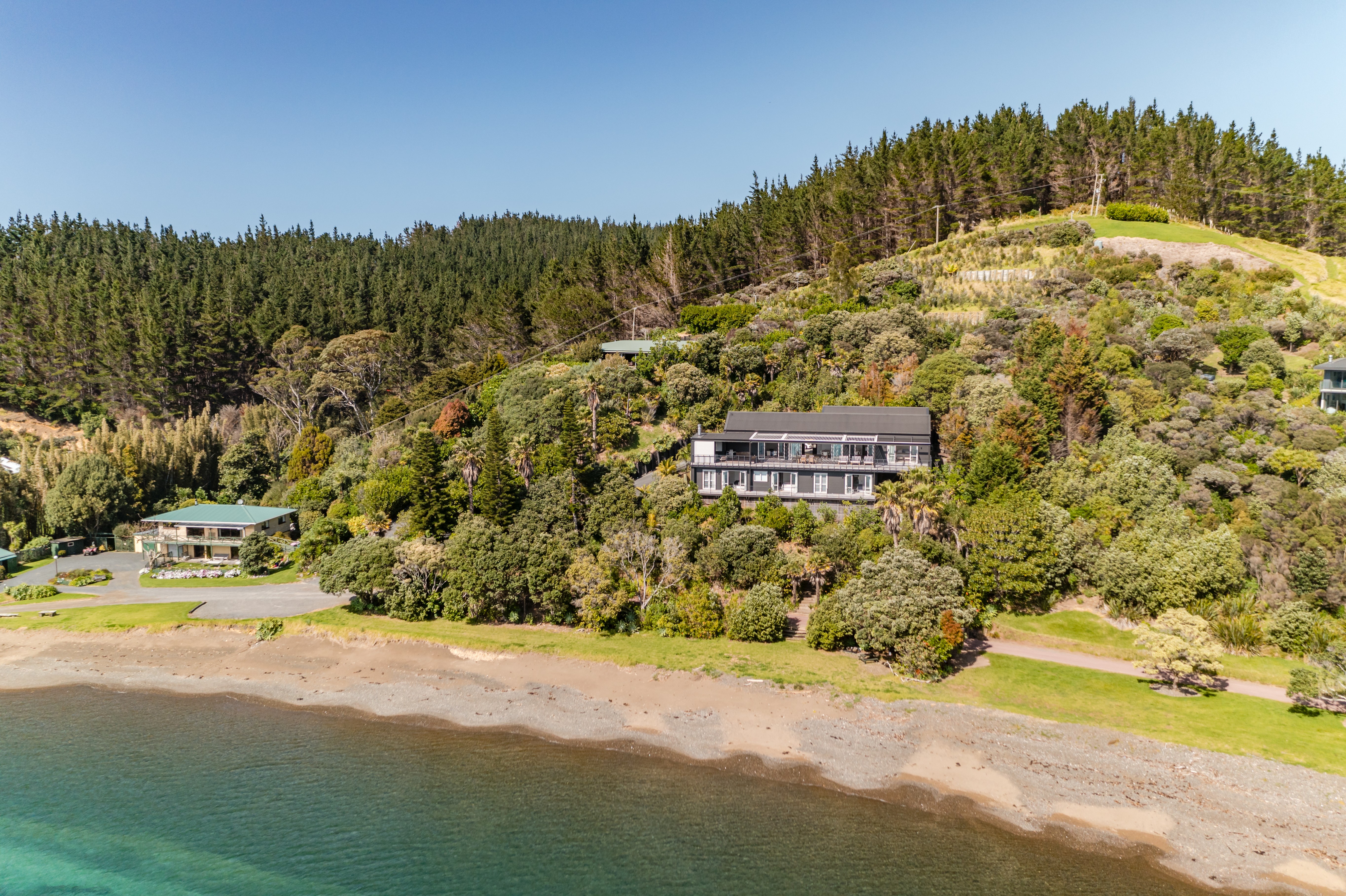 Just a 30 minute drive north of Kerikeri is this spectacular waterfront property. Access is by coded security gates, down a long driveway that only seven other property owners can use, so your security is guaranteed. There are only five houses in the Bay on the waterfront, all hidden from each other.