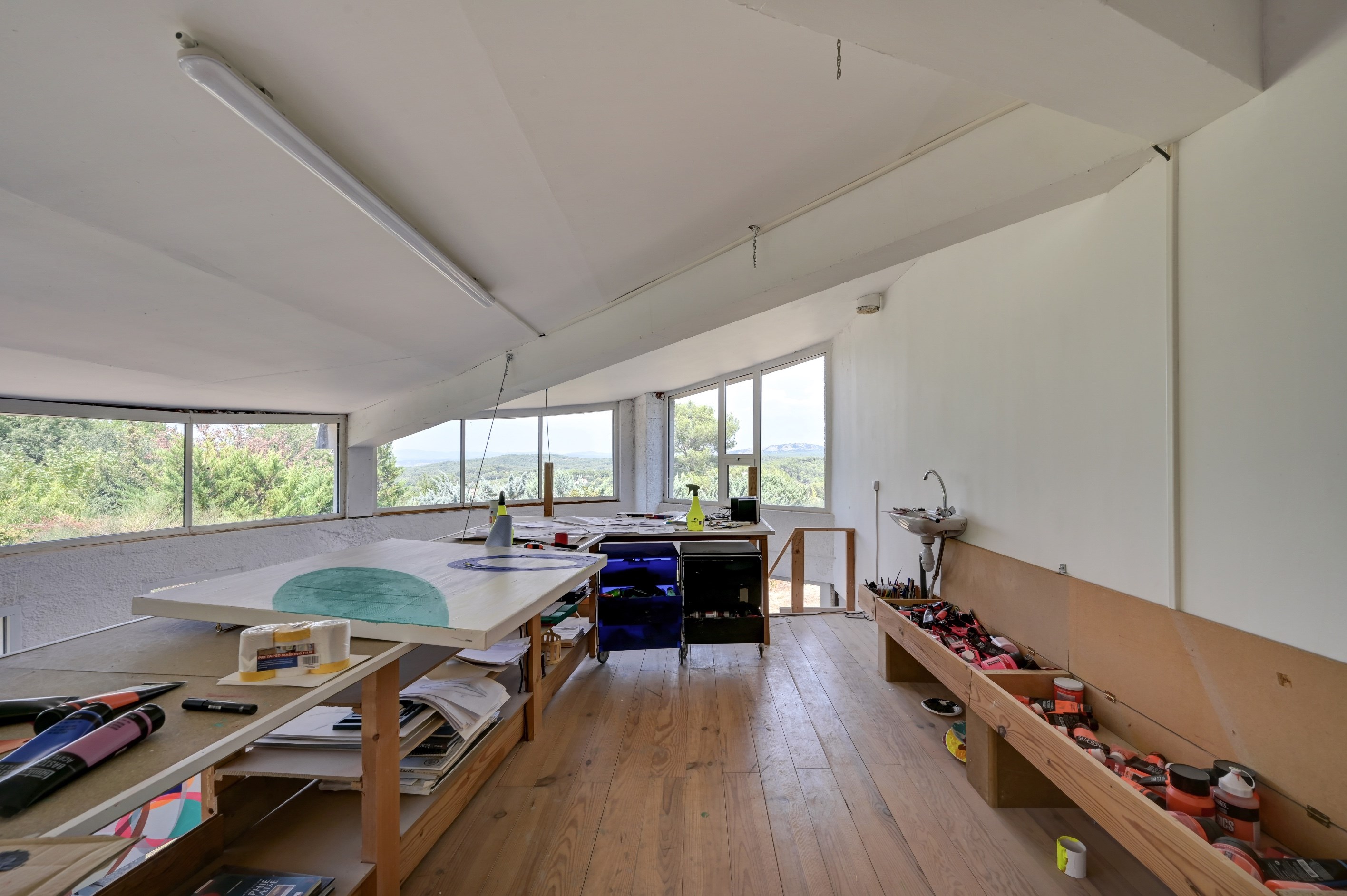 Do you have a fertile and overflowing imagination? Far from the more classic standards, with an avant-garde dimension and in the spirit of the Villa Benkemoun in Arles, without any pretension of comparison, it goes without saying! I offer you this artist's studio, occupied by a talented painter... A gem to be completely redesigned in order to give it a new identity. With an architectural design from the 1970s, a harmonious house made of curves and counter-curves, accentuating the effects of light and shadow throughout the day. With a living area of approximately 150 m², two floors and a small adjoining annex. All on a plot of 1165 m², with a commanding view, in absolute tranquility. It can be reached on foot in the heart of the village... It's just waiting for you! Mandate No. 1422 - Sotheby's Realty, the benchmark for luxury real estate in Aix-en-Provence.