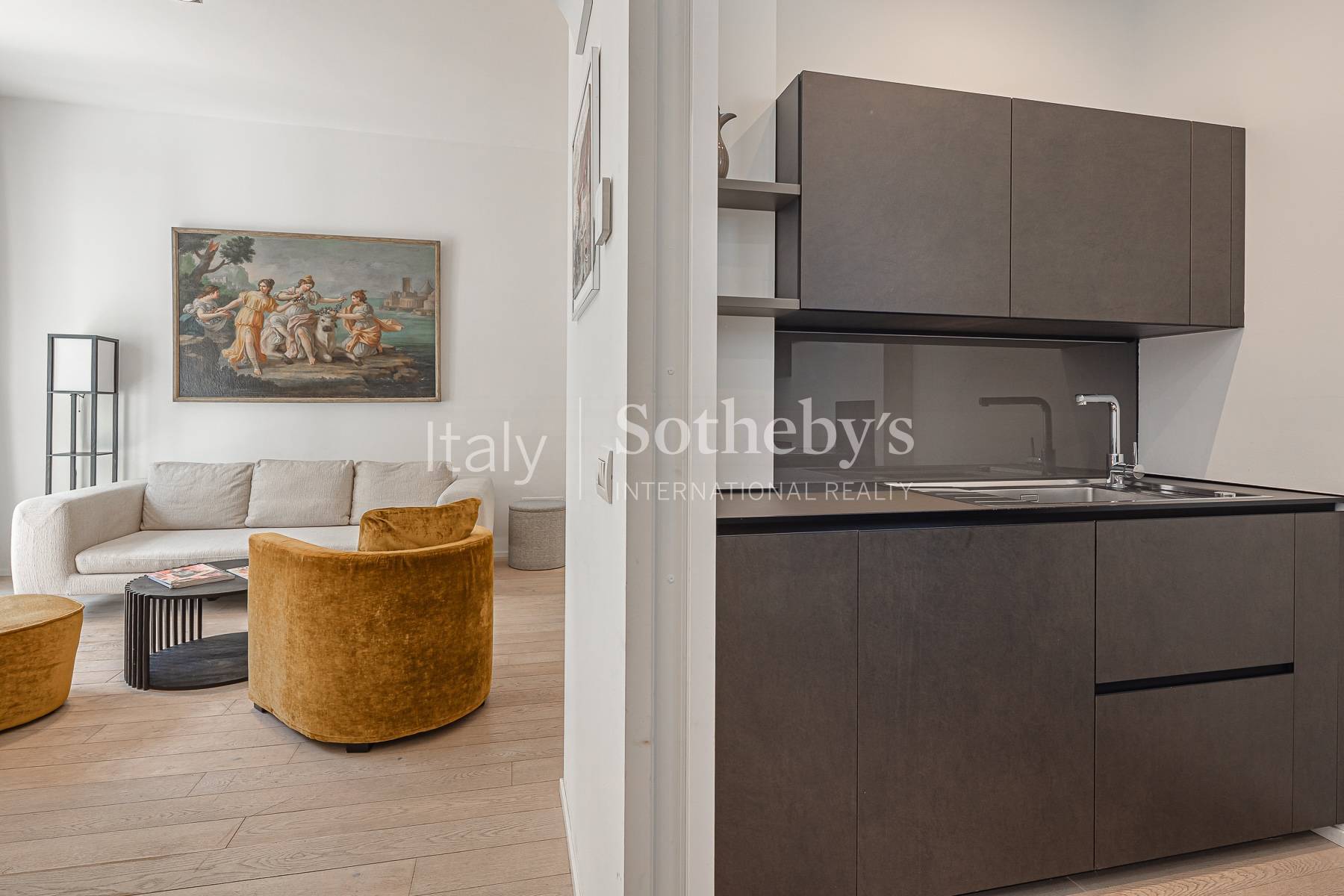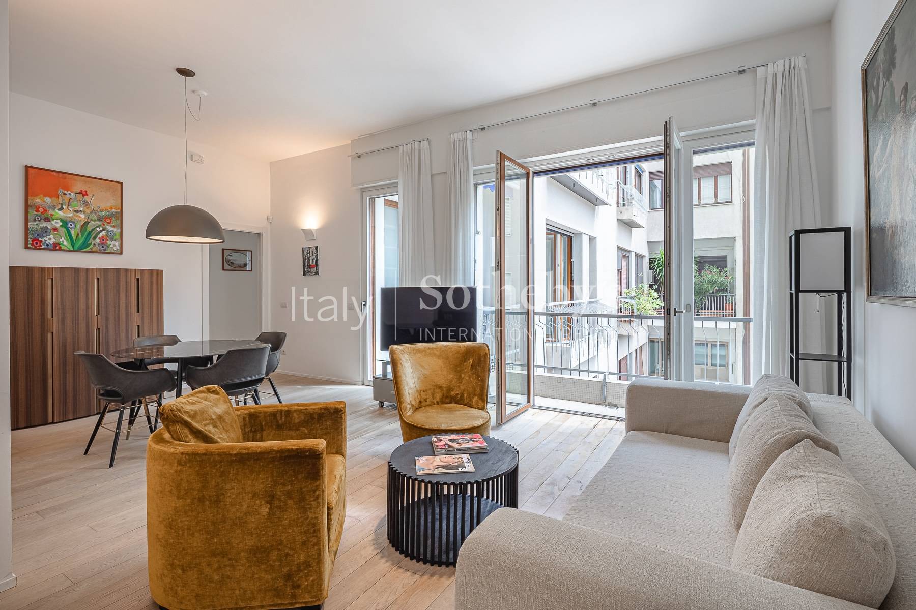 In the San Babila area, in the heart of Milan, a 89-square-meter apartment located on the fourth floor of an elegant building equipped with an elevator.The property comes fully furnished and features three bright rooms, including a semi-habitable kitchen equipped with high-quality appliances, offering ample space for cooking and dining, and a living room with access to a balcony, ideal for enjoying outdoor relaxation. The apartment also includes a spacious bedroom with a wardrobe, a large bathroom, and a laundry area with a washing machine and dryer. A cellar completes the property, perfect for storing items and tools.The apartment is characterized by high-quality finishes and an optimal layout, making it ideal for those looking for a comfortable and stylish home in a central and well-served area, with the convenience of having all services close at hand.