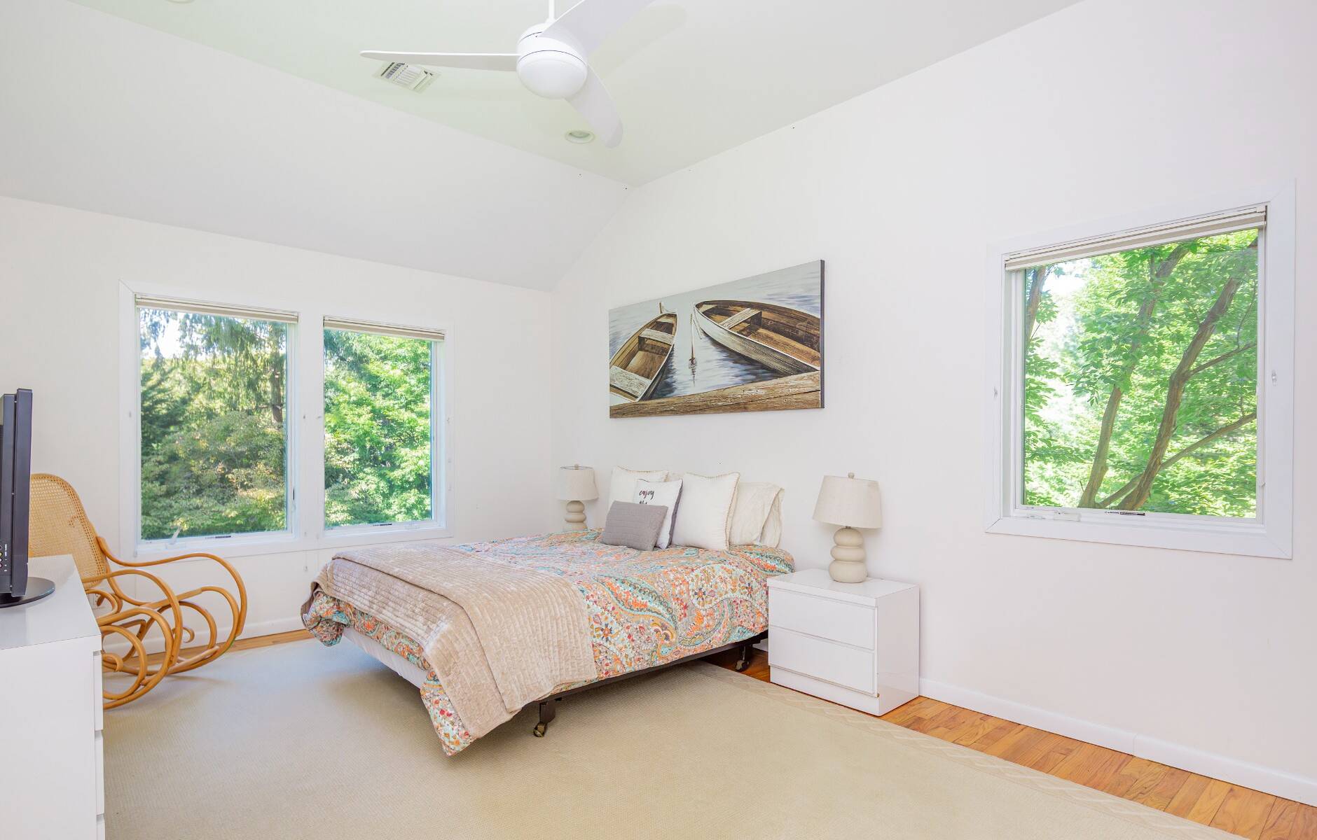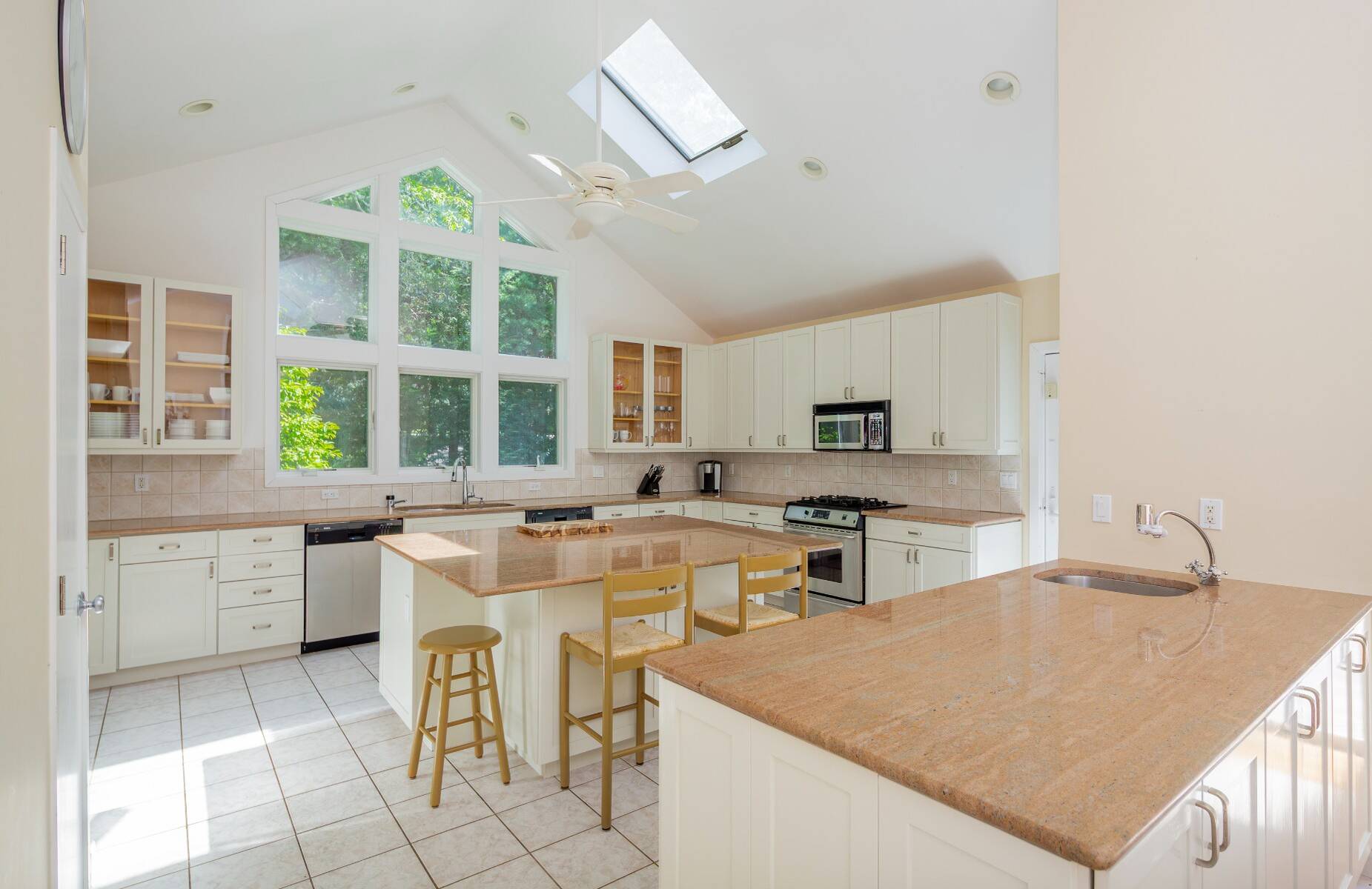 Escape to this serene and stylish East Hampton Village home-available this October during the most beautiful fall weather, or, for July or August during next summer's Hamptons season. Ideally located south of the highway and set on a private acre beside a scenic tree farm, this stunning seven-bedroom, seven-and-a-half-bath contemporary offers over 5,000 square feet of luxurious living space. Thoughtfully designed for relaxation and entertaining, the home features a sun-drenched great room with vaulted ceilings, a wood burning fireplace, and a seamless flow into the chef's kitchen with a large center island and counter seating. Floor-to-ceiling glass doors open to a covered outdoor dining area, a sprawling sundeck, and a 20' x 40' heated Gunite pool with salt water filtration system, complete with chaises longues and plush cabana chairs-your own private oasis. The primary suite is accessed via a private stairway and includes a sitting room with office area, a walk-in closet, and a spa-like bathroom with soaking tub and separate shower. Upstairs also includes two additional light-filled guest bedrooms with a shared bath. The downstairs offers four beautifully appointed guest rooms, each with glass doors leading to the expansive rear deck and lush, fenced lawn-perfect for guests seeking privacy. Additional highlights include a fully fenced, landscaped yard for maximum privacy, outdoor shower, ping pong table, separate laundry in the pool cabana for beach towels, one-car garage, all in close proximity to world-class beaches, shopping, dining, cultural attractions, and transportation. This home delivers the best of Hamptons living-modern comfort, timeless style, and an unbeatable location. [[Rental Registration # tbd]] EH RR #: tbd