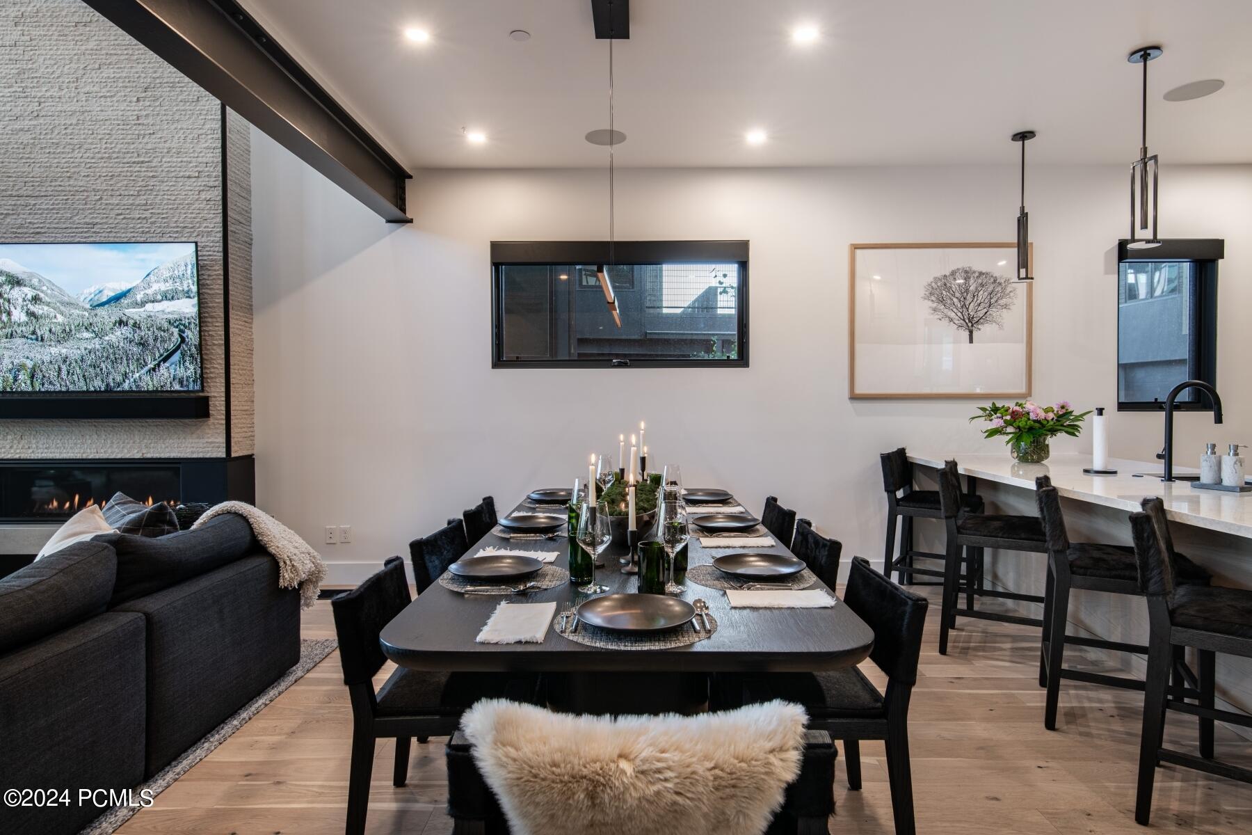 Tucked away in a quiet cul-de-sac in the heart of vibrant Canyons Village, this stunning contemporary townhome offers a rare and highly sought-after floor plan. The main level welcomes you with a gourmet kitchen, an inviting great room, and a spacious ski prep room that opens to a private deck complete with a hot tub overlooking the neighborhood ski trail. Upstairs, the luxurious primary suite is joined by two beautifully appointed guest suites, each featuring a king bed and private ensuite bath. A cozy office niche at the landing provides a tranquil spot to work or unwind, framed by serene mountain views. The lower level is designed for entertaining, with a generous family/media; second laundry area for added convenience and a wet bar perfect for apre-ski gatherings. A stylish oversized bunk room serves as the fourth bedroom suite. Thoughtfully curated designer finishes and high-end touches are showcased throughout, making this home a true mountain retreat and both elegant and functional.