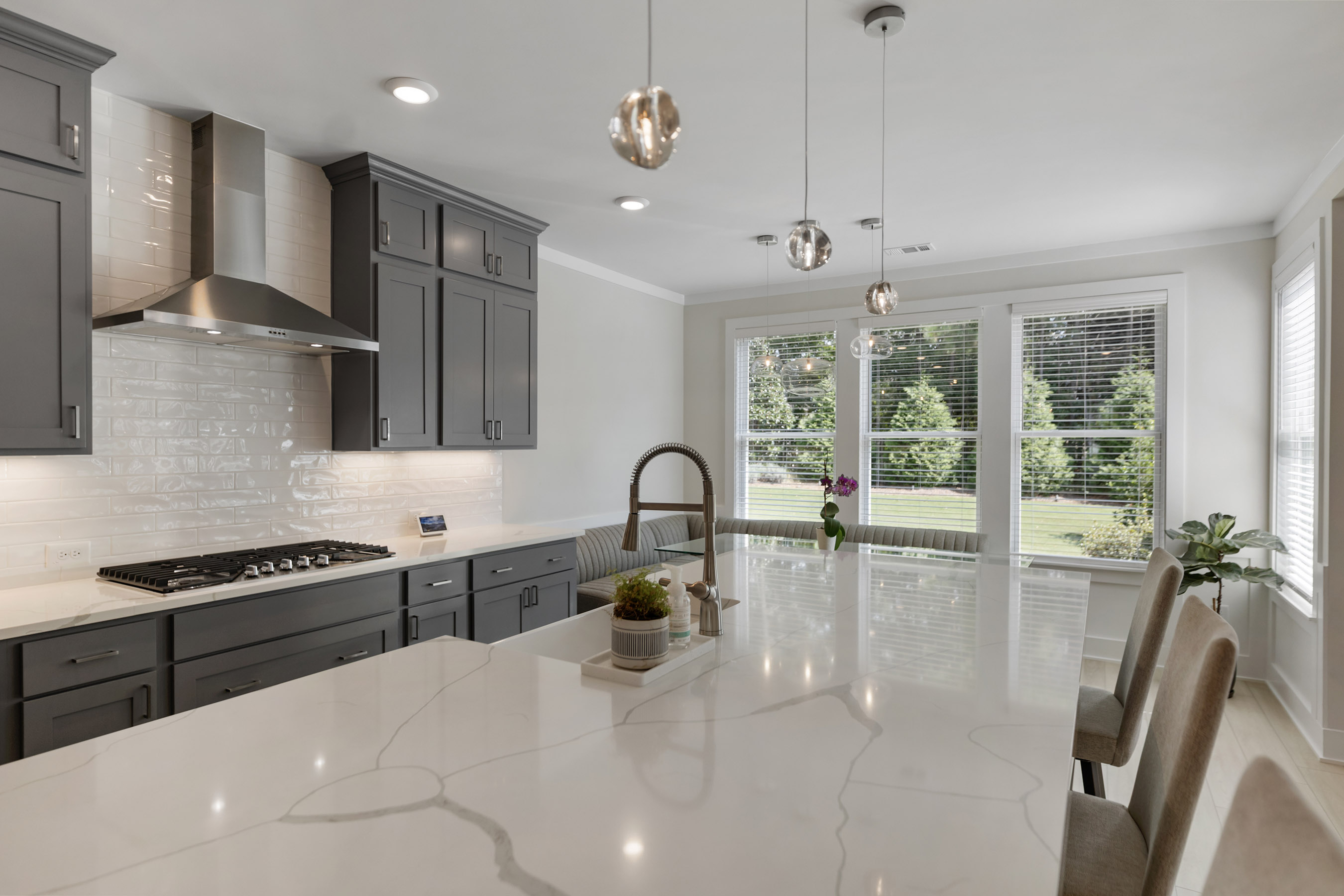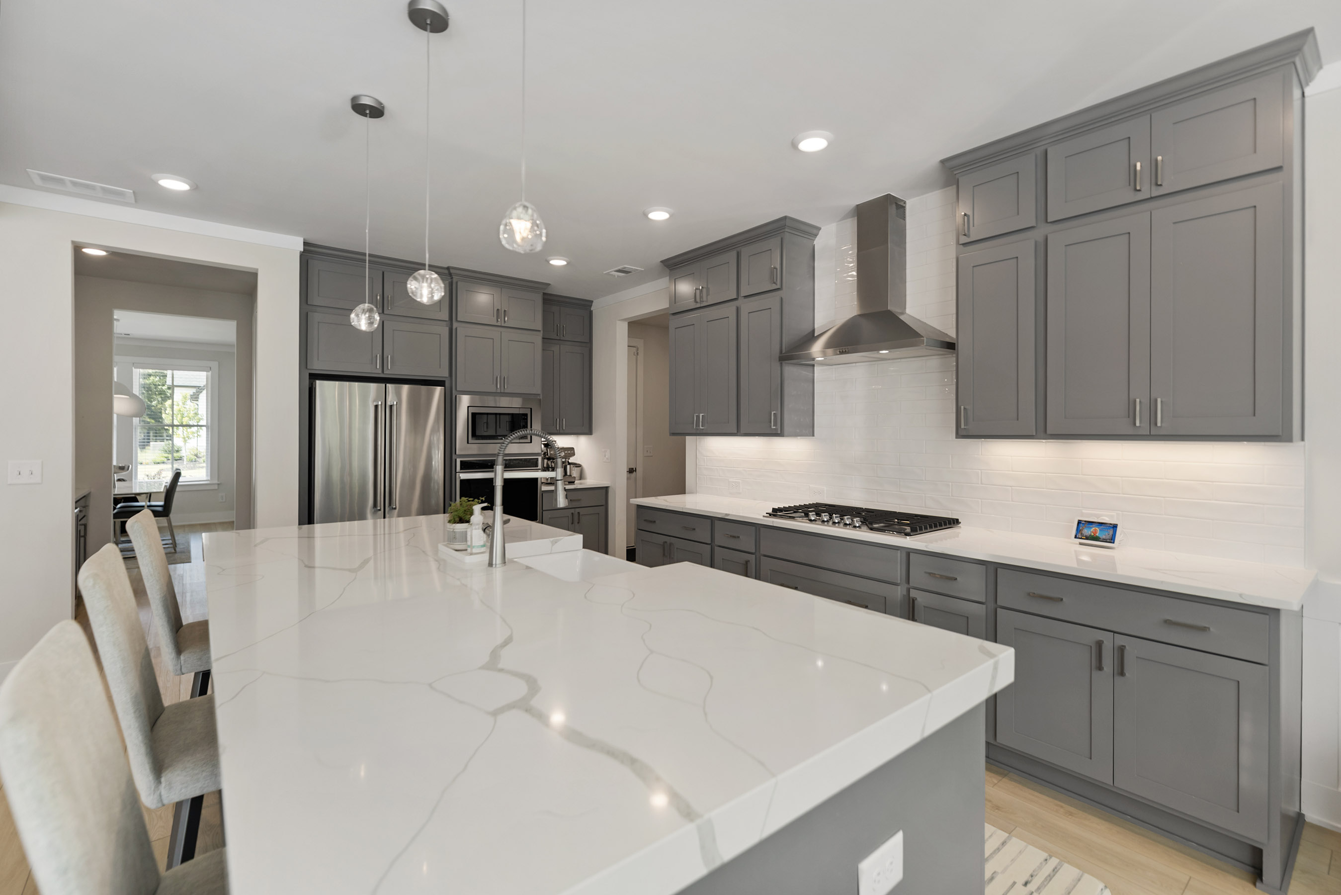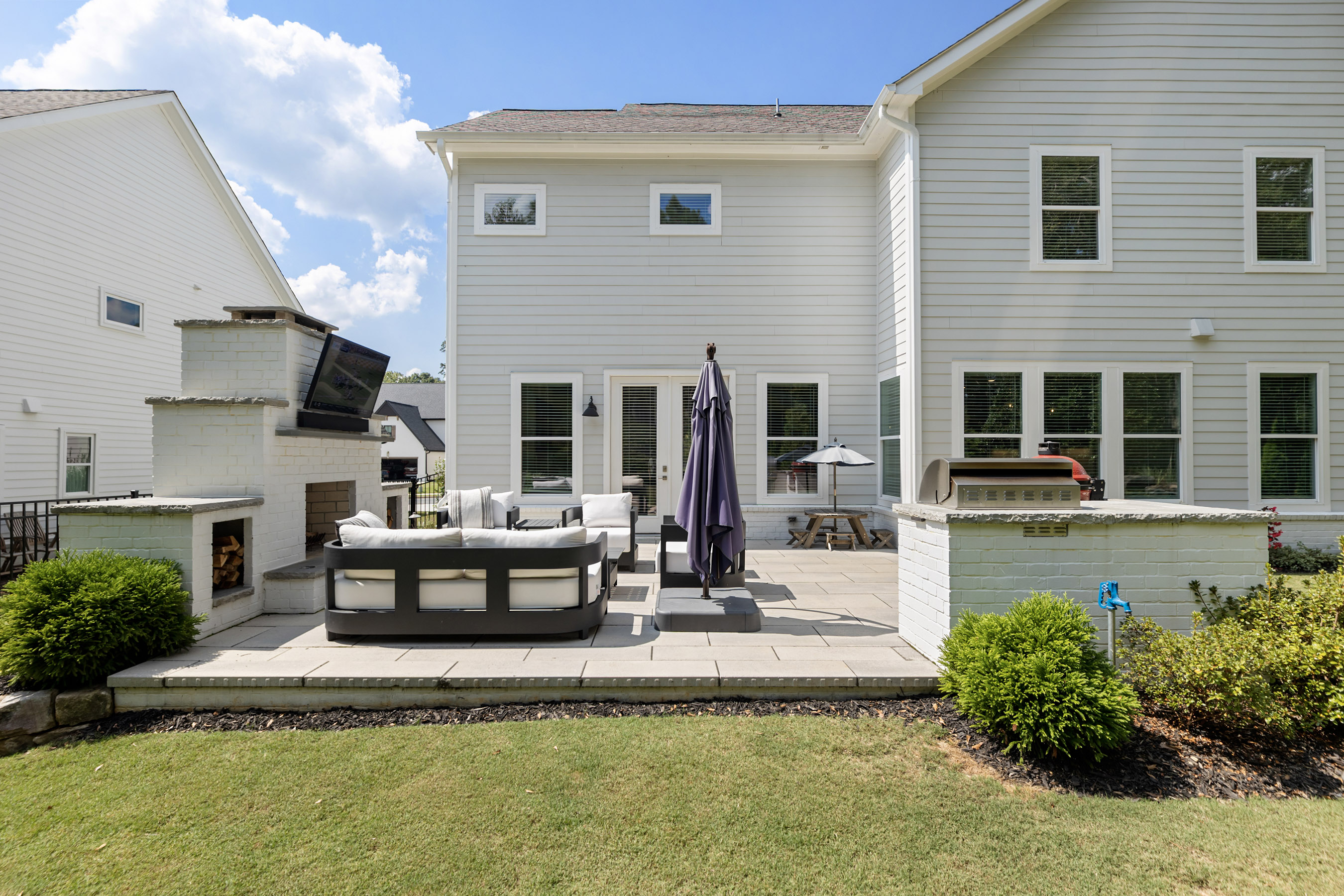 Better than new construction offering modern luxury in Kelly Mill Reserve with top-rated schools! A full en-suite bedroom conveniently located on the main level. Experience refined living in this farmhouse-inspired residence where painted brick, cedar trim, and carriage-style garage doors with smart openers set a tone of timeless elegance. Perfectly situated in the highly sought-after West Forsyth school district and minutes from Polo Golf and Country Club, this home blends architectural character with modern luxury. Inside, an open floor plan is anchored by LVP flooring, five-panel interior doors, and soaring nine-foot ceilings throughout both levels, with a vaulted ceiling accentuating the owner's suite. Thoughtful trim details, including crown molding, upgraded baseboards, and designer paint finishes, are complemented by stain-grade wood stair treads, elegant chandeliers, and recessed lighting. Custom built-ins enrich the family room, office, closets, pantry, and mudroom, while French doors define a private study. The gourmet kitchen is a true centerpiece, showcasing 42-inch cabinetry extended to the ceiling, upgraded thick quartz countertops, a farmhouse sink, chef's cooktop with vent hood, double ovens, and a classic subway tile backsplash. The adjoining dining and living spaces are elevated by a craftsman-style fireplace with gas logs and custom accent wall in the owner's retreat. Upstairs, a spacious bonus/flex room expands the home's versatility. The owner's suite offers a spa-like escape with a frameless glass shower, oversized soaking tub, double vanities with granite counters, and a custom walk-in closet with direct access to the laundry room complete with sink. Every secondary bedroom is enhanced by ceiling fans, generous storage, and comfort-height finishes. Outdoors, the residence transforms into a private oasis. A custom brick fireplace with TV mount, outdoor kitchen, and putting green with lighting creates the ultimate entertaining destination. Professional landscaping features Green Giants, Magnolias, accent boulders, and a fully fenced yard with drip irrigation, four-zone sprinkler system, three hose bibs, and extensive exterior lighting. Modern conveniences include CAT6 wiring, Lennox zoned HVAC, energy-efficient windows, and a termite protection system, ensuring comfort and peace of mind. Beyond the property, enjoy walking access to Midway Park, Post Road Library, local shops, restaurants, and top-rated schools, with easy access to GA-400. This home presents a rare opportunity to experience sophisticated living at its finest, offering every luxury upgrade already in place, in one of Forsyth County's most desirable locations. Buyers! Get up to $6,000 toward closing costs and two-one buydown with preferred lender.