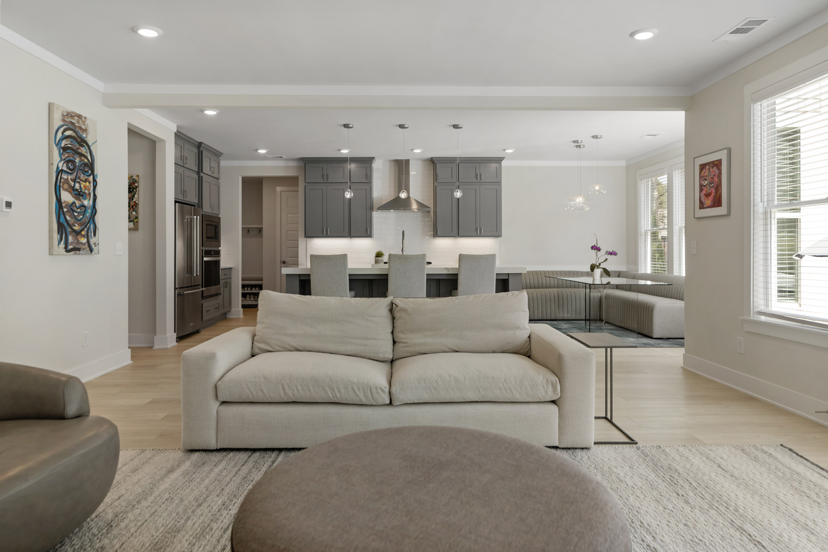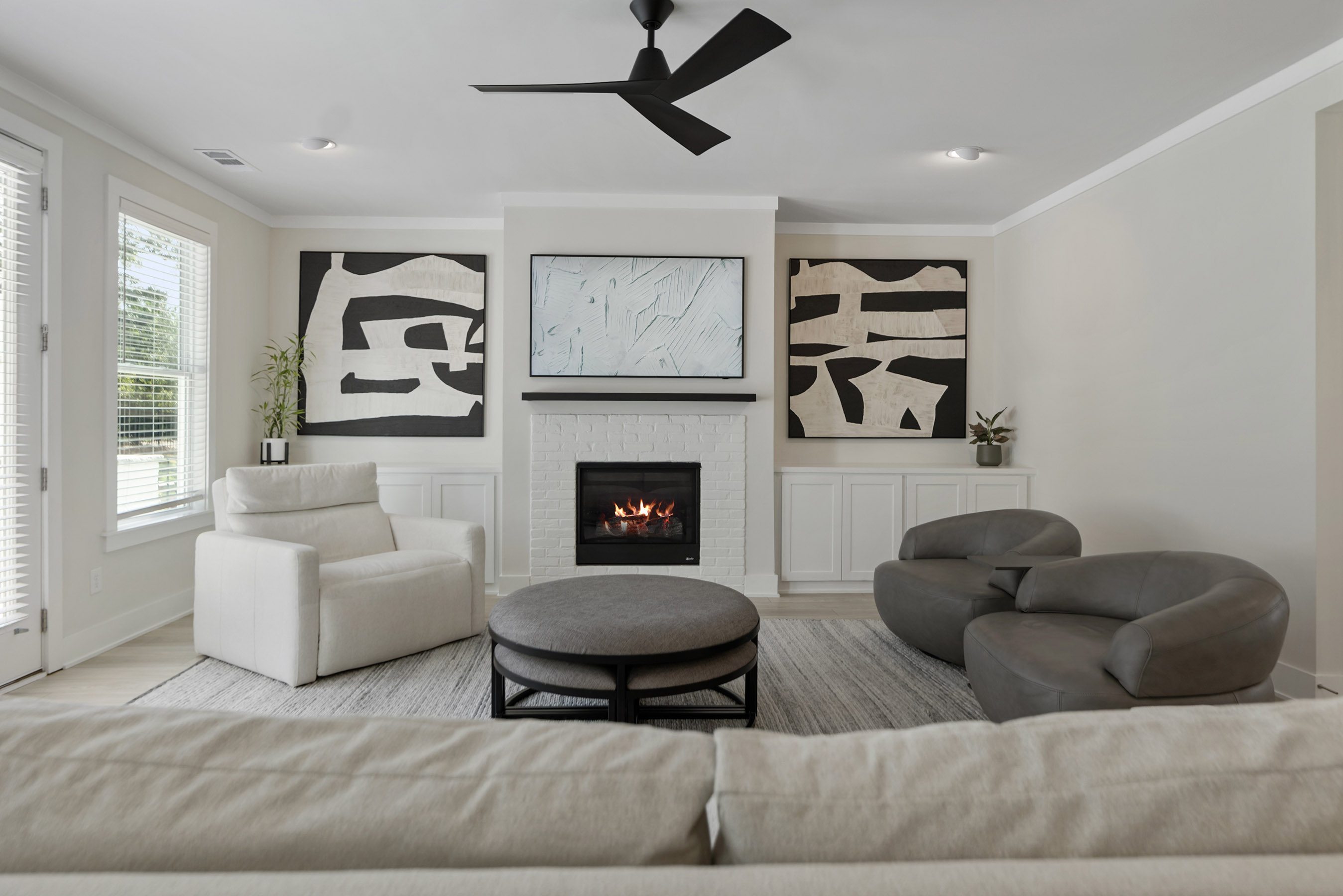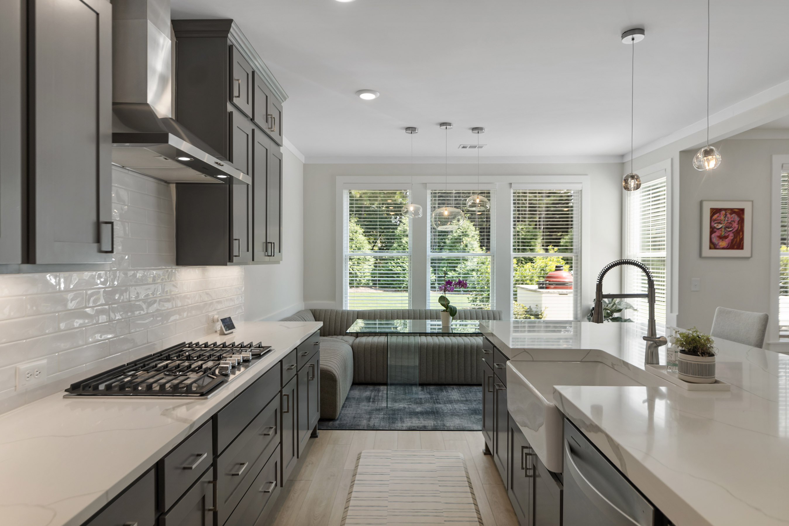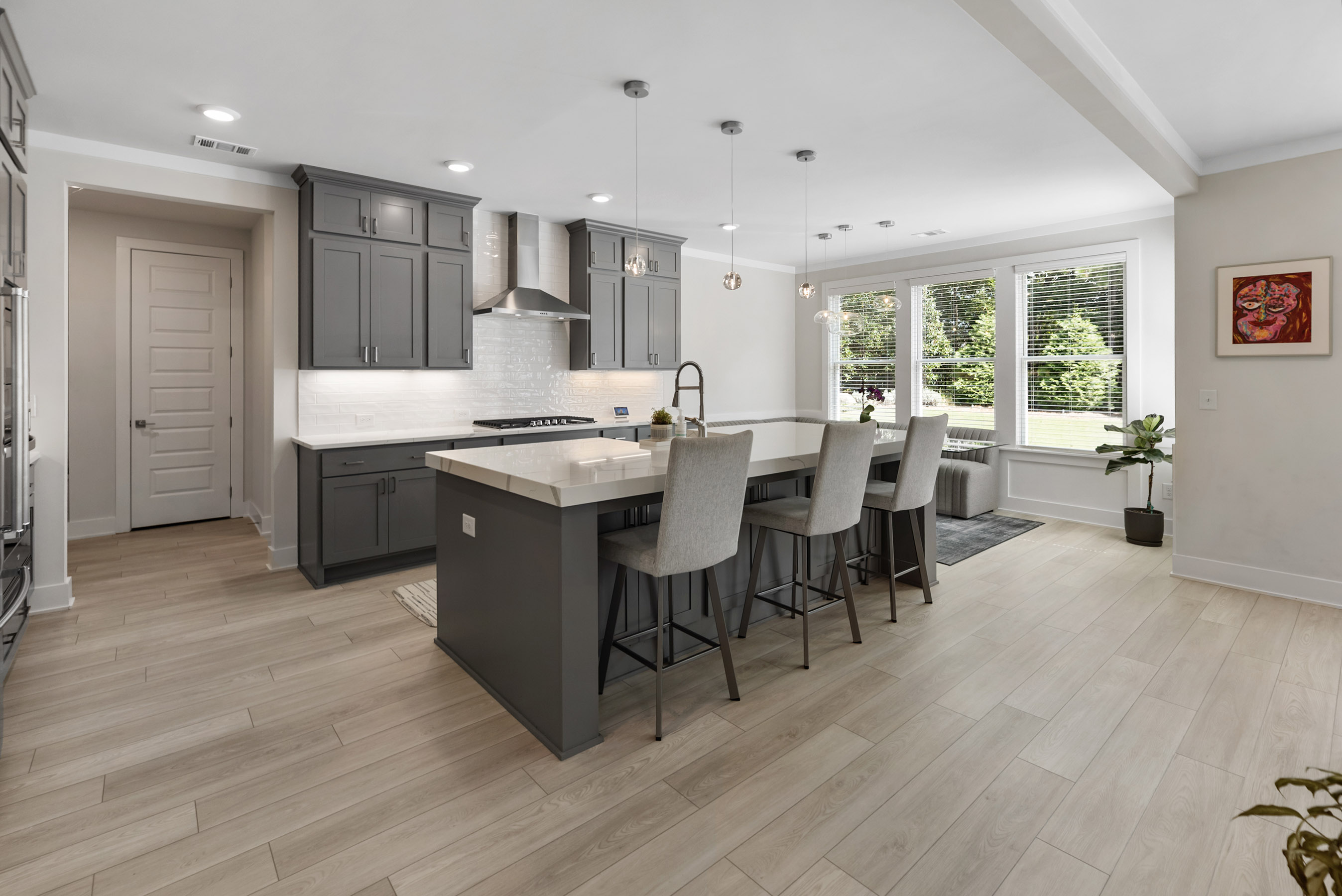 Better than new construction offering modern luxury in Kelly Mill Reserve with top-rated schools! A full en-suite bedroom conveniently located on the main level. Experience refined living in this farmhouse-inspired residence where painted brick, cedar trim, and carriage-style garage doors with smart openers set a tone of timeless elegance. Perfectly situated in the highly sought-after West Forsyth school district and minutes from Polo Golf and Country Club, this home blends architectural character with modern luxury. Inside, an open floor plan is anchored by LVP flooring, five-panel interior doors, and soaring nine-foot ceilings throughout both levels, with a vaulted ceiling accentuating the owner's suite. Thoughtful trim details, including crown molding, upgraded baseboards, and designer paint finishes, are complemented by stain-grade wood stair treads, elegant chandeliers, and recessed lighting. Custom built-ins enrich the family room, office, closets, pantry, and mudroom, while French doors define a private study. The gourmet kitchen is a true centerpiece, showcasing 42-inch cabinetry extended to the ceiling, upgraded thick quartz countertops, a farmhouse sink, chef's cooktop with vent hood, double ovens, and a classic subway tile backsplash. The adjoining dining and living spaces are elevated by a craftsman-style fireplace with gas logs and custom accent wall in the owner's retreat. Upstairs, a spacious bonus/flex room expands the home's versatility. The owner's suite offers a spa-like escape with a frameless glass shower, oversized soaking tub, double vanities with granite counters, and a custom walk-in closet with direct access to the laundry room complete with sink. Every secondary bedroom is enhanced by ceiling fans, generous storage, and comfort-height finishes. Outdoors, the residence transforms into a private oasis. A custom brick fireplace with TV mount, outdoor kitchen, and putting green with lighting creates the ultimate entertaining destination. Professional landscaping features Green Giants, Magnolias, accent boulders, and a fully fenced yard with drip irrigation, four-zone sprinkler system, three hose bibs, and extensive exterior lighting. Modern conveniences include CAT6 wiring, Lennox zoned HVAC, energy-efficient windows, and a termite protection system, ensuring comfort and peace of mind. Beyond the property, enjoy walking access to Midway Park, Post Road Library, local shops, restaurants, and top-rated schools, with easy access to GA-400. This home presents a rare opportunity to experience sophisticated living at its finest, offering every luxury upgrade already in place, in one of Forsyth County's most desirable locations. Buyers! Get up to $6,000 toward closing costs and two-one buydown with preferred lender.