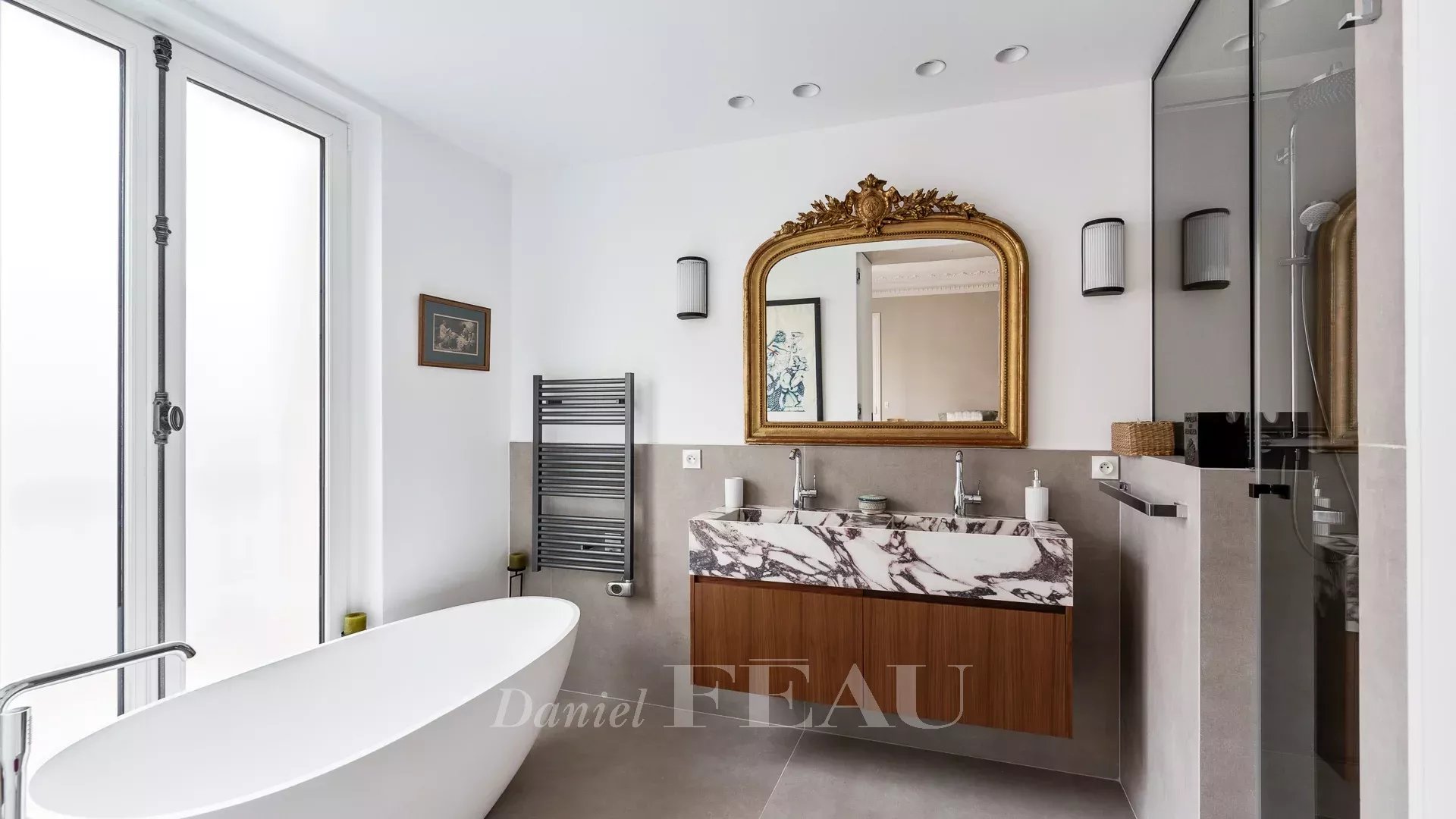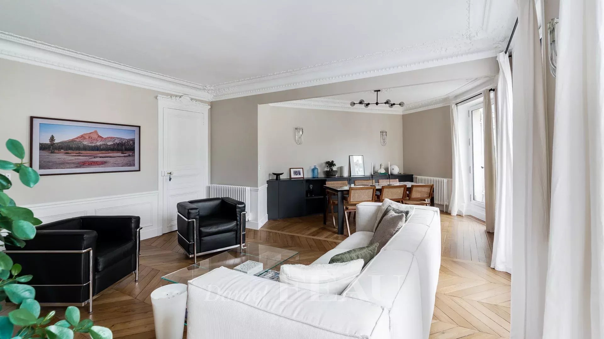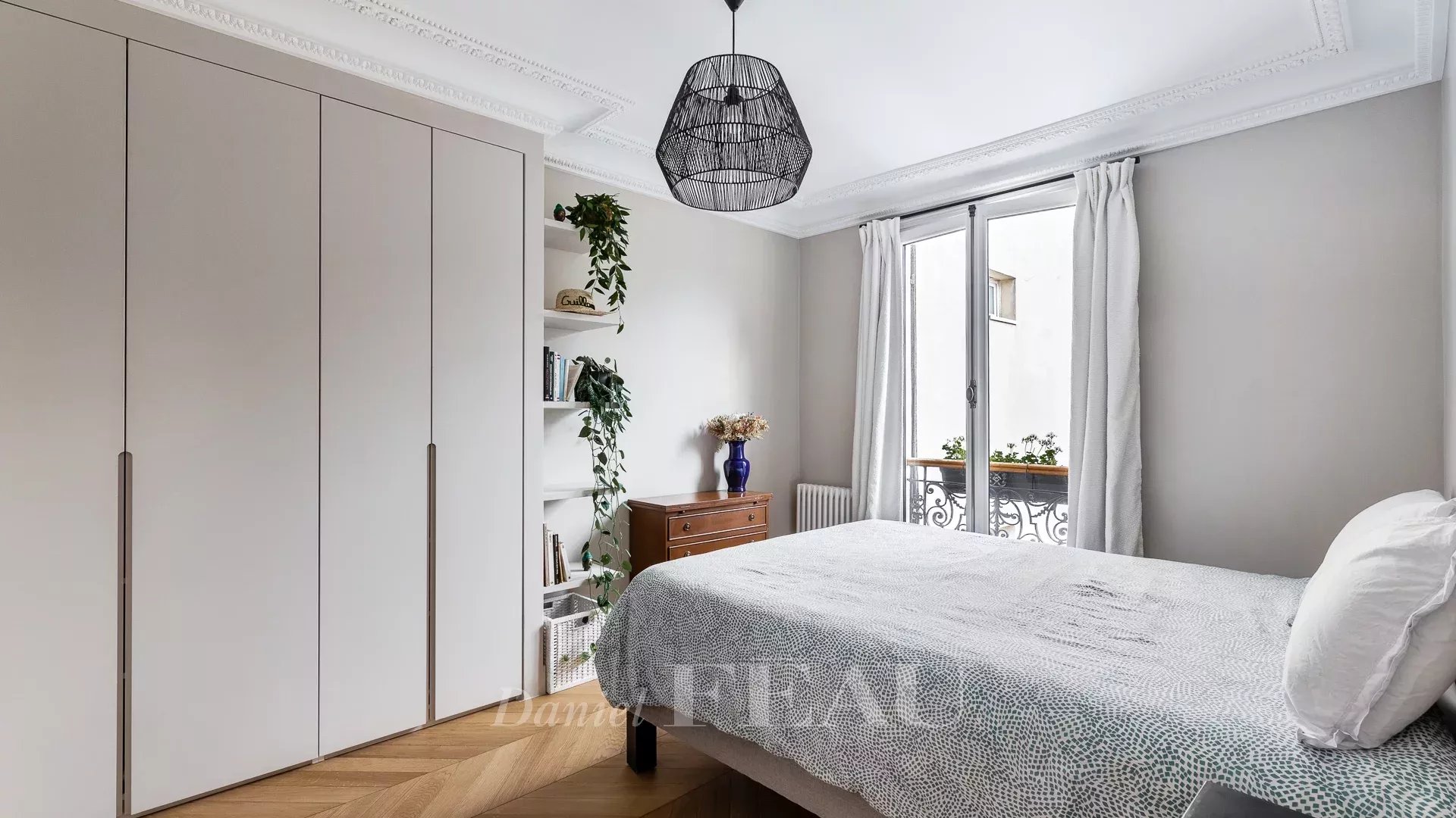 Sole Agent. This bright dual-aspect apartment is on the 5th floor of a fine freestone building with a lift located in a peaceful sought-after in the immediate vicinity of lively rue des Martyrs and avenue Trudaine. Renovated throughout by an interior decorator, it offers 91.42 sqm of floor space and 90.07 sqm of living space as defined by the Carrez Law including a double living/reception room opening onto a balcony enjoying an open view, a separate fully equipped kitchen, a master suite, a second bedroom with a shower room, and a separate wc.