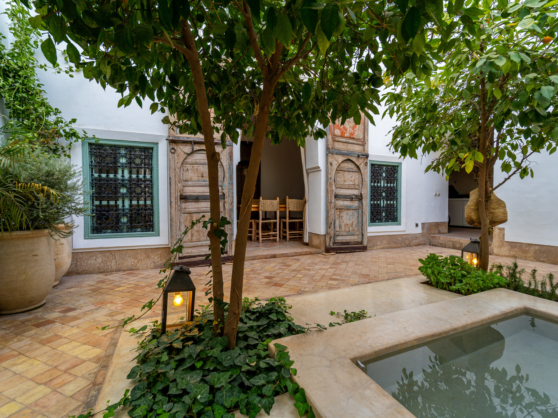 Other features: Titled riad, air conditioning, high-end finishes, sold furnished, signature architecture, double pools (patio & terrace), high rental potential.