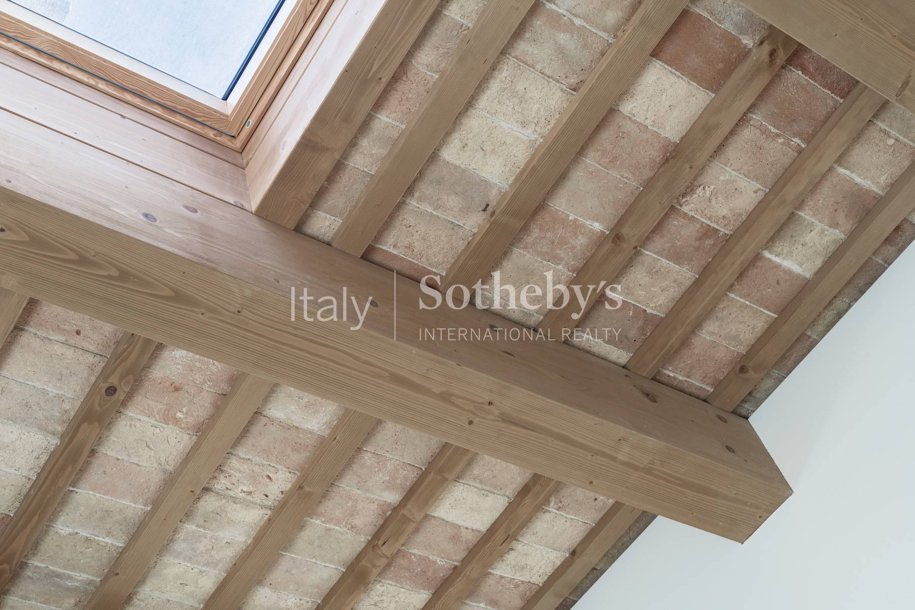 In the heart of historic Treviso, in one of its most iconic areas, stands this elegant two-level apartment located on the third and fourth floors of a prestigious, newly restored palazzo.The spacious residence opens into a spectacular living area of generous dimensions, enhanced by dual exposure that floods the space with natural light throughout the day. The double-height ceiling combines modern exposed beams in the central section with beautifully restored original terracotta tiles at the ends, creating a refined balance between heritage and contemporary design. On the same level are a fully equipped, separate eat-in kitchen, a laundry room, a guest bathroom, and one of three bright and generous primary bedrooms, complete with an en suite bath.The upper floor, dedicated to the sleeping area, features two additional elegant bedrooms with charming sloped ceilings, each with its own en suite bathroom, ensuring maximum comfort and privacy. Every detail has been carefully curated, with premium materials and high-end finishes that convey warmth, harmony, and timeless sophistication. The property also includes a spacious double garage, a rare feature in Treviso's historic center.Strategically situated, the residence is just minutes from Treviso Airport and approximately thirty minutes from Venice Airport. The new high-speed train station offers convenient connections to major cities across Northern Italy.A home designed for those who wish to live in an exclusive setting, where elegance, historic charm, and modern comfort come together in perfect harmony.