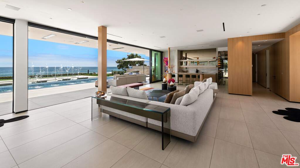 Welcome to your seaside paradise in Malibu! Nestled on nearly 3/4 acre of beachfront bliss, this exquisite property boasts an unparalleled location on Broad Beach. With over 7,600 square feet of luxurious living space, the estate comprises a Main House and a Guest House, ensuring opulence and comfort at every turn. The Guest House, a haven of sophistication, features 2 bedrooms, 2 bathrooms, a well-appointed kitchen area, family room, laundry room, and a security office with a separate bathroom. The main dwelling houses a total of 6 bedrooms, each equipped with ensuite bathrooms. The home's lower level is an entertainer's dream, with a family room featuring a bar, a spacious kitchen adorned with Gaggenau appliances, a dining room offering ocean-view seating, and a living area with a bar and wine closet. A Guest Suite, complete with a seating area, ensuite bathroom with a steam room, and direct access to the pool and beach areas, ensures a seamless blend of luxury and convenience. Upstairs, three secondary bedrooms with ensuite bathrooms, a den with a TV viewing area, and a main suite await. The expansive main suite encompasses a private office, sitting room, main bedroom, two walk-in closets, and a lavish main bathroom with a steam shower and soaking tub. A 1,000 sq ft balcony off the primary bedroom provides breathtaking 180-degree unobstructed ocean views. Completed in 2022, the residence is equipped with state-of-the-art electronics, security cameras, and alarm systems, all seamlessly controlled via a Control 4 app. The Family Room Theater features a 9'x18' video wall with full multiplexing, allowing simultaneous viewing of four events. Outdoor amenities include a zero-edge pool with swim jets, jacuzzi jets, and a water wall in the main courtyard. The beachside entertainment area boasts a built-in barbecue, a 40' infinity-edge pool with a Baja shelf, a dancing fountain, and over 6,000 sq ft of decking and entertainment space. Embrace coastal luxury and create everlasting memories in this Malibu masterpiece.