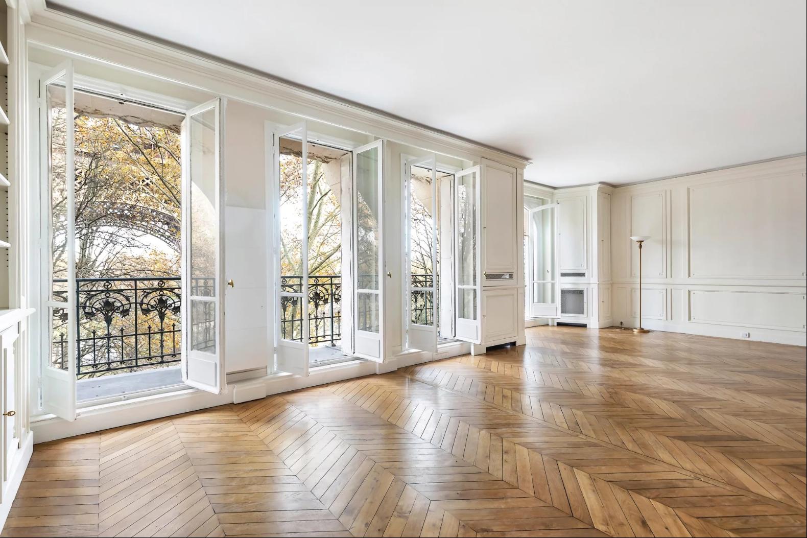 This magnificent 172 sqm apartment in perfect condition is on the 4th floor of a fine early 20th century freestone building with a caretaker and a lift located on the edge of the Champ-de-Mars. Benefiting from no facing neighbours and commanding a picture-postcard view of the Eiffel Tower, it includes an entrance hall, a 72 sqm triple living/reception room bathed in sunshine thanks to several wide floor-to-ceiling windows and featuring Herringbone parquet flooring and a fireplace, a kitchen with dining facilities, a master suite with a bathroom, and two further bedrooms with a shower room and wc.
