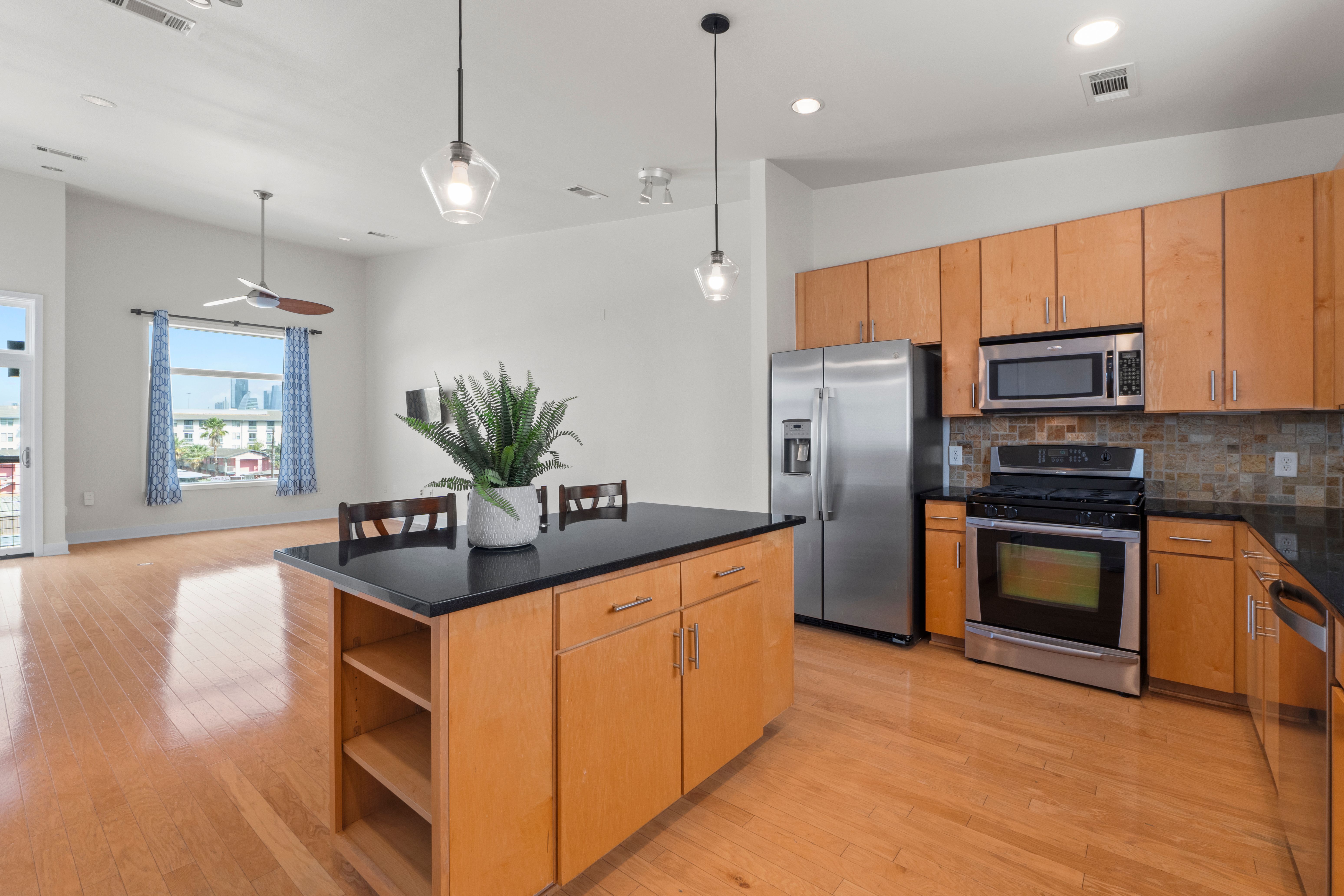 Prime South Lamar location with a downtown skyline view. This modern, light-filled condo at The Sage offers effortless access to Austin’s best, minutes from Lady Bird Lake, Zilker Park, Barton Springs, Alamo Drafthouse, Loro, Snooze, and dozens of shops and restaurants.Inside, the 1,523 sq ft layout features open living and dining spaces, a kitchen with an island and bar seating, and new carpets throughout. Both bedrooms include en suite bathrooms. The home also offers an attached two-car garage and a spacious utility room on the main level.A walkable lifestyle, incredible views, and unbeatable South Lamar convenience come together in this standout condo at The Sage.