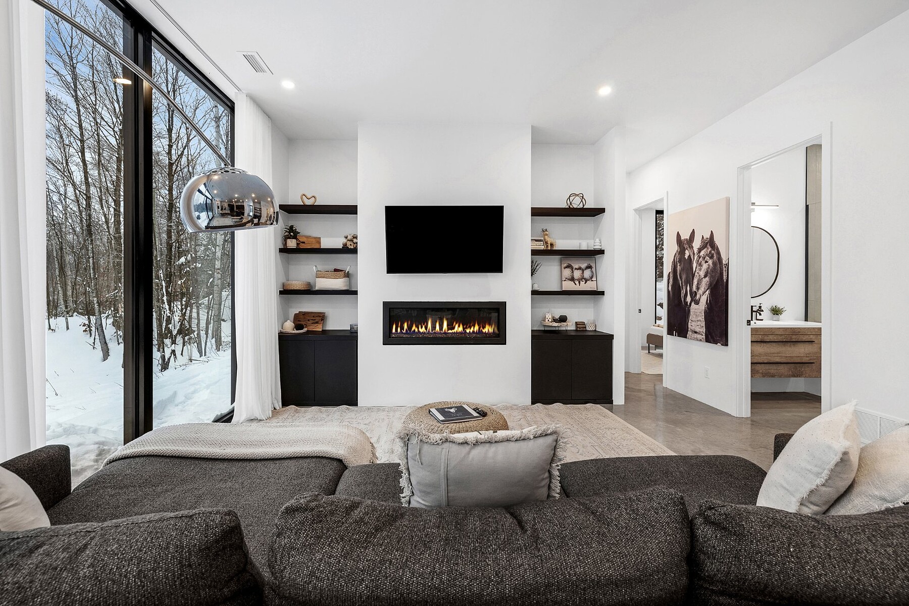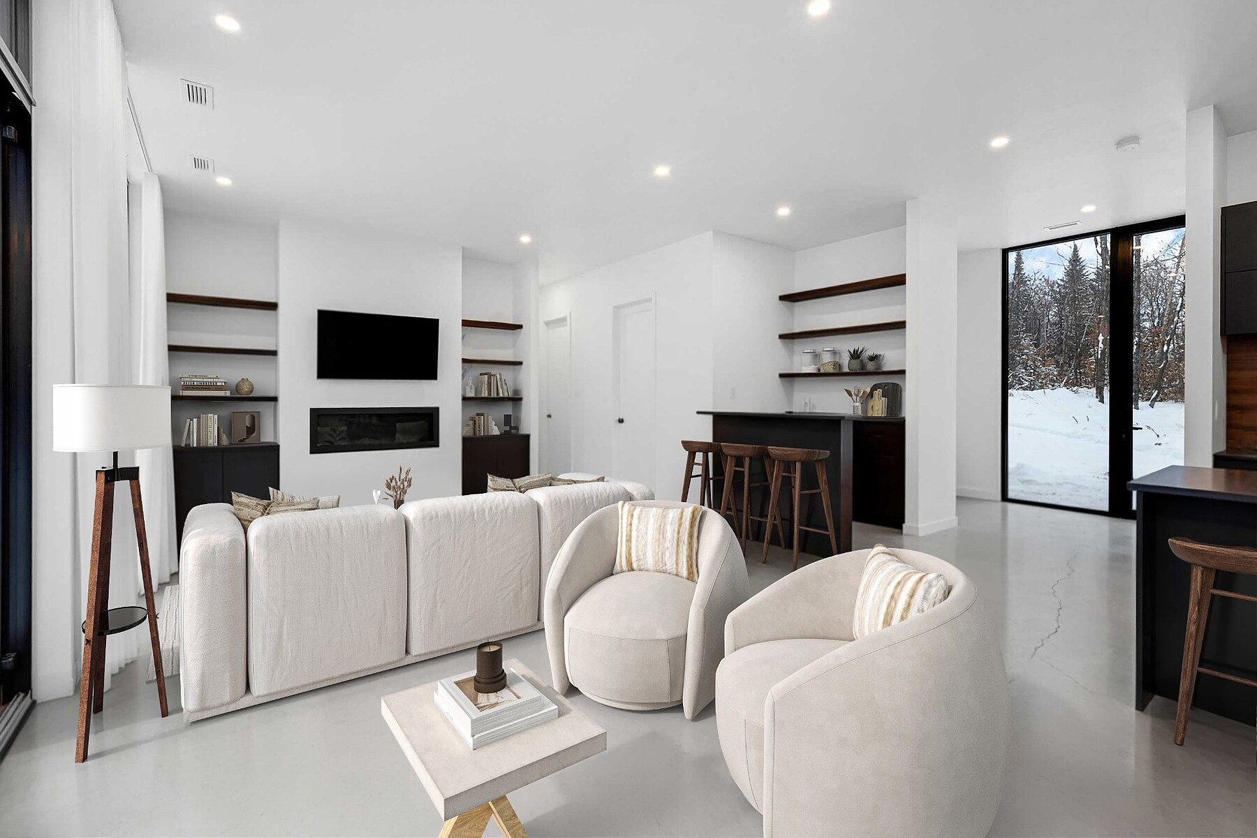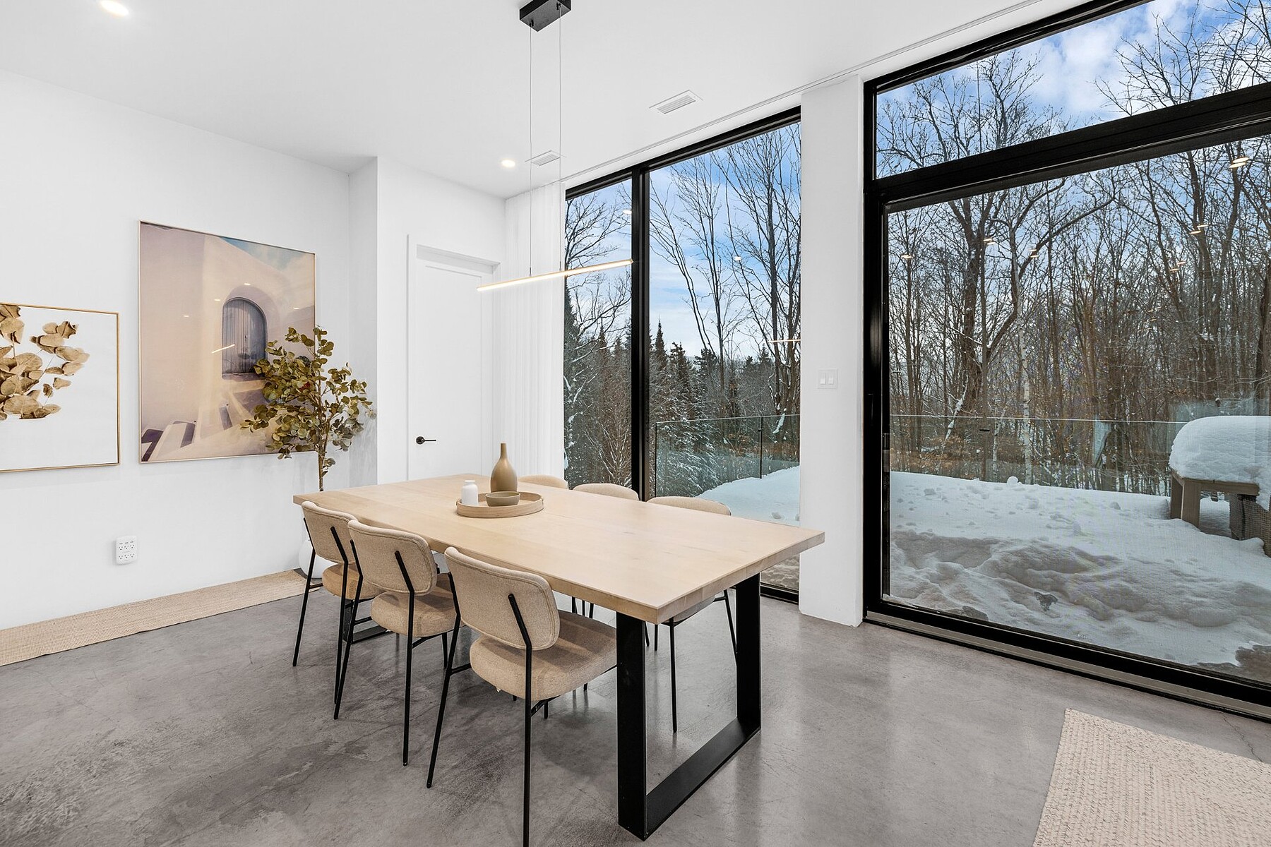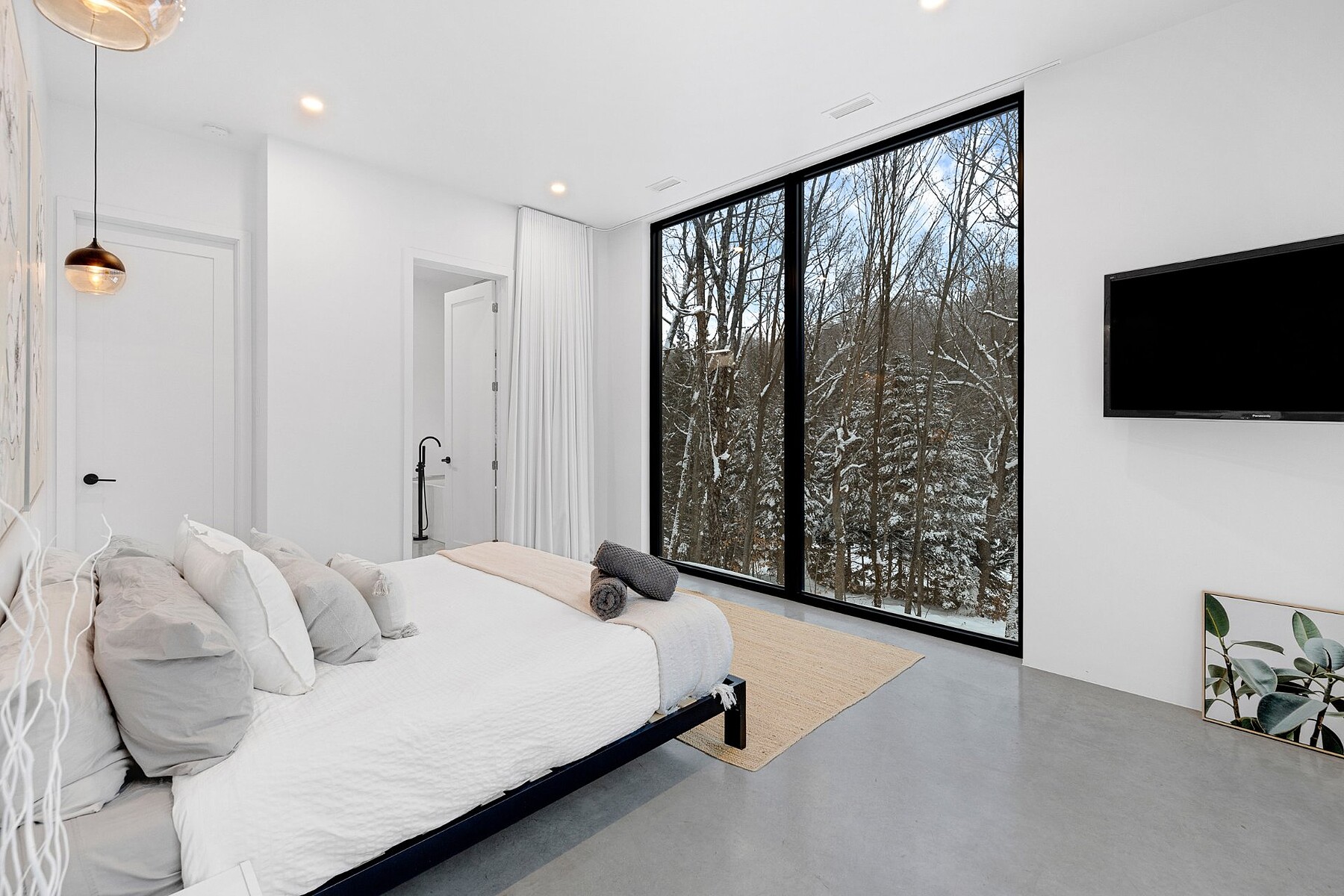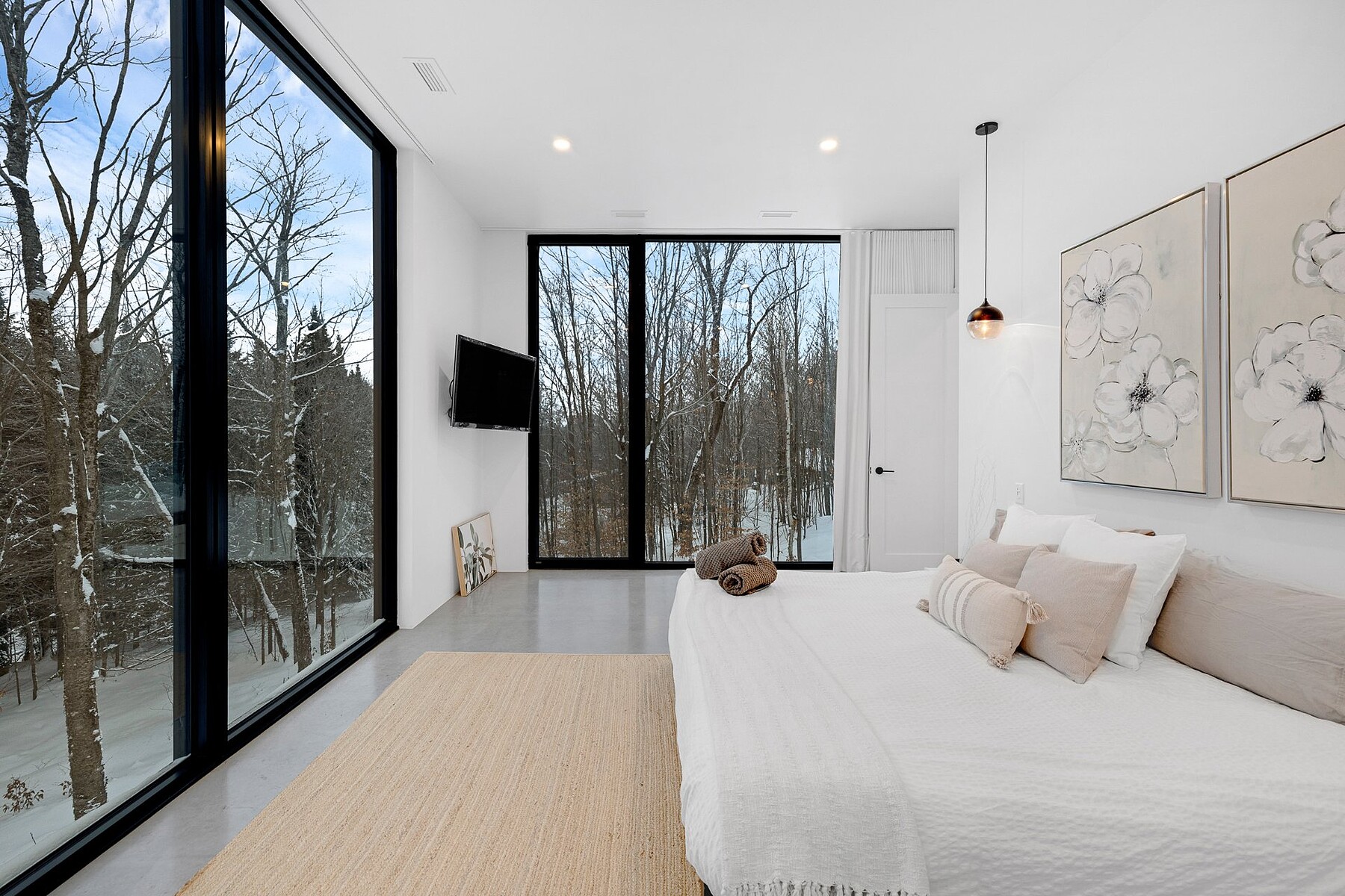 Welcome to your private, nature-filled oasis. This striking architectural home combines warm contemporary design with sweeping, immersive views of the surrounding landscape. Thoughtfully crafted for both comfort and style, it offers 3 bedrooms, 2 bathrooms, and generous open-concept living spaces that feel connected to nature at every turn. Enjoy soaring ceilings, heated floors, and full-height windows that bathe the interior in natural light. Modern, unique, and exceptionally functional, the home is perfectly suited for year-round living or as a high-performing investment property.