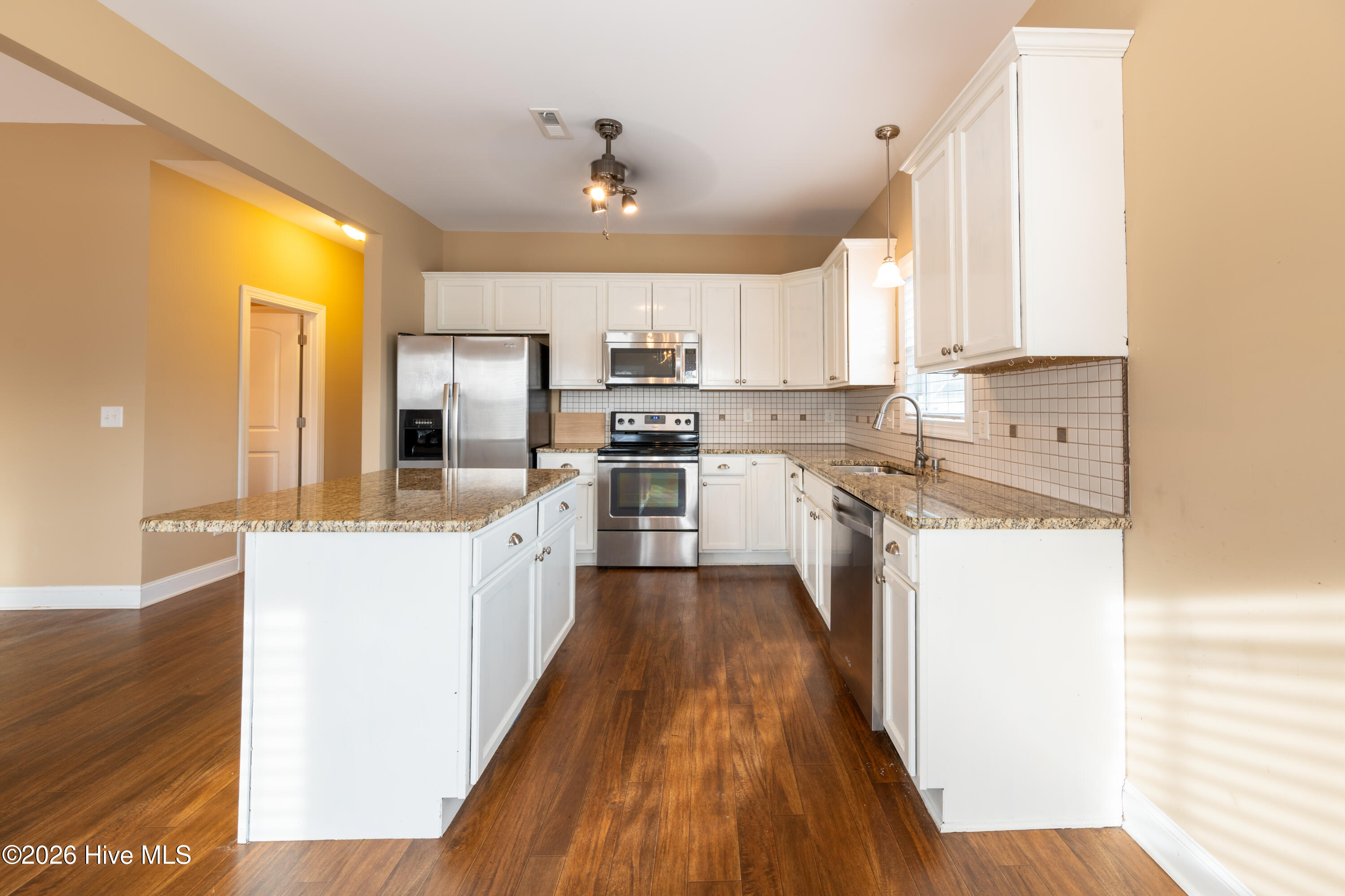 Nice 3 Br. 2 Ba. Home tucked away in the Pine View Subdivision on a Cul de Sac. Almost 1900 Sq. Ft with an open floor plan. Den has a vaulted ceiling, fireplace with Gas Logs and laminate floors. The kitchen has Stainless Appliances which includes the Refrigerator, Granite countertops and an Island. The dining area is next to the kitchen. The laundry room is off of the kitchen and includes the Washer and Dryer. The Primary Suite has dual vanities, Tub, Separate Walk-In -Shower and a Walk-In-Closet. A nice size Bonus Room over the 2-Car Garage. The back yard is fenced in, with a concrete patio for outdoor grilling. Includes 1 year homeowners warranty. Come see this one soon, as it won't last long.