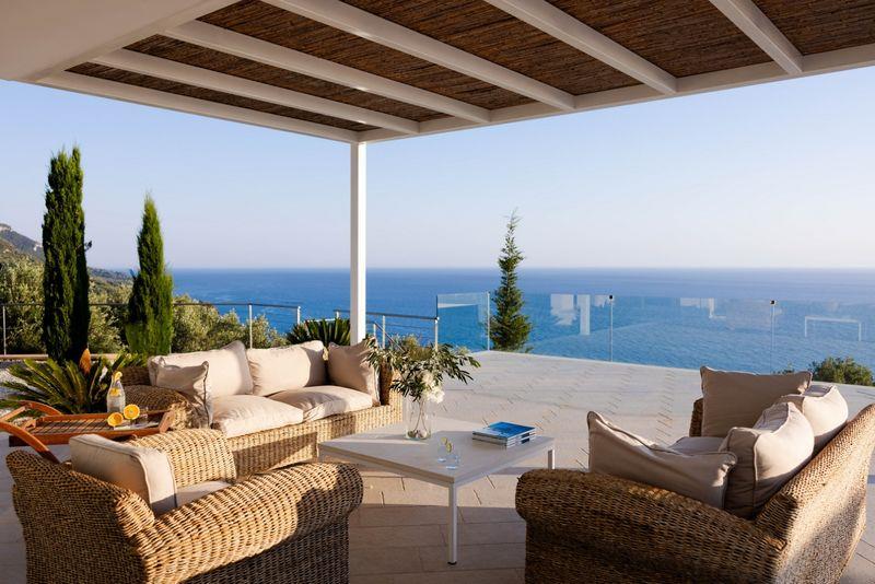 An elegant, newly- built 3-bedroom villa with a stunning infinity pool, all offering spectacular views of the sea and west coastline of Corfu.