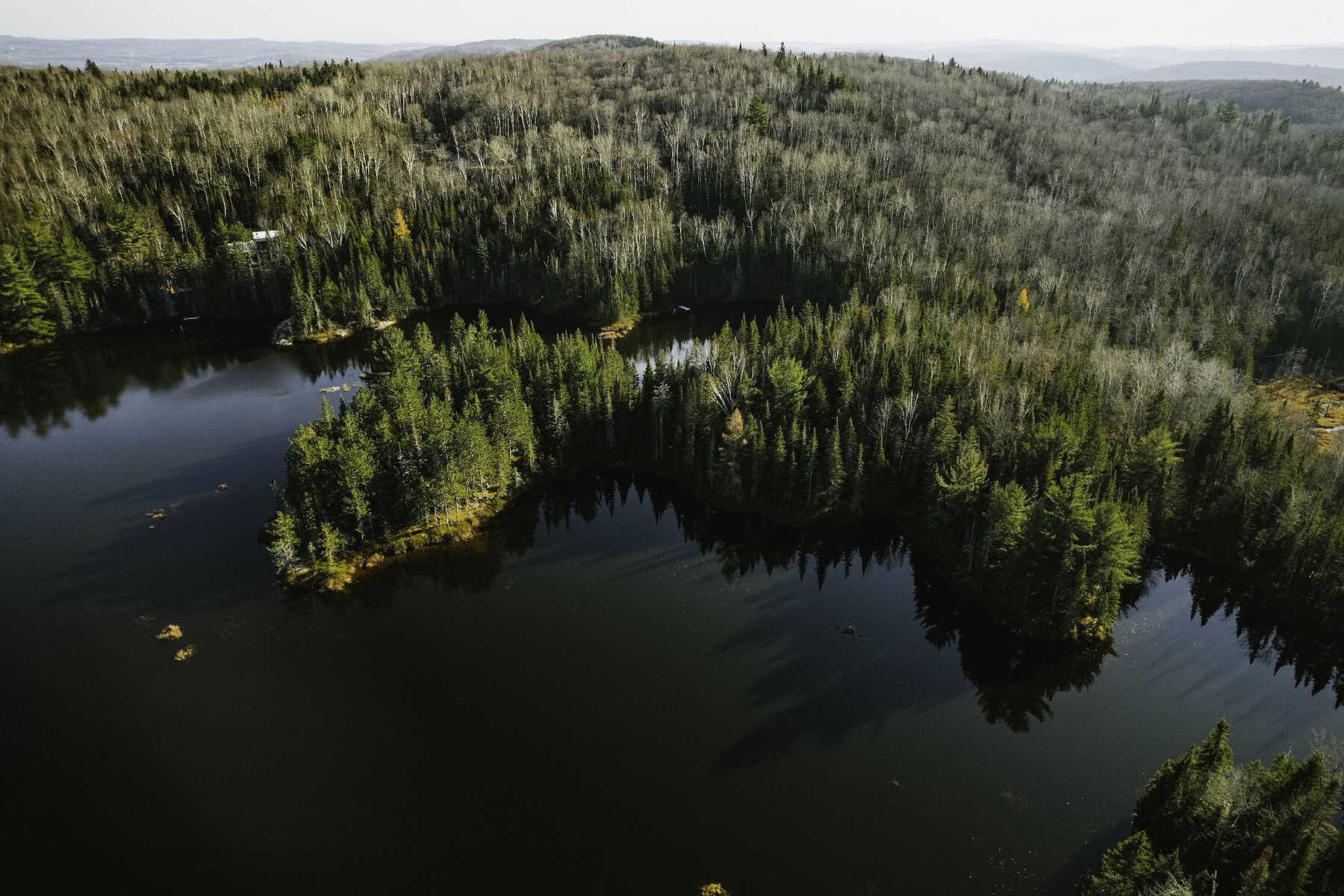 Peninsula Estate. An exceptional private estate of approximately 1,000,000 sq ft located in the prestigious Domaine Ad Astra in Sainte-Béatrix, featuring your own private peninsula on the shores of a natural lake. This expansive property offers the possibility of building up to 5 residences, including 2 directly on the lakefront, ideal for an intergenerational family or a group of friends wishing to share a unique place surrounded by nature. Peaceful and controlled environment, private access to the lake and a beach, walking trails, absolute tranquility. A true paradise for creating and passing on a legacy.