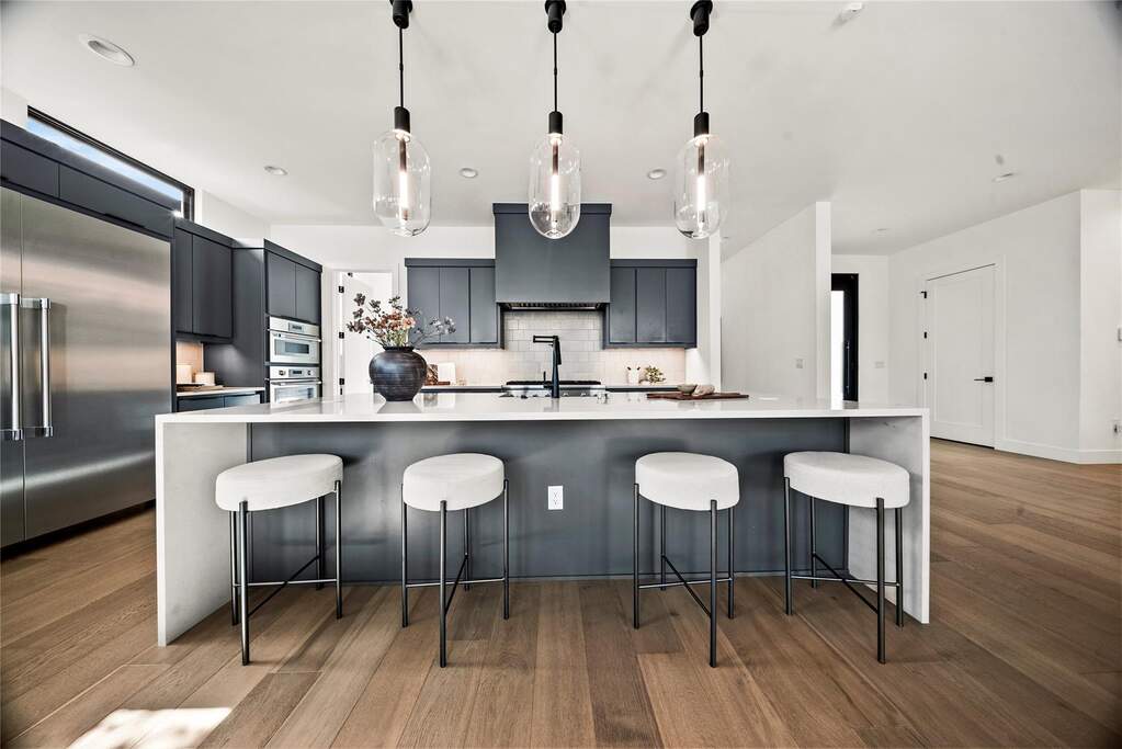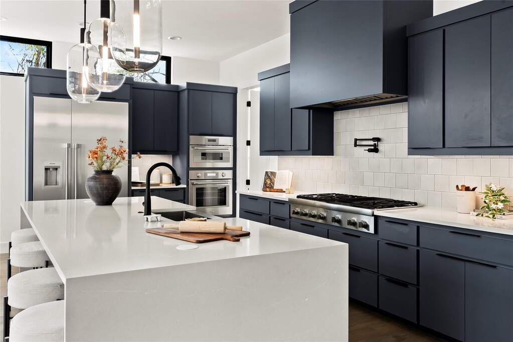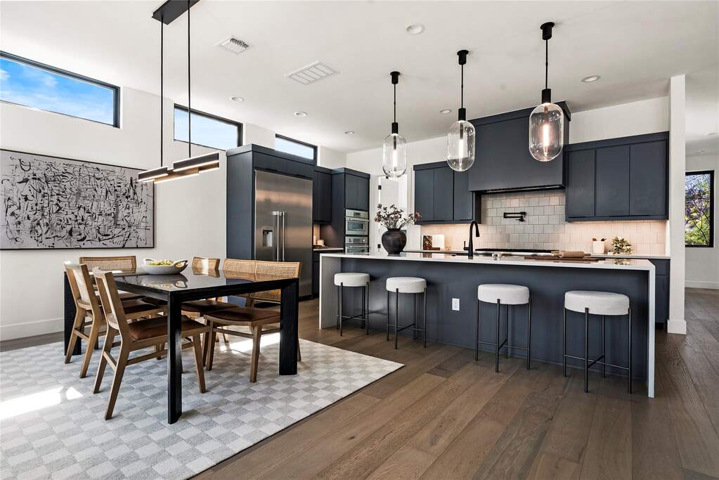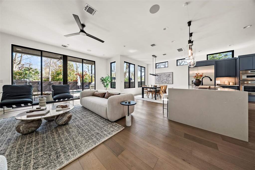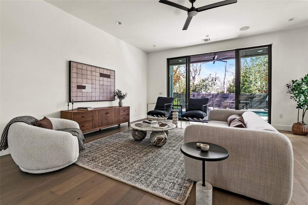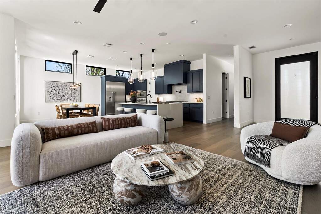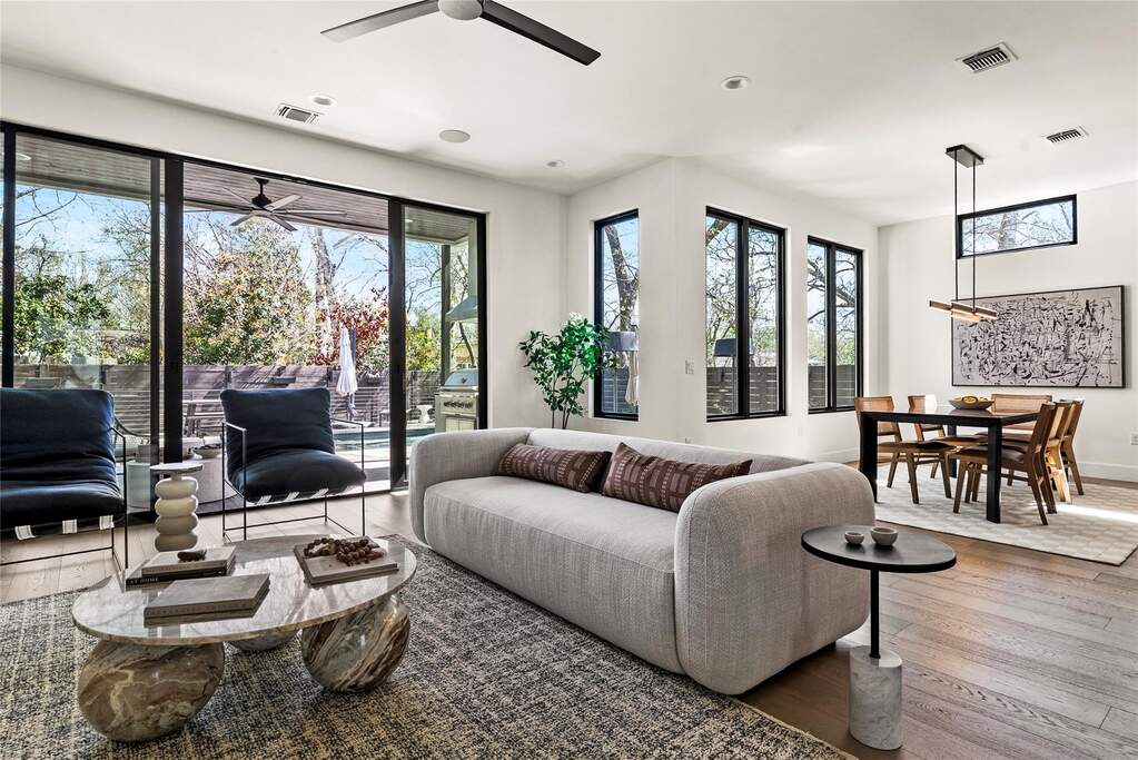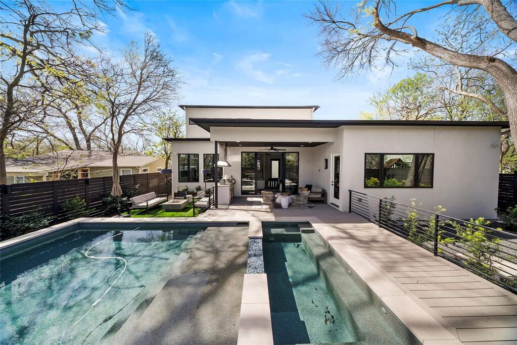 A balance of architecture and comfort defines this 2023 Paradisa custom home-beautifully updated and perfectly positioned in Crestview, one of Central Austin's most loved neighborhoods. Every space reflects intentional design, natural light, and effortless livability. An oversized pivot door leads to high ceilings and expansive glass overlooking the heated pool and spa. The open living, dining, and kitchen areas feel bright and connected, with clean lines warmed by wood tones and layered textures. The kitchen centers the main level with a waterfall-edge quartz island, Thermador appliances, custom cabinetry, designer lighting, and a large chef's pantry with wine storage. Downstairs offers a dedicated office or guest room with a full bath, ideal for work, visitors, or multigenerational living. The private primary suite includes direct pool access and a spa-inspired bath with a soaking tub, frameless glass shower, and dual vanities. Upstairs, a flexible loft connects two bedrooms and a full bath. Outdoor living has been elevated for year-round enjoyment with fully enclosed decking, a built-in kitchen, fire pit, overhead heaters, and low-maintenance turf and hardscaping-true lock-and-leave living. Quality upgrades include high-efficiency HVAC with Aprilaire fresh air intake, foam insulation, tankless water heating, Cat6 wiring, surround sound, security cameras, and smart home automation. Moments from Little Deli, Brentwood Social House, Violet Crown Wine Bar, Fresh Plus, H-E-B, and minutes to Downtown Austin or UT, this home captures the best of modern Central Austin living.