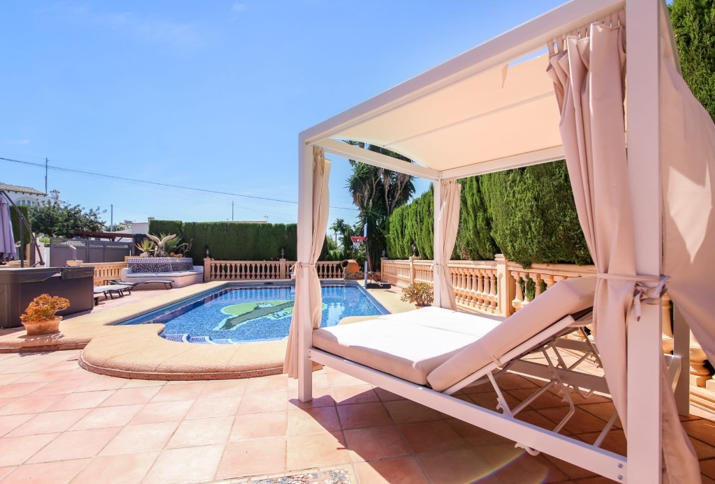 Welcome to this impressive 5-bedroom villa located in a highly desirable residential area of Calpe, where comfort, space, and Mediterranean lifestyle come together perfectly. Ideally positioned within walking distance of the beach, supermarkets, and the town centre, this property offers a rare combination of convenience, privacy, and open views, making it an excellent choice for permanent living, a luxurious holiday home, or a high-yield rental investment on the Costa Blanca.Designed for relaxed yet practical living, the villa is distributed over two levels and offers generous interior and exterior spaces that adapt effortlessly to family life and entertaining. One of the standout features is the presence of two fully equipped kitchens. The ground-floor kitchen opens directly onto the pool terrace, creating a seamless indoor-outdoor flow that is ideal for summer days, family gatherings, and social occasions. The first-floor kitchen provides access to a balcony with beautiful sea views, offering the perfect setting for enjoying breakfast or sunset drinks while overlooking the Mediterranean.The property features five well-proportioned bedrooms, including a spacious master suite with its own en-suite bathroom, ensuring privacy and comfort. The layout allows family members and guests to enjoy their own space while still sharing inviting communal areas filled with natural light.Outside, the villa truly comes into its own. A private saltwater swimming pool is complemented by a hot tub, pool bar, and BBQ area, creating a resort-style atmosphere in your own home. The low-maintenance Mediterranean garden allows you to enjoy the outdoors without extensive upkeep, making it ideal for both full-time living and holiday use. Whether relaxing by the pool, hosting friends, or enjoying long sunny afternoons, this villa is designed to embrace the Costa Blanca lifestyle.The location further enhances its appeal. The property is just 1.5 km from Playa de la Fossa-Levante, one of Calpe’s most popular beaches, known for its golden sand, promenade, and wide selection of restaurants and cafés. The iconic Peñón de Ifach Natural Park is also nearby, offering scenic hiking routes and breathtaking coastal views. Calpe itself is renowned for its vibrant yet relaxed atmosphere, excellent services, international community, and year-round sunshine.This villa represents a fantastic opportunity to enjoy a high-quality Mediterranean lifestyle in one of Costa Blanca’s most established towns. A viewing is highly recommended to fully appreciate the space, versatility, and exceptional location of this property.For more information or to arrange a private viewing, contact Berkshire Hathaway HomeServices Costa Blanca today and let our team help you find your perfect home by the sea.