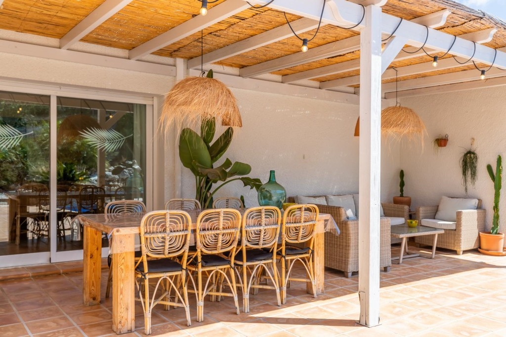 Detached villa with 10 m pool in PedreguerThis villa is sold with all furniture included in the price, ready to move into without the need for additional investment.In a quiet area of Pedreguer is this detached house on an urban plot of 1,000 m², offering privacy and spaciousness in a privileged environment.The house, with a constructed area of 154.67 m² (130.50 m² usable), is distributed as follows:•Main house (on one floor): porch, spacious living-dining room, independent kitchen, distributor, three bedrooms and two complete bathrooms. On this same floor are also located the private pool of 5x10 meters, the barbecue area, as well as a toilet and outdoor shower, designed to fully enjoy the Mediterranean climate.•Ground floor: closed garage and studio (the studio is not connected to the house).The interior is equipped with air conditioning/heating in all three bedrooms and in the living room, ensuring comfort throughout the year.The plot has closed parking with automatic door for one car and uncovered space for several vehicles. Being a detached, isolated and independent house, it does not share common areas with any other house in the urbanization, which ensures total privacy and tranquility.A property ready to move into, perfect as a permanent residence or as a second home to enjoy the Mediterranean lifestyle on the Costa Blanca.