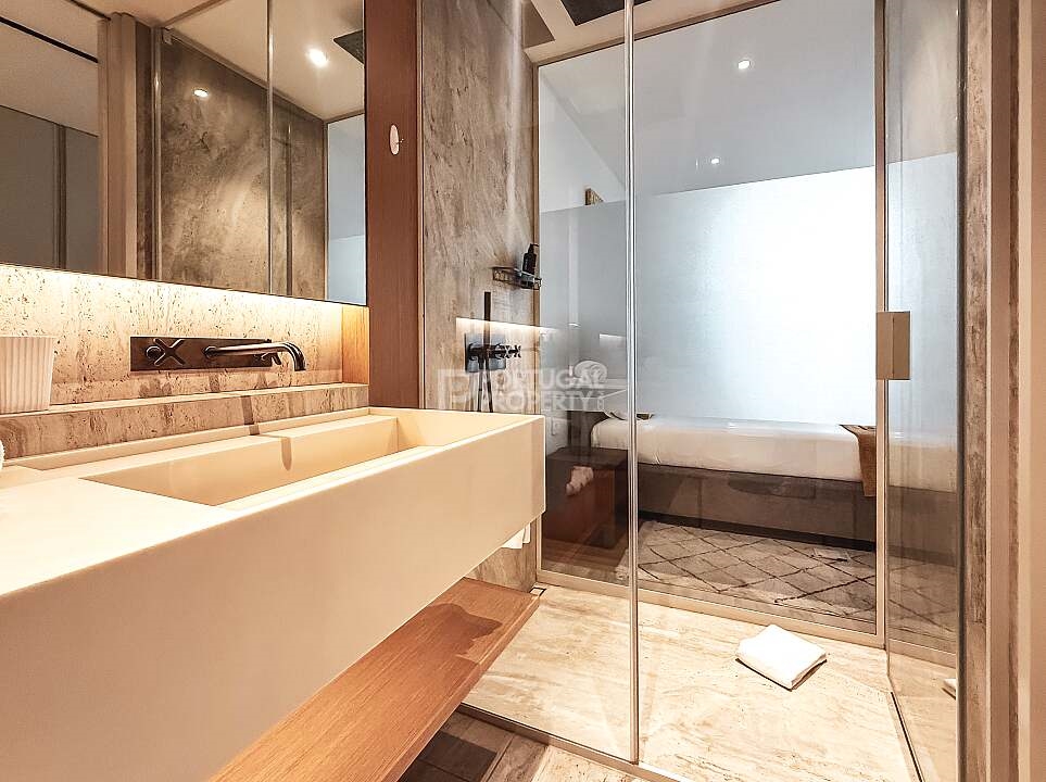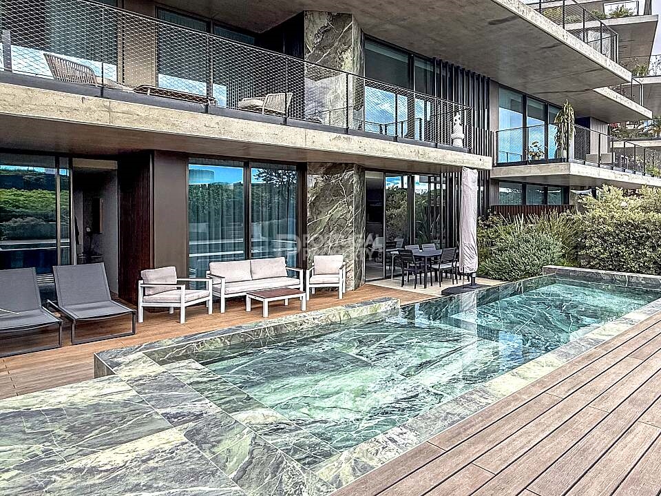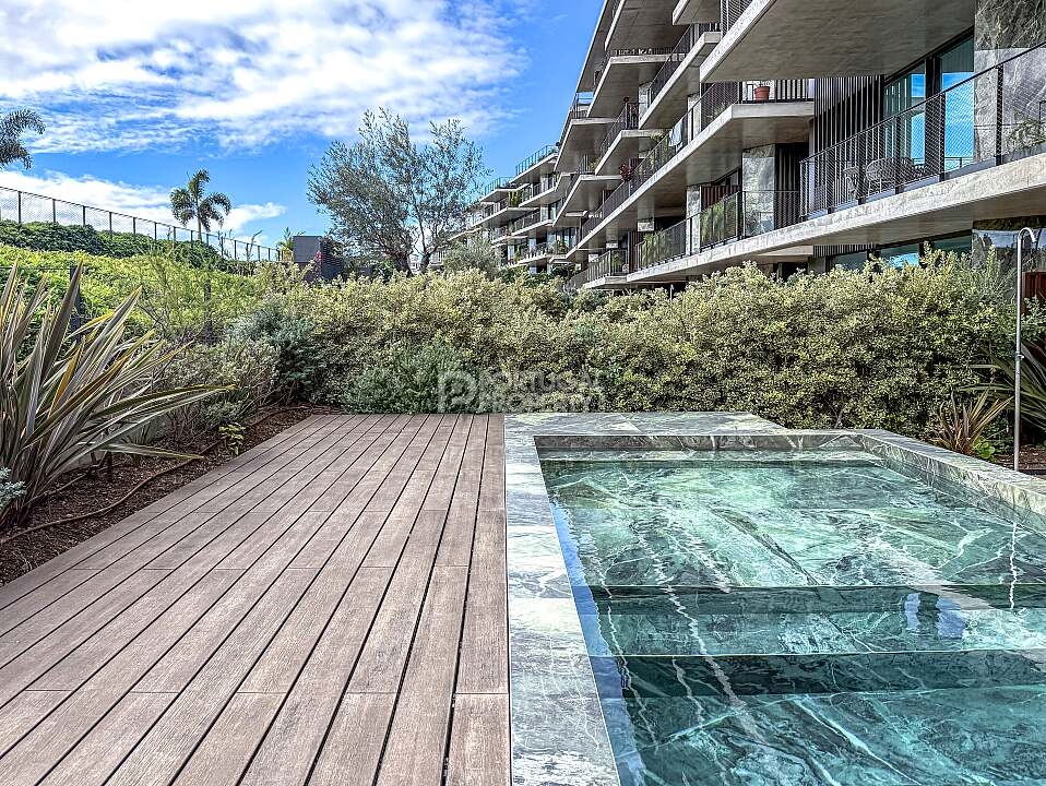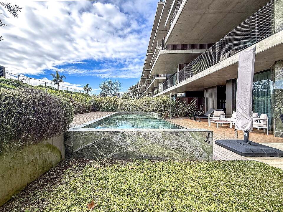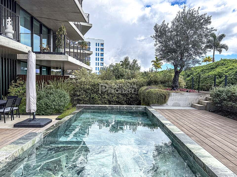 Located in the prestigious Monumentalis development, built by the renowned AFA Real Estate, this exclusive two-bedroom apartment (T2) is situated in Funchal, within one of Madeira’s most sought-after and upscale residential areas.The apartment stands out for its excellent layout and seamless indoor–outdoor living. It features two en-suite bedrooms, ensuring comfort and privacy, as well as a guest bathroom. The open-plan kitchen flows naturally into the living area, creating a contemporary, functional and welcoming space, ideal for both everyday living and entertaining.Outside, the property offers a spacious terrace with a private swimming pool, providing a true private retreat for leisure and relaxation. Elegant steps lead directly to the communal areas and the shared swimming pool, allowing residents to enjoy the resort-style amenities while maintaining a high level of privacy.The apartment is located in a particularly privileged and sheltered area of the development, protected from wind and exceptionally quiet, offering a peaceful atmosphere away from road noise.The Monumentalis development provides a range of high-end facilities, including a communal swimming pool, a fully equipped gym, and a 24-hour concierge service, ensuring comfort, security and exclusivity.One of the key highlights of this property is its active Local Accommodation (AL) license, a highly valuable and increasingly rare asset, especially as new AL licenses for apartments are no longer being granted. This makes the apartment exceptionally attractive both as a primary residence and as a secure investment.The apartment is sold fully furnished, with quality furniture, ready for immediate occupancy or rental.Additionally, the property includes two private closed garages, each with space for two vehicles, as well as a storage room, a rare and highly desirable feature.A unique opportunity to live or invest with sophistication, comfort and discretion in one of Funchal’s most exclusive developments.