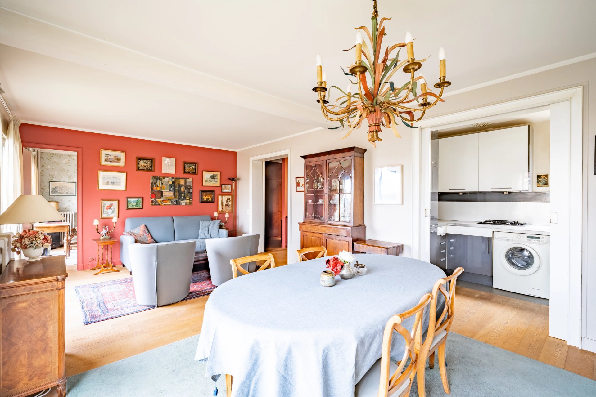 This apartment on the fifth floor of a mid 20th century residence offers 75.64 sqm of living space as defined by the Carrez Law. Renovated by an interior decorator and benefiting from an optimised floor plan with no wasted space, it includes an entry with a cloakroom, a spacious living/reception room, a dual-aspect kitchen, two bedrooms, and two shower room/wc.