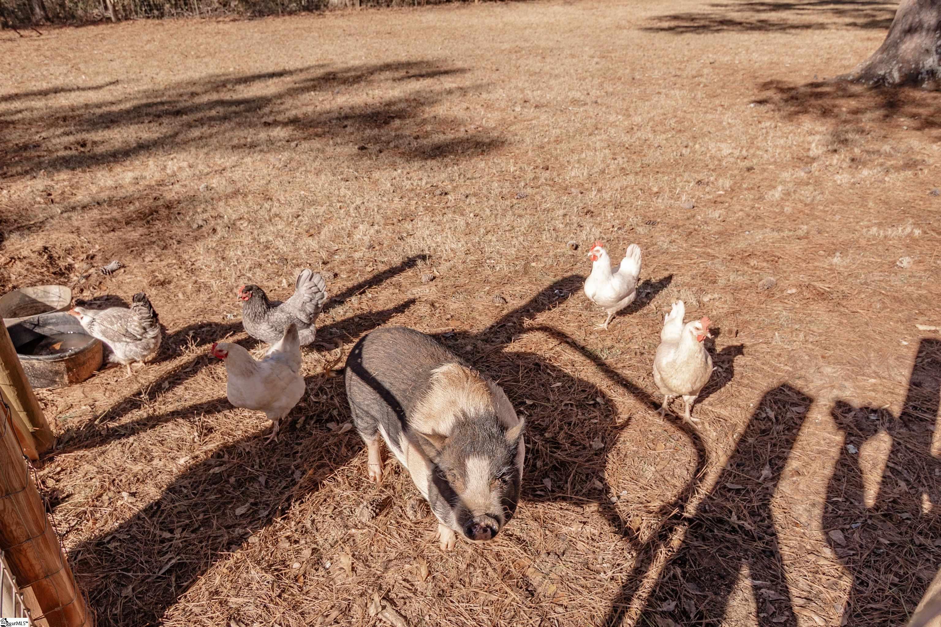 Rare turnkey Mini-Farm on 3.39 picturesque acres! This charming country retreat at 101 Callaham Drive is a gardener's dream, featuring mature live oaks, scuppernong vines, and established blueberry and blackberry bushes. The grounds are thoughtfully designed for self-sufficiency with raised garden beds, perennial asparagus, green onions, and various herbs. Livestock-ready with a fully fenced pasture and multiple outbuildings; current farm animals (chickens/pig) may even convey! The property boasts an exceptional water supply via a deep well. The barn/workshop is powered by heavy-duty 230V underground service. Relax on the large covered rocking-chair porch or enjoy the cozy interior featuring a black walnut mantle and wood-burning fireplace insert. Significant updates include Seamless gutters last year, new windows throughout the whole home, and updated quartz counters in the kitchen and baths - as well as an HVAC (approx 10 years) and Roof (approx 6 years). Includes an unfinished walk-out basement for ample storage. A truly sustainable lifestyle opportunity!