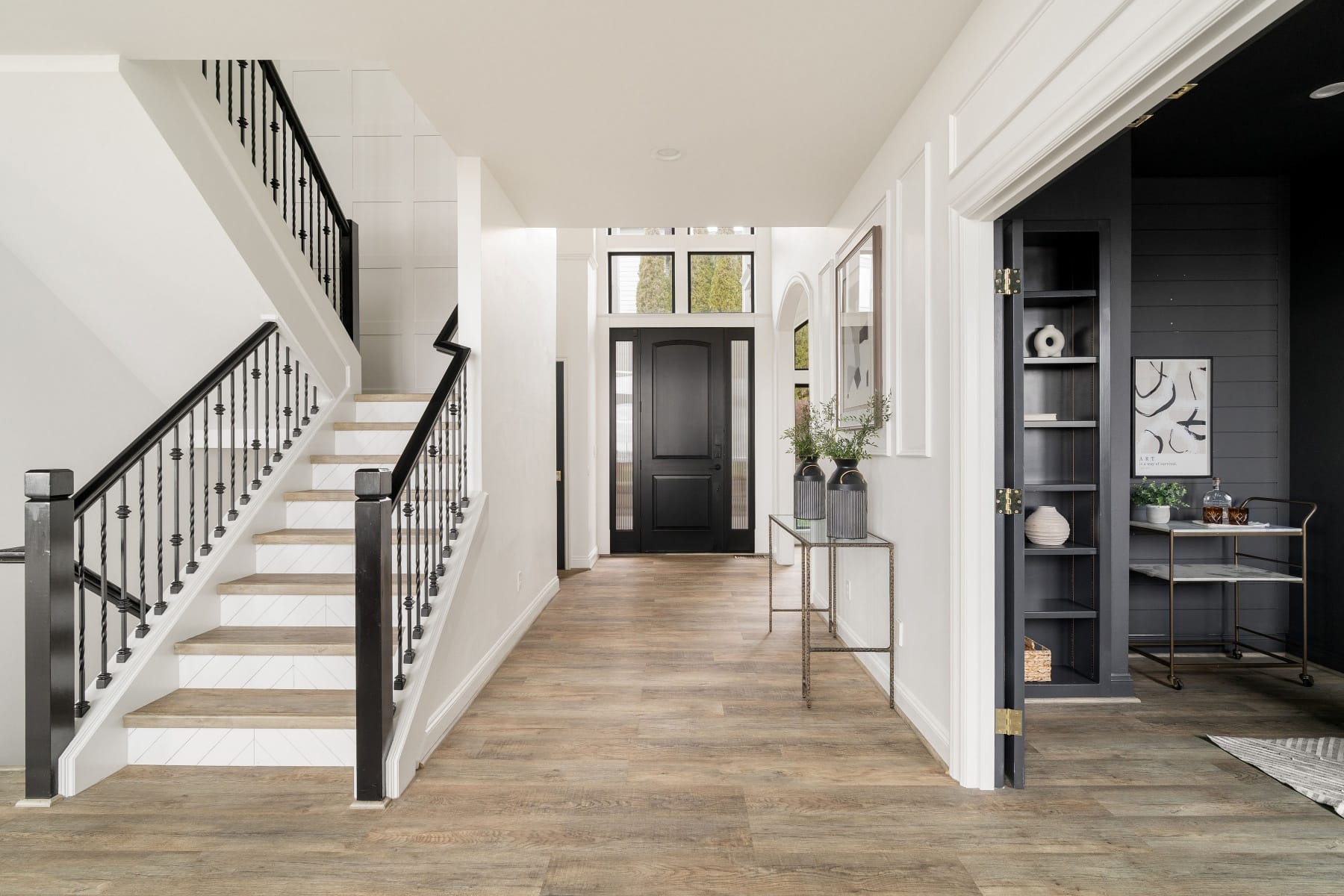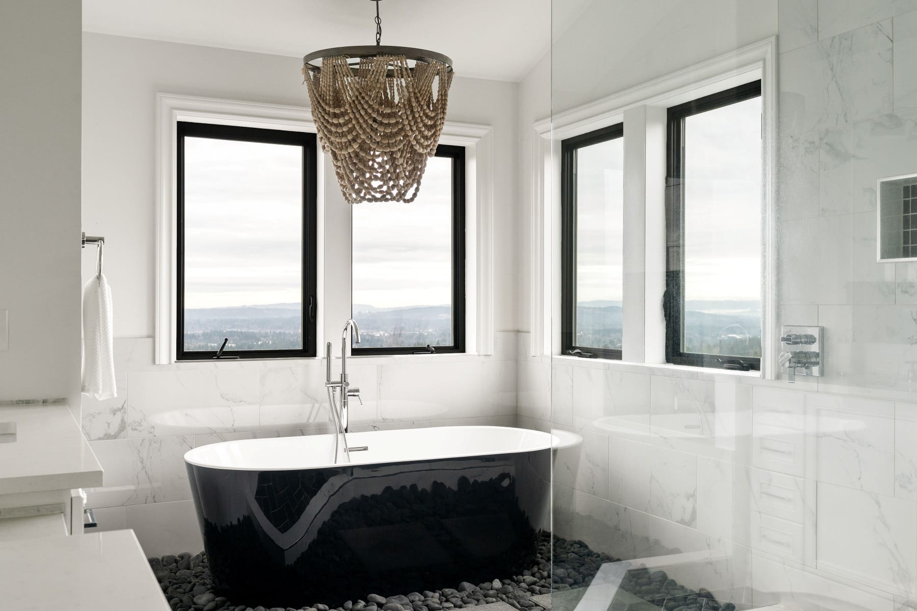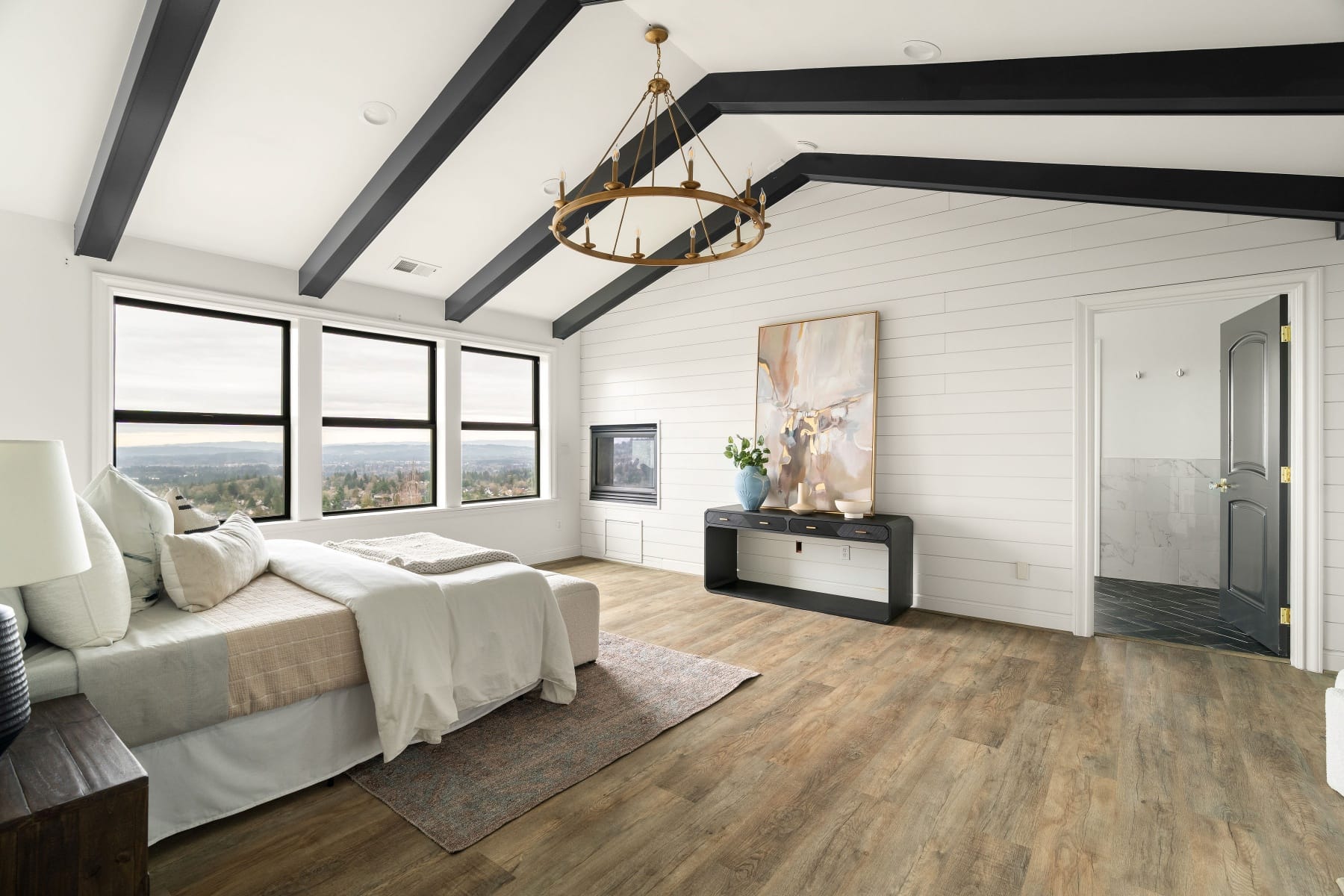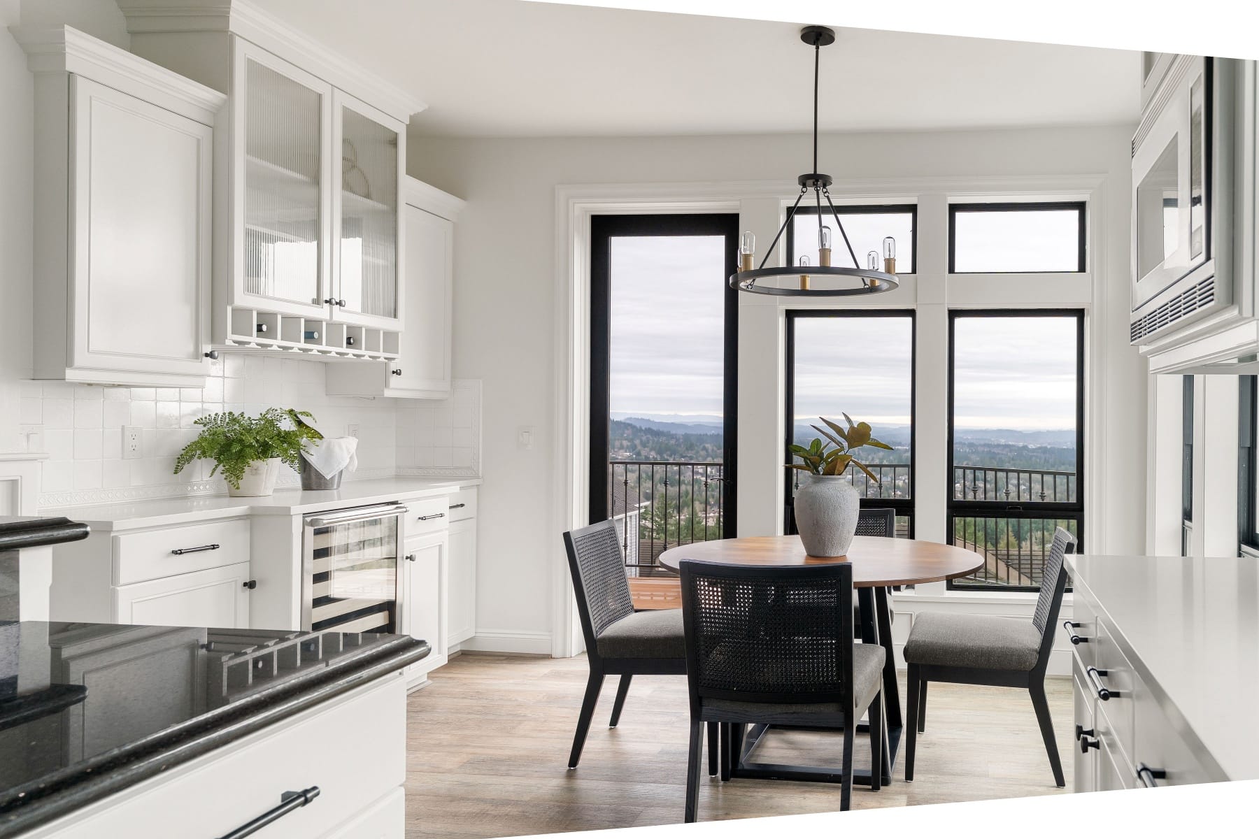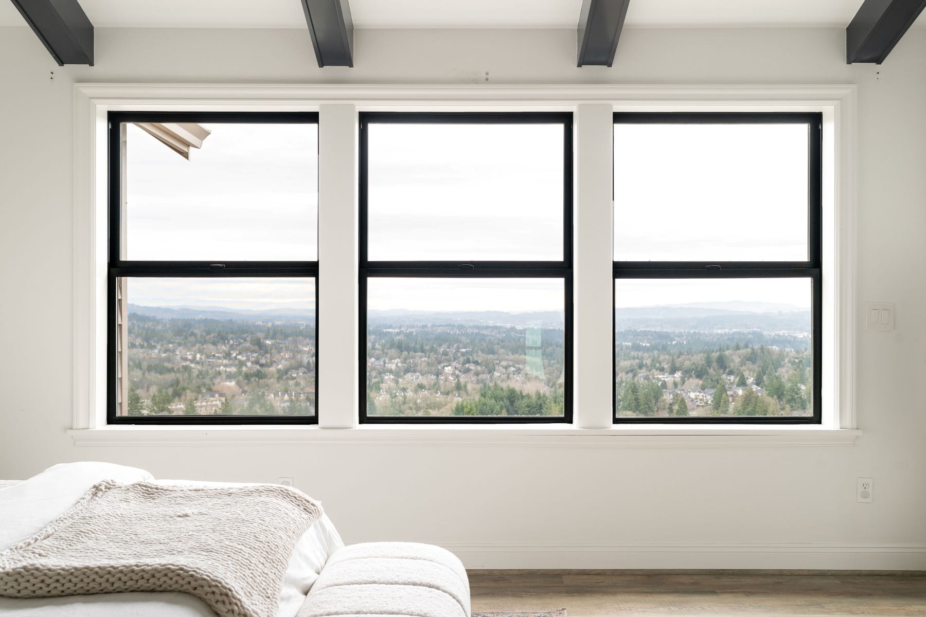 Privately positioned on a rare two-home cul-de-sac, this Alder Ridge residence pairs sweeping valley views with elevated design and a remarkable sense of quiet. A welcoming courtyard with a tranquil water feature creates a memorable arrival, while the grand entry opens to soaring cathedral ceilings, black-trimmed windows, and light-filled interiors, where views extend from nearly every room. Thoughtful custom details, including wainscoting, shiplap accents, and curated designer lighting, add texture and warmth throughout. Living spaces include an elegant sitting room, a dramatic great room framed by expansive picture windows, and a color-drenched, moody office that offers a striking yet refined workspace. The gourmet kitchen blends form and function with professional-grade appliances, quartz surfaces, farmhouse and prep sinks, and a built-in wine and coffee station, ideal for everyday living and entertaining. Seamless access to multiple decks enhances indoor-outdoor flow and maximizes the surrounding vistas. Upstairs, the vaulted primary suite features exposed beams, a double-sided fireplace, captivating views, and a spa-inspired bath with a soaking tub. The lower level expands the home's versatility with a spacious family room, theater, wine cellar, sauna, billiards room with wet bar, and guest quarters with private deck access and a separate entrance. Secondary laundry hook-ups and custom closets add additional convenience. Tiered decks overlook a level landscaped yard with pathways and a firepit gathering space. Moments from Forest Park trailheads, Nike, Intel, St. Vincent's, NW 23rd Avenue, and Downtown Portland, NW 23rd Avenue, and Downtown Portland. Home Energy Score = 1. HES Report at https://rpt.greenbuildingregistry.com/hes/OR10244054