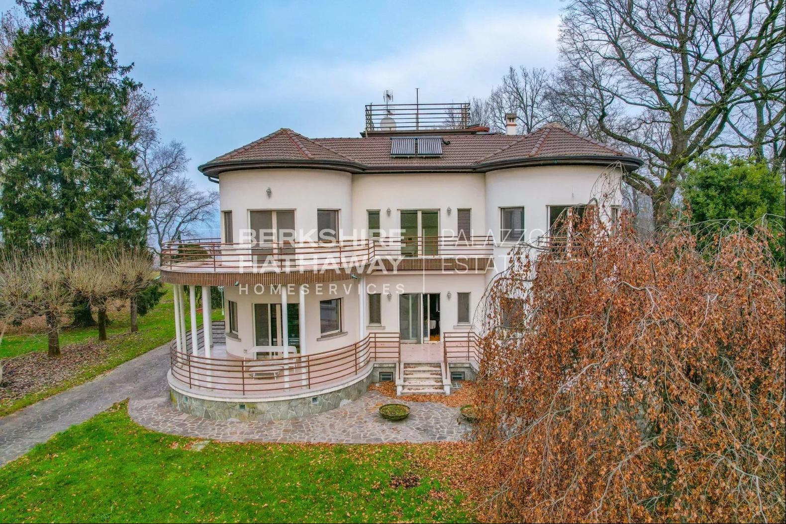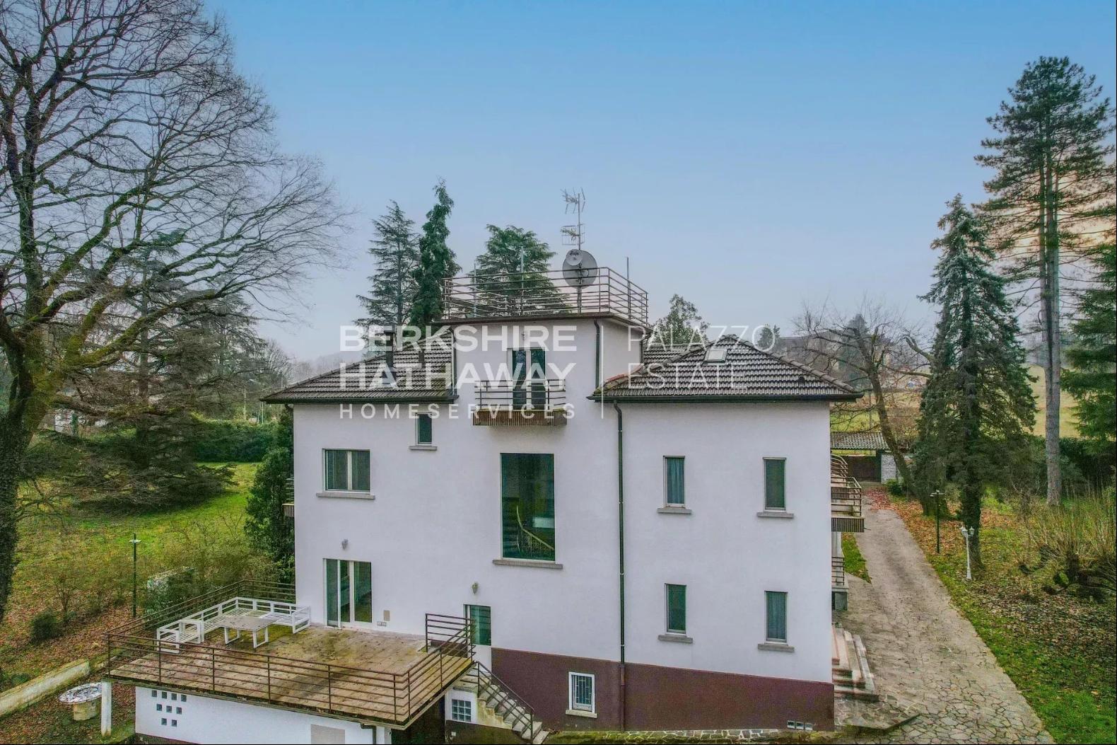 A villa originally built in the 1940s and fully renovated in 2016, arranged over several levels and surrounded by a private park of approximately 18,000 square metres, featuring an internal lift and automated garage, is offered for sale in Cazzago Brabbia directly on the shores of Lake Varese.The property enjoys a rare natural setting, surrounded by greenery and complete privacy ensured by the extensive parkland with mature trees and generous outdoor areas, while remaining conveniently connected to Varese and the main local services. It is therefore perfectly suited both as a primary residence and as a leisure home.The building preserves the charm of its original architecture, enhanced by a careful renovation that introduced modern comfort and updated systems without altering the villa’s historical character. The entrance leads to a spacious triple living room, made particularly harmonious by its rounded walls and opening onto a large covered porch overlooking the garden. The separate kitchen has direct access to a spacious terrace, while the dining room, illuminated by large windows facing the park, completes the living area together with a hallway and a guest bathroom. The interiors are enriched by oak parquet flooring and valuable details, including 18th-century solid wood doors.All floors are connected by a striking central granite staircase with wrought-iron railing, alongside a convenient lift serving every level. The first floor hosts the sleeping area, including two master bedrooms, each with an en-suite bathroom, one of which is designed as a large bathroom suite; one bedroom also opens onto a large panoramic terrace. A further bedroom and an additional bathroom are located on the same floor.The attic floor offers a bright and versatile space suitable as a relaxation area, study or guest accommodation, complete with a bathroom with shower and pleasant open views of the surrounding landscape. The basement level includes a tavern room, a service kitchen, a bathroom with laundry area, and four additional rooms suitable for staff, guests or various functional uses, in addition to the automated garage.The 2016 renovation involved both systems and finishes, bringing the residence to modern living standards while preserving valuable historic features such as the original Palladian flooring in the entrance hall. The kitchen is further enhanced by a traditional Val di Sole ceramic stove and a wrought-iron door, details that contribute to the unique character of the home.This property represents an ideal solution for those wishing to enjoy Lake Varese in an exclusive environment, offering generous indoor and outdoor spaces suitable for family living and entertaining, combining privacy, comfort and architectural quality in a residence of great charm.Disclaimer: The information is purely indicative and is in no way attributable to a contractual obligation. All data is subject to verification before starting any form of compromise.