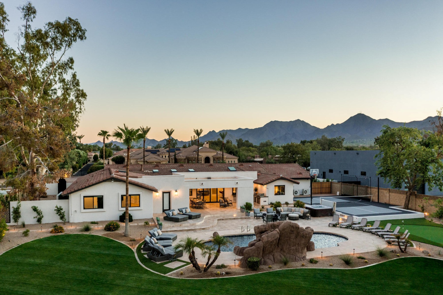 Rare no-HOA Scottsdale estate, fully rebuilt from the studs in 2023, offering the quality of new construction within a private, sought-after enclave. Designed for resort-caliber living, the home showcases expansive open spaces, bespoke finishes, a private cinema, and dedicated fitness studio. The primary suite is a spa-inspired retreat with a secluded outdoor shower. Lush grounds feature a pool and spa, manicured lawns, fruit trees, new sports court, putting green, and outdoor kitchen. A turnkey luxury compound just minutes from Scottsdale's premier dining and shopping.