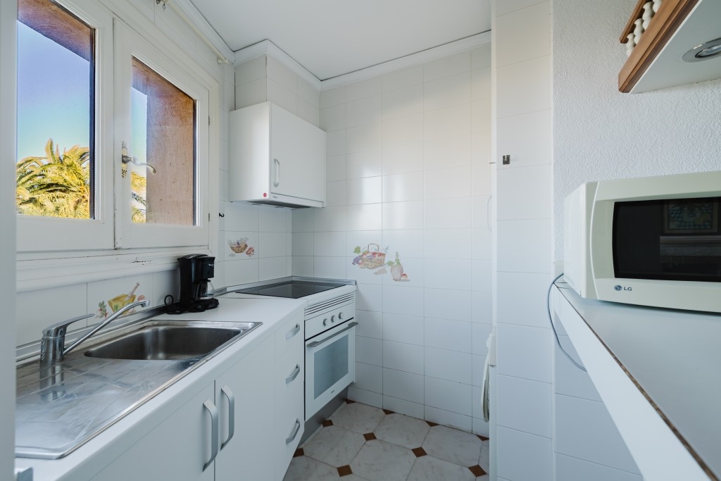 Flat in Les Marines, Dénia - Light, spaciousness and Mediterranean style only a few metres from the beach Les BovetesDiscover this spacious and bright 2-bedroom flat located in the sought-after area of Les Marines, in Dénia, just 80 metres from the renowned Les Bovetes beach. Located at km 2 of Las Marinas, this enclave combines the tranquillity of the residential environment with the proximity to the sea and all the necessary services to enjoy a comfortable and relaxed lifestyle all year round.The property, located on a first floor with a lift, offers 63 m² perfectly distributed to provide spaciousness and functionality. From the moment one enters the entrance hall, one perceives the brightness that characterises the entire property. The independent kitchen, fully equipped, invites you to prepare from family breakfasts before going down to the beach to special dinners with friends after a day of sun and sea. The spacious living room with fireplace creates a cosy atmosphere in the cooler months, while the dining room, with direct access to the large terrace, becomes the social heart of the home.Imagine starting the day with a coffee on the terrace, feeling the sea breeze and the mild Mediterranean climate, or enjoying long summer evenings sharing laughter and conversation outdoors. This outdoor space is ideal for creating a chill-out area or a summer dining room where every gathering becomes an unforgettable memory.The two bedrooms have built-in wardrobes, offering comfort and excellent storage capacity. They are spaces designed for relaxation, where the natural light and the tranquillity of the surroundings favour a restful sleep after days at the beach or outdoor activities. The flat also has split air conditioning with heat pump, guaranteeing comfort in any season of the year.The development stands out for its well-kept and spacious garden area, perfect for strolling, relaxing or for the little ones to play safely. The communal swimming pool for adults and the children's pool, also adapted for people with reduced mobility, make the complex an inclusive and family-friendly space where each member can enjoy at their own pace.Les Marines is one of the most valued areas of Dénia for its extensive beaches of fine sand and shallow waters, ideal for families. Les Bovetes beach is perfect for water sports such as paddle surfing, windsurfing, kayaking or beach volleyball. In addition, the proximity to restaurants, supermarkets and bus stops makes day-to-day life easier without the need to use the car. Living here means adopting an authentic Mediterranean lifestyle: mornings by the sea, afternoons strolling along the coast and local gastronomy based on fresh produce from the sea and the garden.This property represents an excellent opportunity whether as a permanent residence, second holiday home or investment in an area of high demand. The combination of privileged location, spaciousness, quality construction and well-kept surroundings make it a difficult option to match.We invite you to personally discover all that this flat in Les Marines has to offer. Contact Berkshire Hathaway HomeServices Costa Blanca and take the first step towards the Mediterranean life you have always dreamed of.