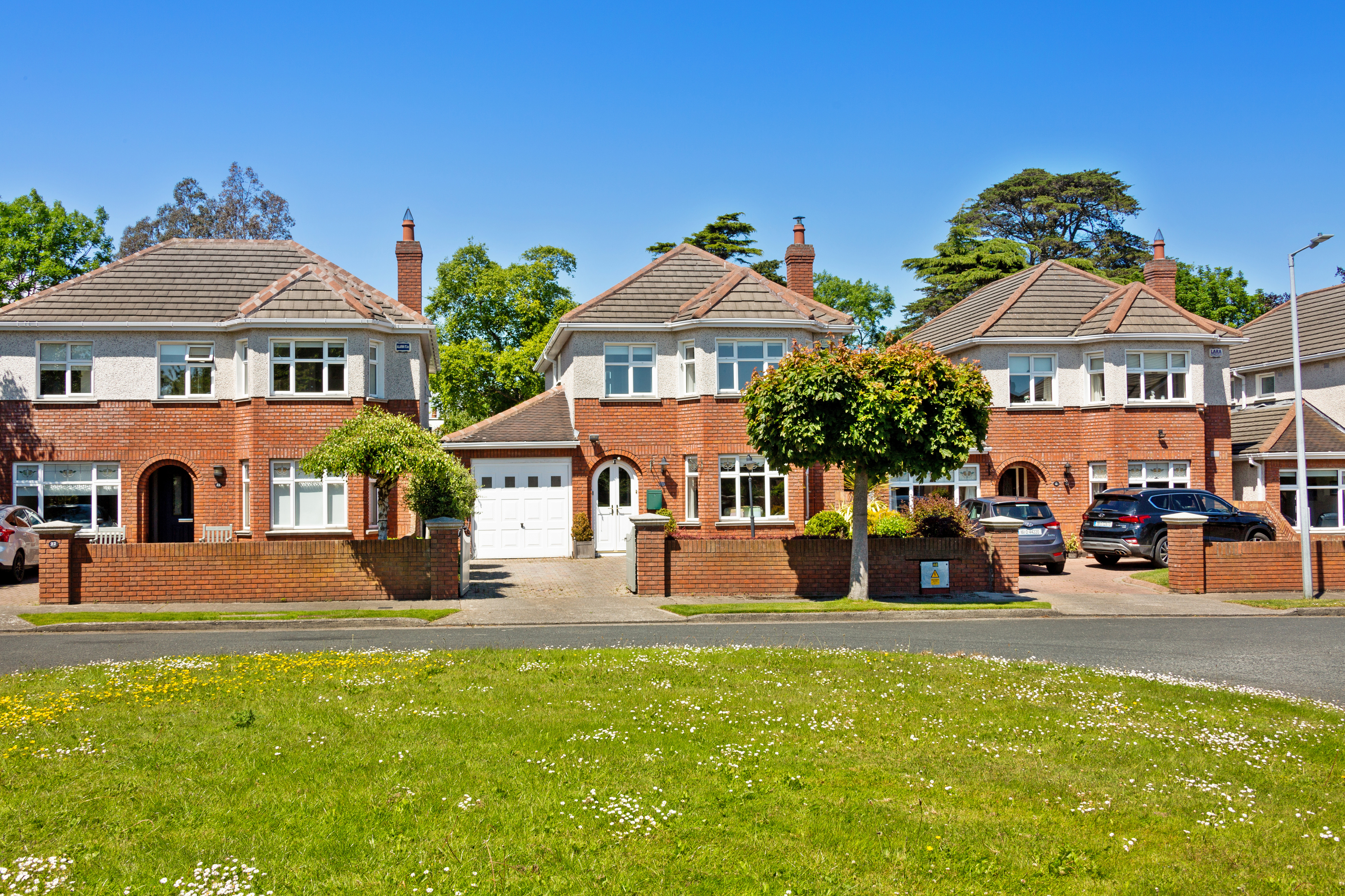 A very fine double-fronted detached family residence, superbly positioned within a quiet cul de sac overlooking an expansive green. The façade combines brickwork detailing with generous off-street parking, featuring an elegant cobble-lock driveway and a substantial side garage offering excellent scope for further enhancement or extension, subject to the relevant planning permissions.