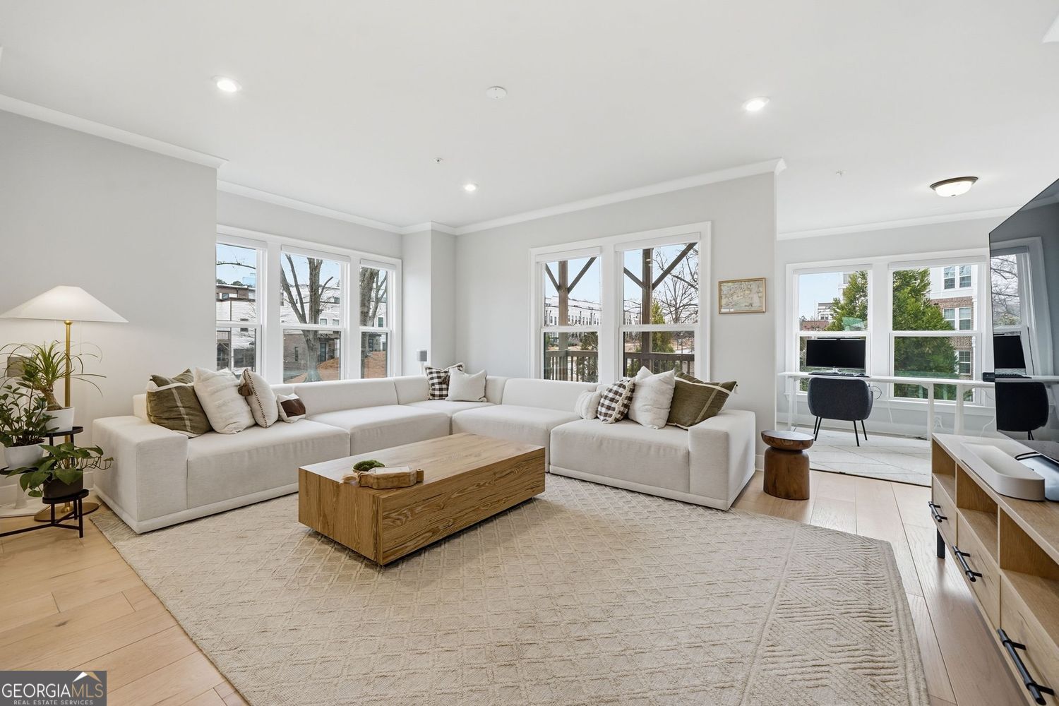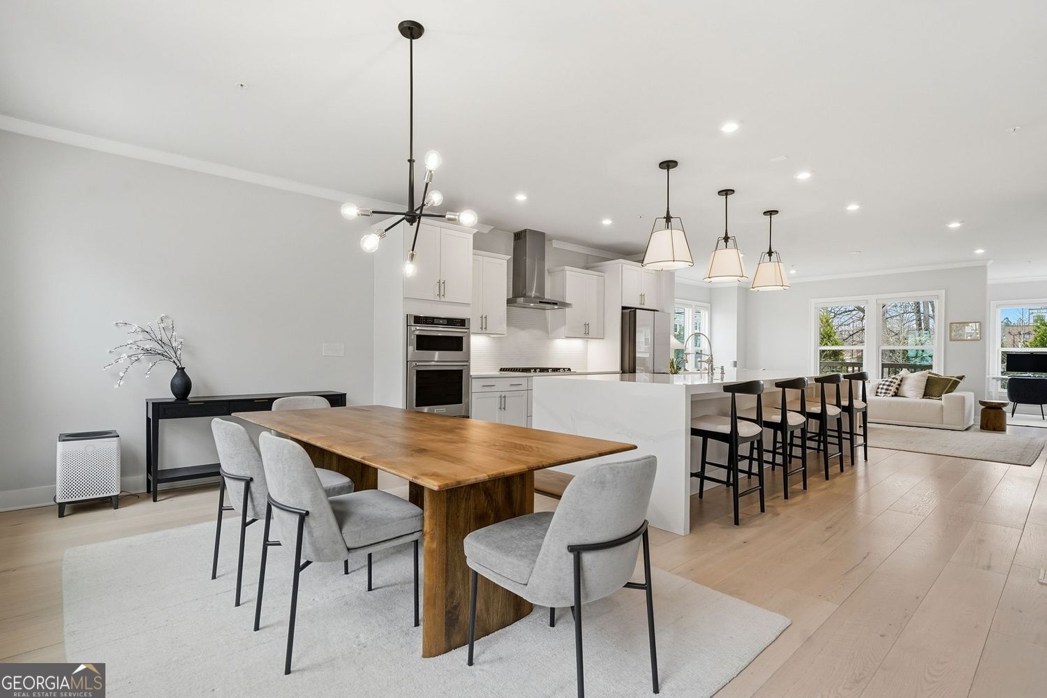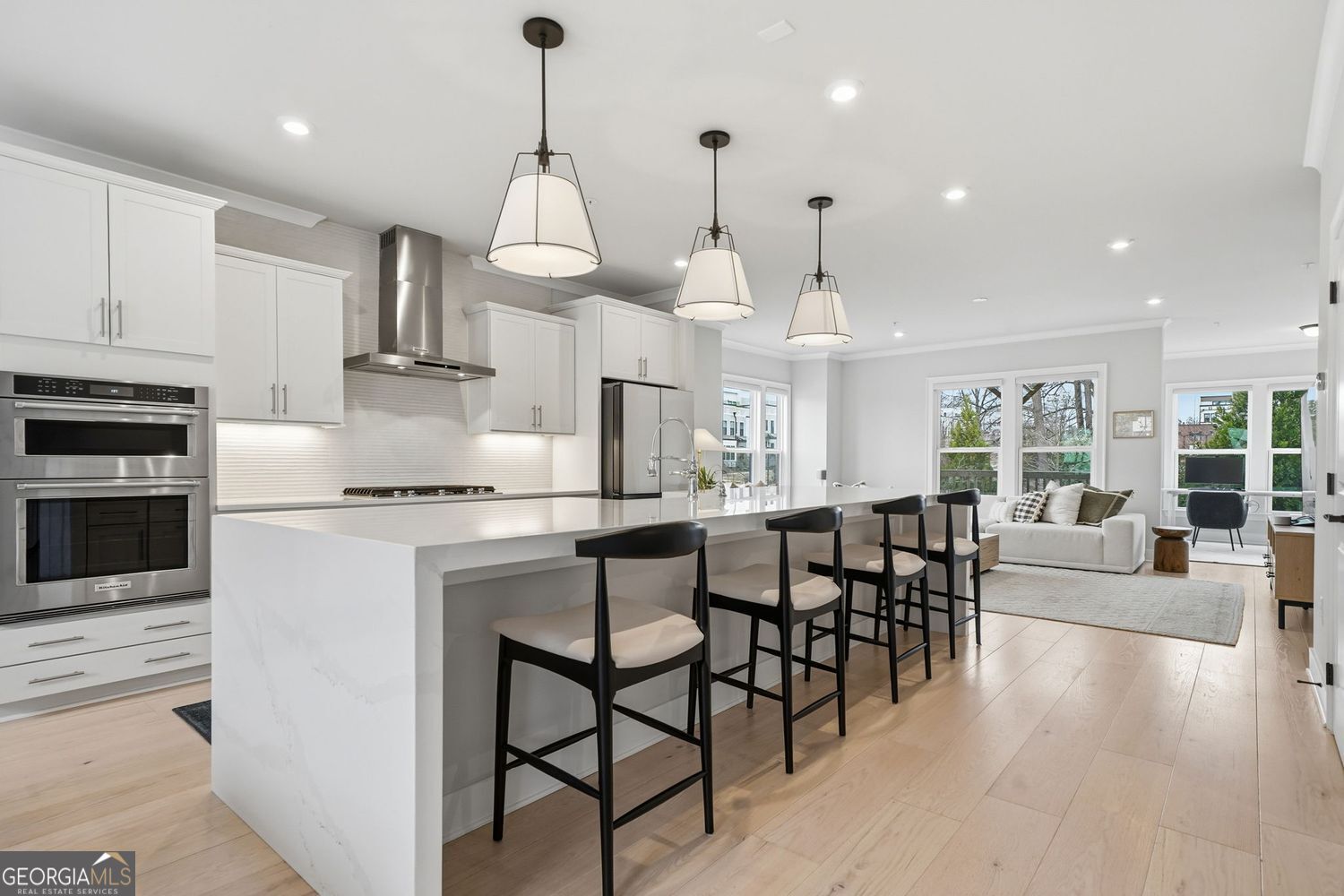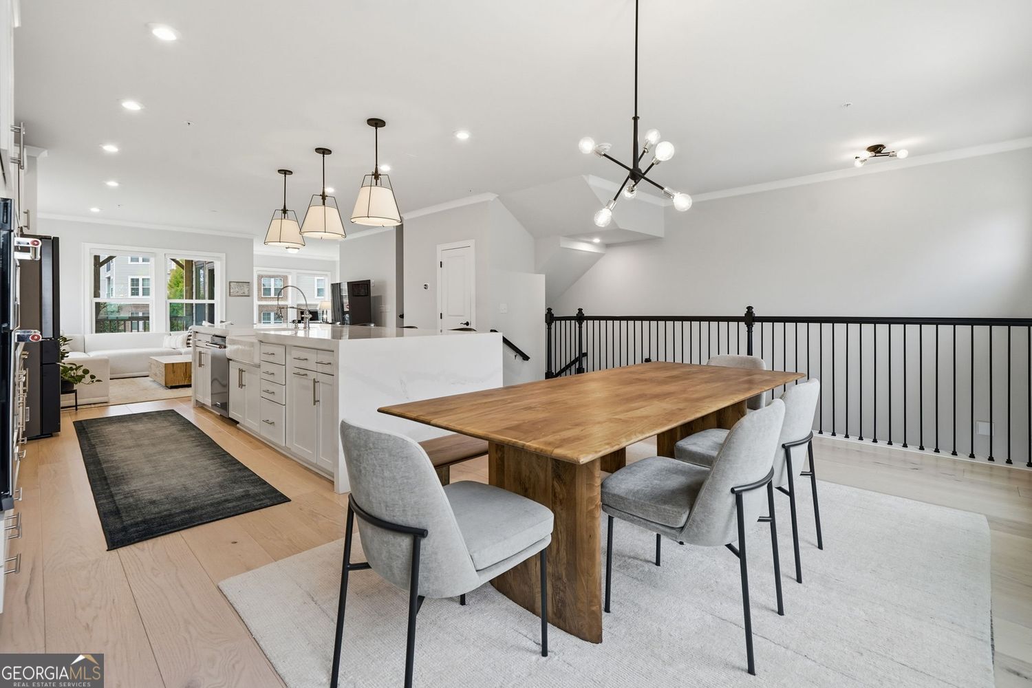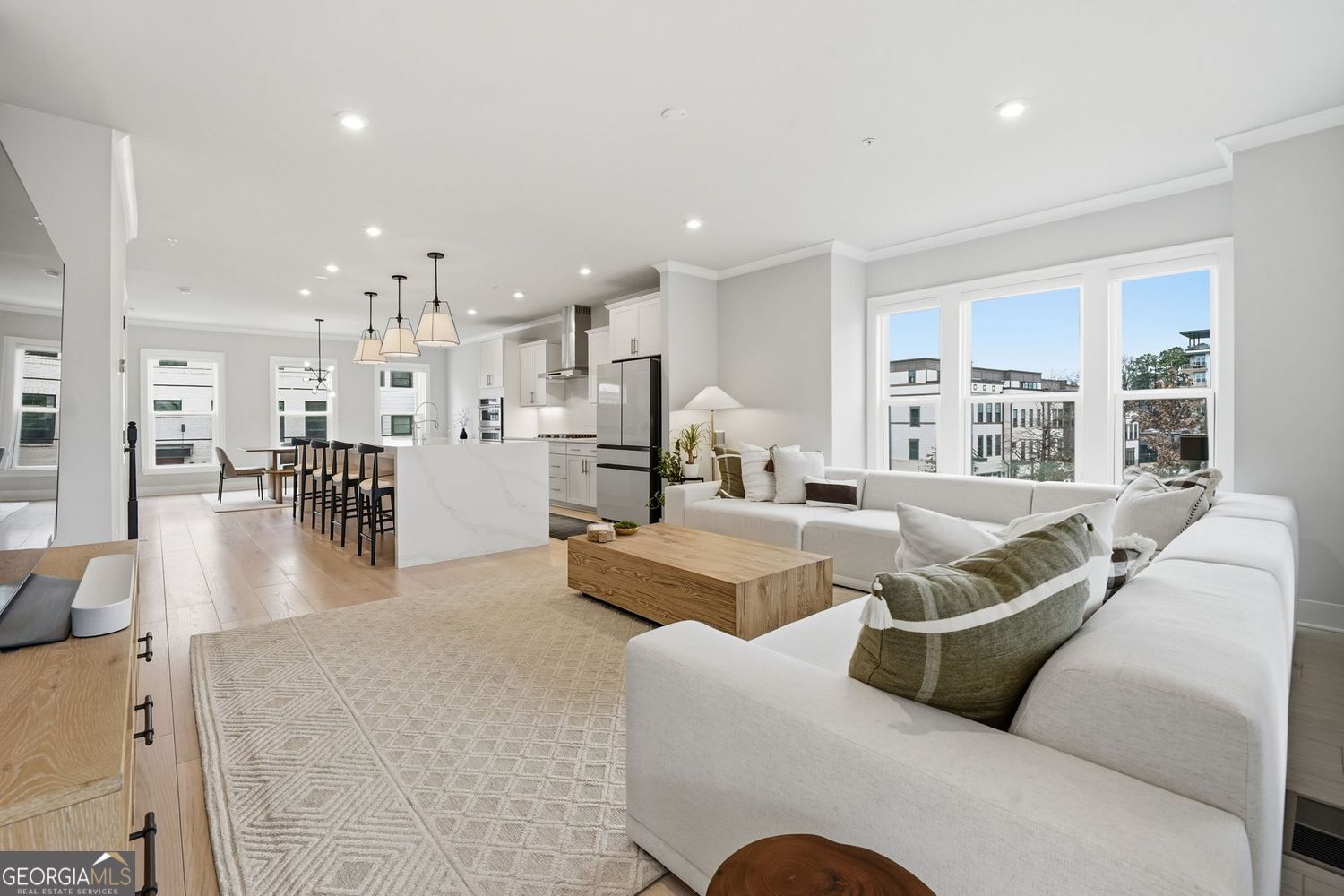 Located on Atlanta's most coveted Upper Westside, this true end unit residence with no adjacent building obstructing natural lighting or views offers all the upgrades available. Built in 2023 and in like-new condition, this light-filled, open concept unit is perfect for entertaining or relaxing. Upgraded LVP is found throughout the home. The chef's kitchen features a larger island with a custom waterfall with a premium, thicker quartz design. Other kitchen upgrades include the cabinets, backsplash, pendent lighting, under cabinet lighting and stainless steel appliance package. Unique to this unit on the main level including a bay window, the sunroom extension provides extra space for an office, sitting room or recreational area and allows for an additional deck. The painted, oak staircase leads to the oversized primary suite with tray ceilings and two walk-in closets with custom cabinets and shelving. The custom, rear home extension allows a custom deck off the bedroom and an oversized primary bath. Enjoy the spa-inspired shower with floor-to-ceiling porcelain tile. All of the bathrooms received the upgraded package. The top floor boasts a custom wet bar with a sink, countertops, cabinets and refrigerator for convenience. This special loft area also has a rooftop patio on both sides. Enjoy a partial view of the Atlanta skyline along with the neighboring privacy walls on all the decks and patios. Moving to the terrace level, find a full bath allowing the space to be a bedroom, or use it as an office, gym, or media room with a private patio. With a 2-car driveway and garage, parking is a breeze. Relax at the neighborhood pool or at the nearby Westside Park. Nearby trails include connection to the Silver Comet Trail (with future plans for connection to the Atlanta Beltline). Easy, convenient drives include 5 minutes to the Chattahoochee Food Works and 15 minutes to Vinings, West Midtown, Buckhead and Georgia Tech.