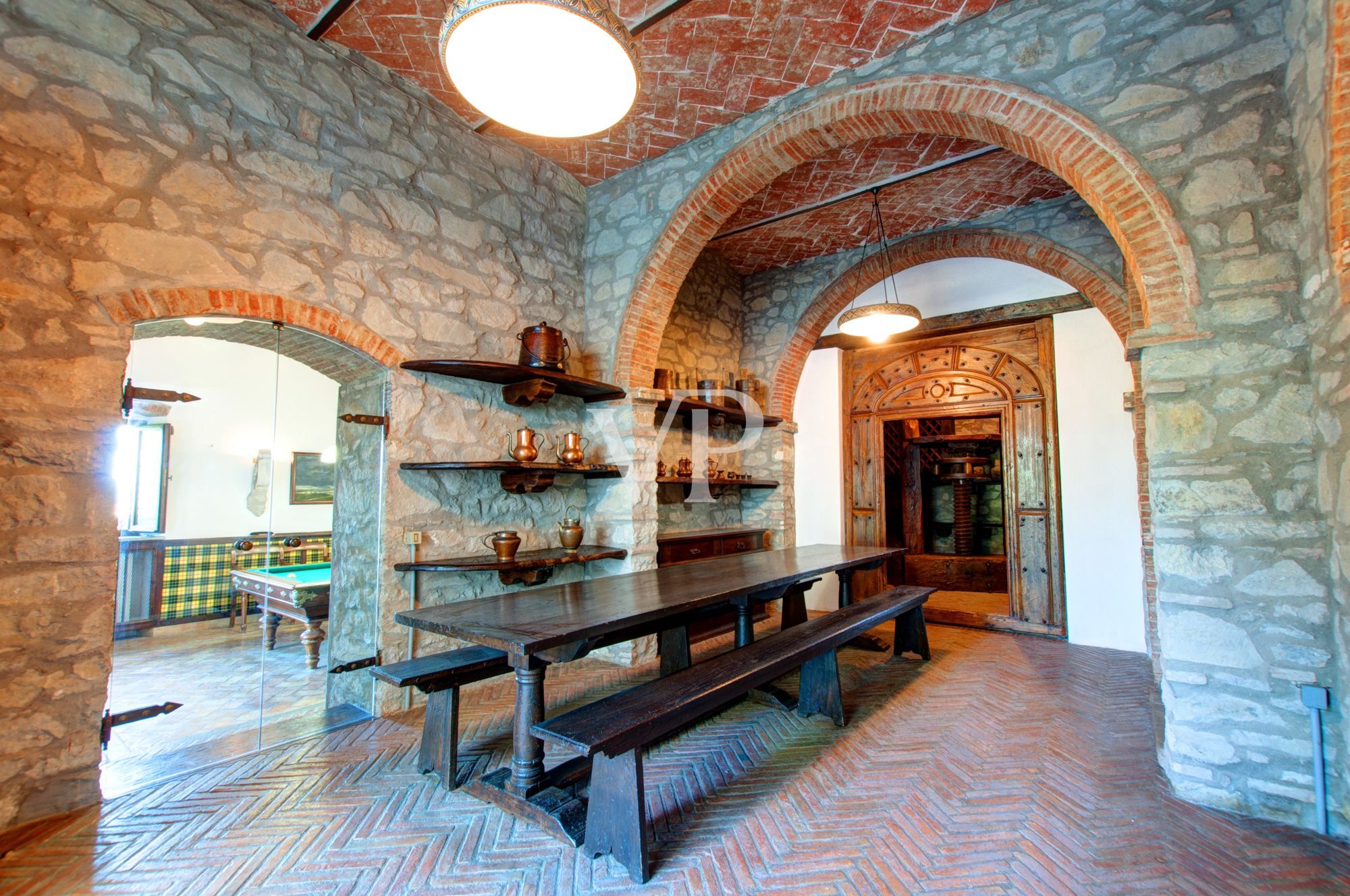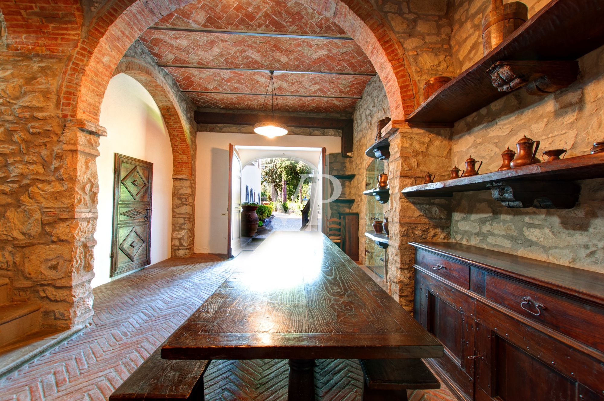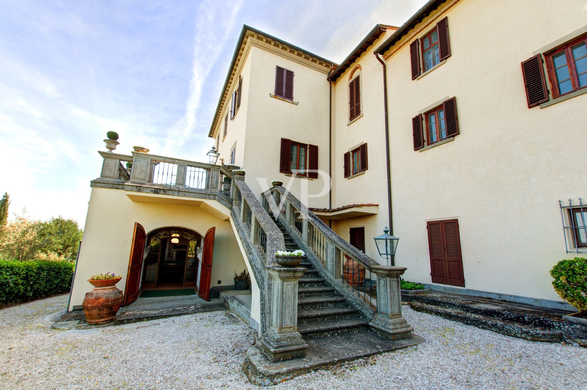 Just a few kilometers from the city center, on a hill with a breathtaking view of Arezzo, stands this beautiful 17th-century villa. The building has been carefully restored by a renowned Milanese architect who has skillfully preserved the historic elements while combining them with modern luxury. The villa spans three floors with a total area of approximately 790 square meters and is surrounded by a large garden of about 4000 square meters, ideal for relaxation and admiring the natural beauty of the surrounding hills, including olive groves and vineyards that once inspired Piero della Francesca.The villa consists of two main parts dating back to the 17th and 18th centuries, which have been conservatively restored by Mariapia Lodesani. On the terrace, ancient sandstone pots from the 18th century harmoniously blend with modern glass and Baroque stone tables. Inside, numerous works of art and stone decorations from archaeological and medieval finds adorn the large salon on the first floor.In the same residence, on the upper floor, the fusion of antique and modern continues. For example, in the bathroom entirely clad in veined Carrara marble, a polychrome relief and a "fontino" in white marble from the 17th century have been mounted on the wall. Downstairs, in the cellar, you will find wines, a great passion of the owner, and dried flowers, a hobby of the lady of the house. Additionally, a separate room has been dedicated to the game of billiards, with the recovery of a valuable French specimen from the 18th century. The owners' bedroom is furnished with an 18th-century Venetian bed, lacquered and painted with floral motifs in shades of green, while the armchairs are of Baroque origin from the same source. In the study, the library is adorned with a polychrome Sicilian marble frame from the 18th century, while the desk and chair, covered with intricately embroidered fabric, are Tuscan from the 17th century. Facing the library is a distinctive 17th-century fireplace, an example of Tuscan folk art, which was already part of the original structure of the house. Even in the bathroom, clad in Carrara marble, the "fontino" dates back to the 17th century.Through a series of lowered arches, you enter the dining room, where the table is supported by 18th-century stone columns from Billiemi, an ancient Sicilian town on the brink of extinction, and features an iron and bronze structure. In this part of the house, the architect managed to incorporate elements from the past, such as the decorated tiles on the shelves from an old Dutch fireplace from the 17th century or the pediments of the brazier, made of Tuscan serpentine stone from the 17th century.Arezzo is a charming city located in the Tuscany region of Italy. It is just a few kilometers from Florence and is known for its rich history, stunning landscape, and cultural treasures.The city has a long history dating back to Etruscan times and was also an important center during the Renaissance, preserving many traces of its glorious past. In Arezzo, you'll find an abundance of historical buildings, including the impressive Cathedral, the Medici Fortress, and the Palazzo della Fraternita dei Laici.Arezzo is also renowned for its artistic treasures. The Basilica of San Francesco houses the famous fresco "The Legend of the True Cross" by Piero della Francesca. This masterpiece is a highlight of Renaissance art and a must-visit for art enthusiasts.The city also boasts a vibrant cultural scene, with music festivals, theater performances, and art exhibitions throughout the year. Arezzo's gastronomic heritage is also noteworthy, with top-notch restaurants serving Tuscan delicacies.Arezzo is surrounded by a picturesque landscape, perfect for hiking and excursions. The gentle hills, olive groves, and vineyards are typical of the Tuscan countryside and provide an ideal backdrop for relaxation and rejuvenation.