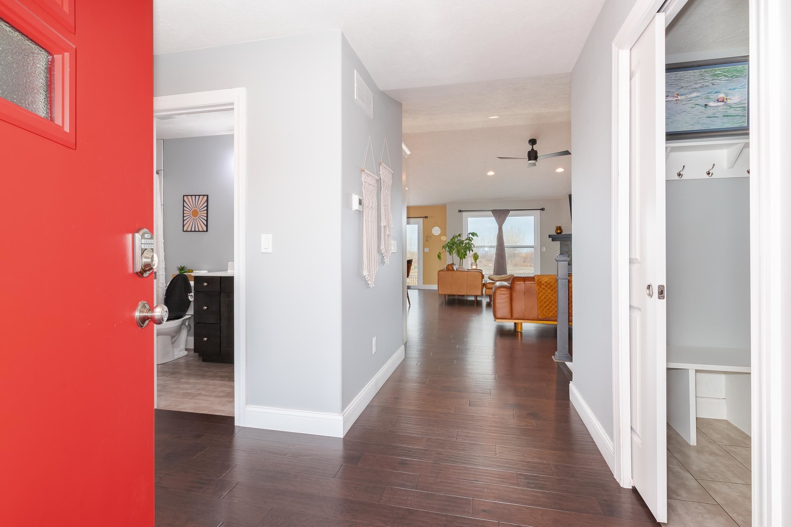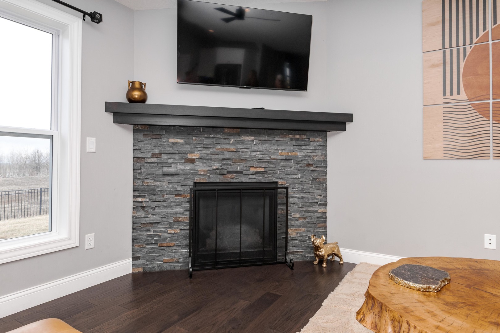 What an incredible and stylish one-story, only 8-year-young, Trunk Bay built home in the beautiful Blackstone Trails subdivision! From the moment you walk in, you are greeted with elevated finishes, including high-quality engineered hardwood flooring in deep walnut throughout the entire main level, lighting fixtures that belong in a home magazine, and paint colors that are right on trend. The kitchen features granite counters that have been "honed" to achieve a luxurious matte finish. In the kitchen corner, you'll find the step-in pantry with an automatic light and plenty of space. All of the high-end appliances will remain, including the washer and dryer. Two generously sized bedrooms can also be discovered on this main level. Then head downstairs to the fully finished basement to see the family room with hidden wiring for its entertainment components, the third bedroom, and the third full bathroom. This bathroom, just like the other two bathrooms, also has a full tiled tub/shower surround. This home gives you all of the current on-trend finishes, plus the extras you won't find in the new homes, features like a fully fenced and landscaped backyard, a Japanese maple tree, planted hydrangea bushes, and an outdoor wireless sound system. The meticulously cared-for home has received twice-yearly regular service on the hvac system and has even already paid in full the 2026 Tru Green fertilizer treatments alrea. This is a true GEM of a home