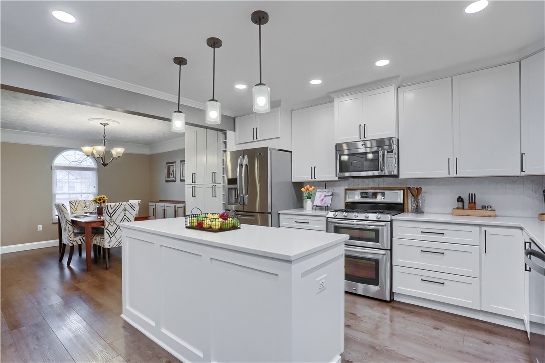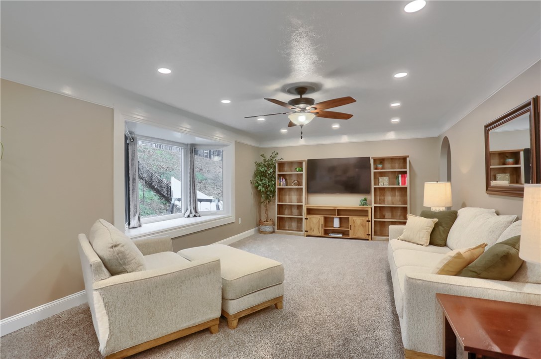 Exquisite Living in the Heart of Moon Township! Welcome to your forever home, perfectly situated on a quiet, picturesque cul-de-sac in the peaceful community of Crosswinds. This stunning 4-bedroom, 3.5-bath Colonial combines sophisticated modern updates with a layout designed for the way you live, work, and entertain. Prepare to be captivated from the moment you step inside. The soaring two-story foyer creates an immediate sense of grandeur, flooding the home with natural light and offering a dramatic preview of the open spaces within. This isn't just an entryway; it's a statement. A chef's dream kitchen, The true heart of this home is the incredible updated kitchen, a masterpiece of design and functionality. Whether you are a culinary enthusiast or a frequent host, you will fall in love with Elegant Quartz Countertops, Providing a durable, sleek, and expansive workspace. Designer Finishes, A stylish ceramic backsplash and chic pendant lighting over the island create a sophisticated ambiance. Massive Center Island, The perfect hub for morning coffee, meal prep, or evening hors d'oeuvres. A double oven makes holidays a breeze! Storage Galore, an innovative "wall of pantries" provides a dream-level of organized storage. Seamless main level and smart utility, the main floor flows beautifully with newer laminate flooring throughout. The inviting family room features brand-new carpeting and a large bay window that floods the space with natural light. For those who work from home, the first-floor study offers a private sanctuary for productivity. Efficiency is at the forefront of this home's design. The updated first-floor laundry room is a standout feature, redesigned with a folding station, extra cabinetry, and the ultimate convenience: a laundry chute connected directly from the second floor. Restful Retreats on the upper level boasts four "awesome" bedrooms, including a magnificent owner's suite. This private sanctuary is equipped with Two massive walk-in closets. Spa-like Ensuite featuring a deep soaking tub, dual vanities, and a separate shower and water closet for ultimate privacy. The Ultimate Entertainment Zone the lower level features a spacious 26x12 game room that defines "turn-key entertainment." This space comes fully equipped with Custom Built-in Cabinetry Providing elegant storage and a clean look. Included Media, the TV is included with the home, perfectly integrated into the built-ins. Wet Bar & Full Guest Bath Making this the ultimate spot for game days or movie nights. Outdoor Oasis, Step outside to your party-sized deck, where a retractable awning ensures comfort in any weather. The fenced-in 2 tier yard offers a secure space for play or pets and enjoy gathering around the firepit for marshmallow night! Beautifully Landscaped with shrubbery and walkways! Key Highlights & Energy Efficiency include Mechanical Updates, Enjoy peace of mind with newer windows throughout and a newer furnace, air conditioning and Hot Water Heater! Elegant crown moldings that add a touch of timeless class! Throughout the home, you'll find tons of recessed lighting, ensuring every room feels bright and airy! Moon Area School District, deep 2-car garage, minutes to all the local parks, The Drive-In, The new Pittsburgh International Airport, and the Mall! Welcome Home!