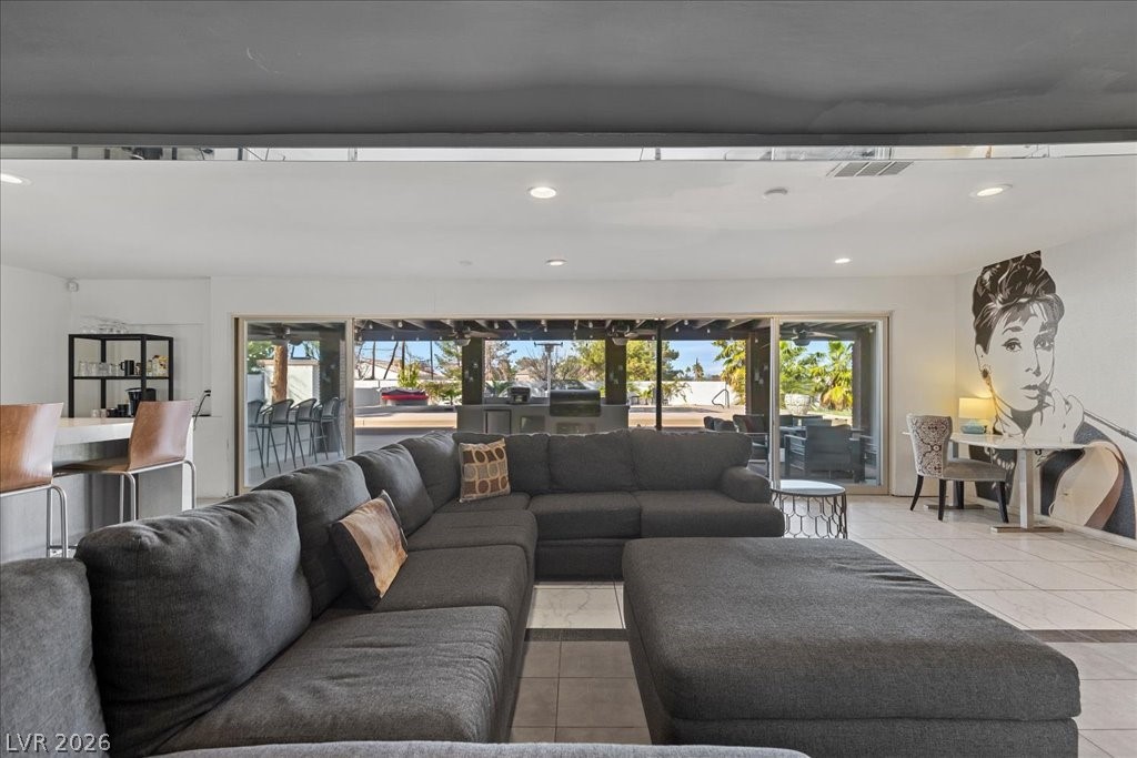 Exceptional custom Las Vegas estate on over half an acre with no HOA and unparalleled privacy currently operating as a fully functional pilot crash pad with month-to-month leasing for pilots. Perfect as a private residence, income property, this 9-bedroom, 5 -bath home offers incredible flexibility and resort-style living just minutes from Harry Reid International Airport. Spacious, open floor plan features light-filled living areas, plantation shutters, and a versatile great room that easily doubles as a game or media room. The entire second floor is dedicated to the private owner's suite, including a spa-like bath and private balcony retreat. Stackable sliding doors open to an entertainer's dream backyard, complete with a sparkling pool, covered patio, built-in BBQ with refrigerator, outdoor island/breakfast bar, and putting green. Separate guest house provides additional space for visitors or tenants. Ample parking includes a 4-car carport, 2-car garage, and RV gate with parking.