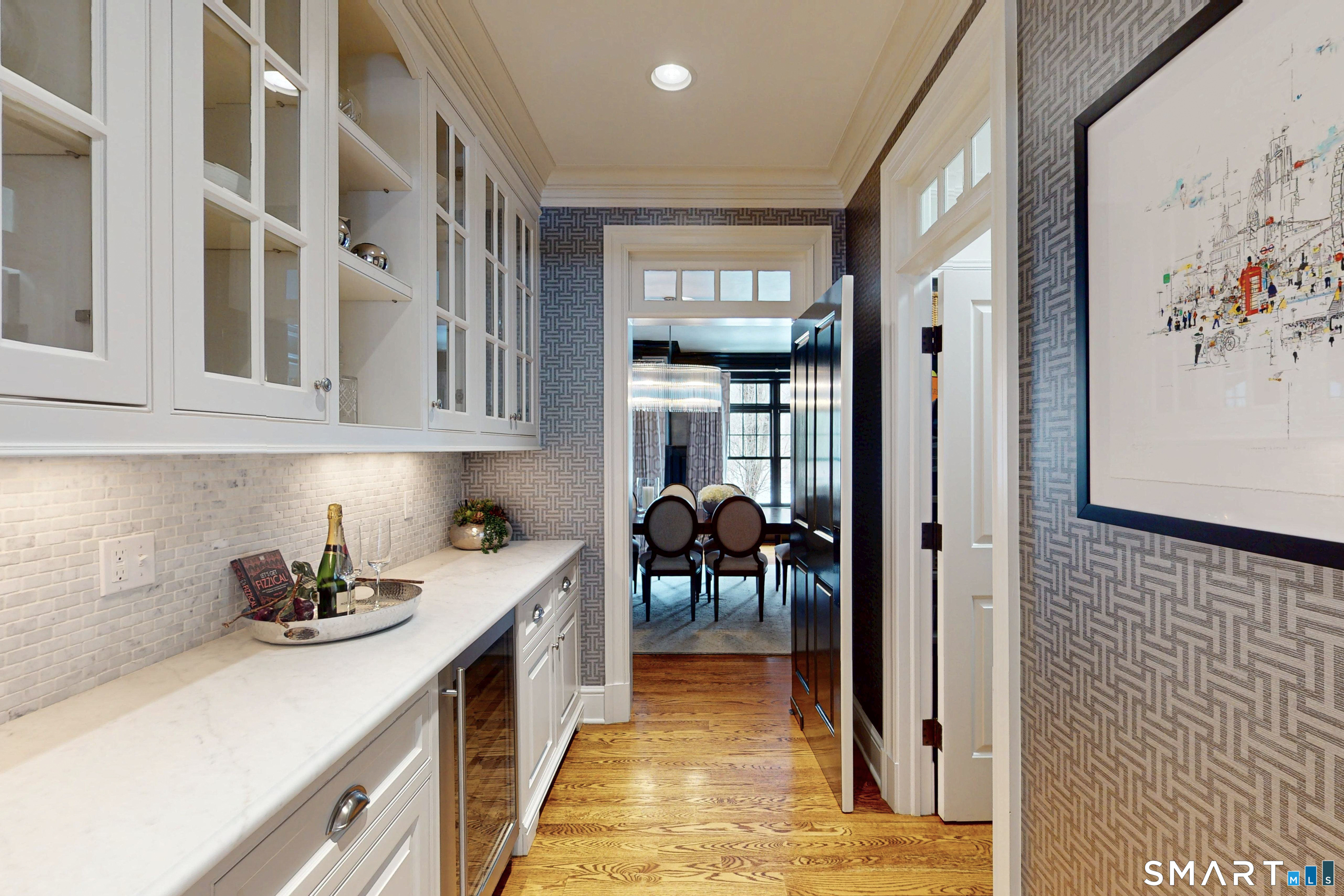 Spectacular quintessential New England home in Darien has it all! Step into a world of refined elegance with this stately 8,000+SF Colonial masterpiece. Set back on nearly two acres of manicured grounds, boasting a custom 2021 Gunite pool, outdoor kitchen, new patio, huge backyard and firepit, this treasured residence is the ultimate venue for indoor & outdoor living and entertaining. The main level features a soaring 2-story foyer that transitions into a formal living room w/fireplace & stunning formal dining room w/ butlers pantry, wet bar, wine fridge & food pantry. Step into the chef's kitchen w/ 16ft marble island, Miele range, dual Sub-zeros & sun-drenched breakfast area. The kitchen flows into a massive family room w/ stone fireplace & adjoining sunroom w/ 25ft stone fireplace w/French doors to backyard & pool. There's a large, office w/ custom paneling & coffered ceiling, a mudroom w/built-ins, plus a full bath, a powder room and back staircase to upper level rooms. The 2nd floor primary suite is a private sanctuary, defined by 11-foot barrel vaulted ceilings, a fireplace, 2 walk-in closets and a spa-inspired marble bath w/double sink, soaking tub & steam shower. There are 4 additional en-suite bedrooms, a laundry room & open space for study/gaming. The 3rd floor has over 2,400sqft of storage/ potential living space!