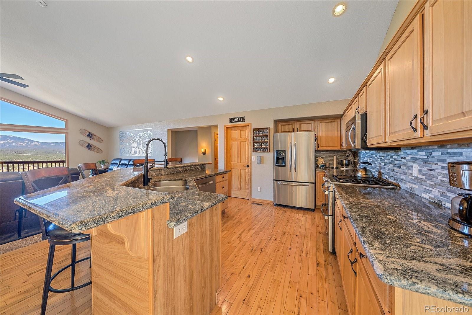 Stunning west-facing mountain & valley views 50 amp EV charging plug in garage Remodeled Newley Updated U.S. Route 285 - approx. 2 minutes C-470 - approx. 30 minutes Pine Valley Ranch Park - approx. 7.5 miles Staunton State Park - approx. 14 miles Services, dining, and groceries in Bailey - approx. 3 miles This rare mountain gem delivers endless adventure and serene escapes - your dream Colorado lifestyle starts here! Discover this custom-built mountain retreat on 2.41 private acres in Burland Ranchettes! Jaw-dropping valley and mountain views await you. enjoy stunning sunsets overnight from the balcony, surrounded by aspen, pine, rock outcroppings, and a secluded, fire-mitigated lot. Single-story living shines with an open floorplan, high-end interior finishes, new fixtures and hardware, plus a finished basement. The great room includes high windows that overlook Mount Rosalie, truly stunning year around. Newly remodeled bathrooms dazzle with a luxurious 5 piece bath including a jetted tub and walk in shower. Gourmet kitchen delights with granite counters, walk-in pantry, gas range/oven, double oven, dishwasher, microwave, and refrigerator. Cozy up by the gas fireplace in the Great room or the wood-burning fireplace in the basement. The home includes solid wood doors, high ceilings, and abundant natural light. High-speed fiber internet blasts over 900 Mbps upload/download - ideal for remote work or streaming. Stay charged with 50 amp EV outlet in the attached 2-car garage, plus 30 amp RV charging and dedicated RV parking. Radon Mitigation system installed. Outdoor paradise includes a fire pit with seating, tree house play area, private yard, and easy trail access nearby. Don't wait homes with views like these rarely come on the market.