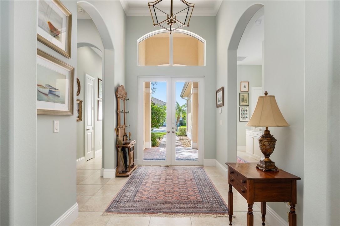 Live 5-7 min from beaches, shopping, Cleveland Clinic and more! This 3BR+Den/3.5BA, 2015 GHO home features an open floor plan with volume ceilings. Large gourmet island kitchen boasts an induction cooktop, wine cooler, pantry and more. Primary suite with 12 ft tray ceiling, double Calif Closets, and a spacious bathroom w/ soaking tub and walk in shower. Each bedroom features its own en-suite bathroom and custom closets. Tropical covered screened lanai with saltwater pool. Impact windows with custom window treatments. Community offers tennis, heated pool, fitness room, and gathering space.