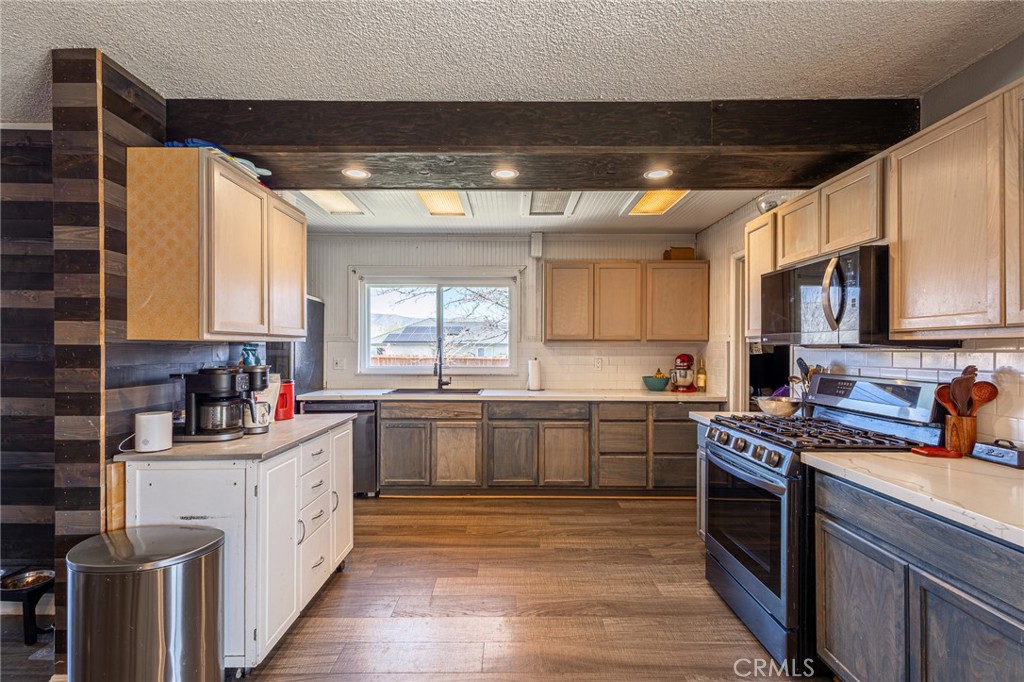 Come up to Tehachapi! Where a GOOD VALUE still exists! This is the wonderful community of Golden Hills East. Excellent parks and walking paths nearby. Close to shopping in town and freeway close too. This charming family home was recently remodeled. Newer laminate flooring throughout. Bedrooms have newer carpets. Water heater just replaced. Awesome kitchen remodel! Newer cabinets, countertops, backsplash, newer deep sink and faucet. Newer stainless appliances! Exhaust hood, microwave oven, dishwasher, gas stove and oven. Even a new garbage disposal! Primary bathroom has a newer shower/tub. Newer counter top, sink and faucet. The hallway bath has the same upgrades too! You'll love the big family room with cozy wood stove for those chilly winter nights! You can sip your morning cup of coffee on the covered porch in front or the larger covered patio in back. The entire perimeter has a tall wood fence and a double wide gate on the east side. Perfect for parking your trailer or RV. There is a water hookup available too. There are 3 storage sheds that will remain there. Plus 220 volt outlet in the garage - ready for the electric car charger! This traditional style country home sits on a large flat corner lot. 1/3 of an acre. Great place to call your new HOME!