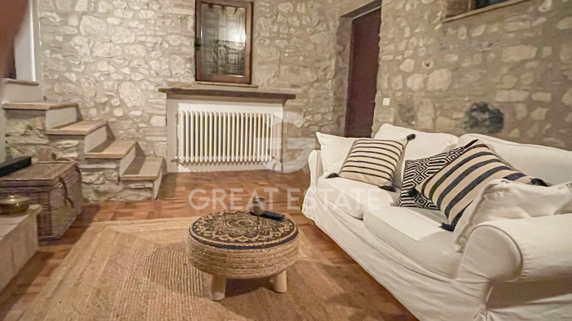 Charming restored stone farmhouse with views of TodiImmersed in the խաղաղ tranquility of the Umbrian countryside, we offer for sale a beautiful historic farmhouse, finely restored with great care and respect for traditional Umbrian materials and architectural styles.The farmhouse, with a surface area of approximately 260 mq, is built in stone and features wooden beam ceilings, terracotta floors in the living area, and high-quality parquet in the sleeping quarters, creating a warm and authentic atmosphere.The property is arranged over two levels:- Ground floor: kitchen with dining area and welcoming living room.- First floor: three bedrooms, three bathrooms, and a sitting room, connected to the lower level by an internal staircase.Externally, the property is surrounded by approximately 1,600 mq of private courtyard, where there is a charming iron and glass greenhouse, ideal as a winter garden or space for ornamental plants.The house is not connected to the public water supply but is equipped with an underground collection tank. The current owners benefit from a verbal agreement with the owner of the surrounding land, allowing the cistern to be filled with water from a private well.Approximately 20 meters from the property runs the historic old Centrale Umbra railway line (Terni–Perugia), which has been out of use for many years.From the garden and the upper floor windows, one can admire the beautiful hill of Todi, offering the property a picturesque and quintessentially Umbrian panorama.The property is accessed via approximately 1.8 km of well-maintained unpaved road, and the main services can be reached in about 10 minutes by car.A farmhouse of great charm and authentic atmosphere, ideal as a private residence, holiday home, or investment opportunity in the heart of Umbria.