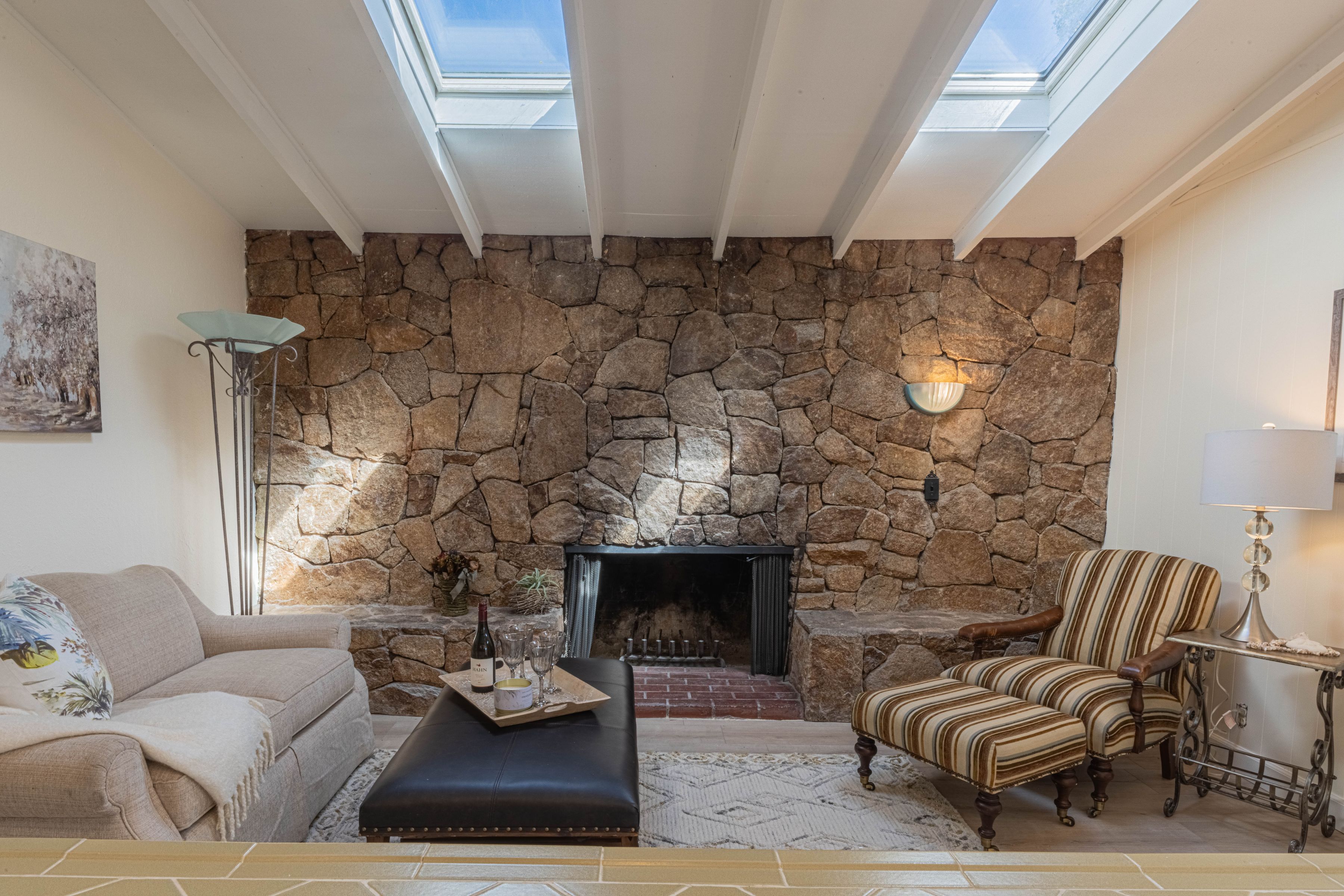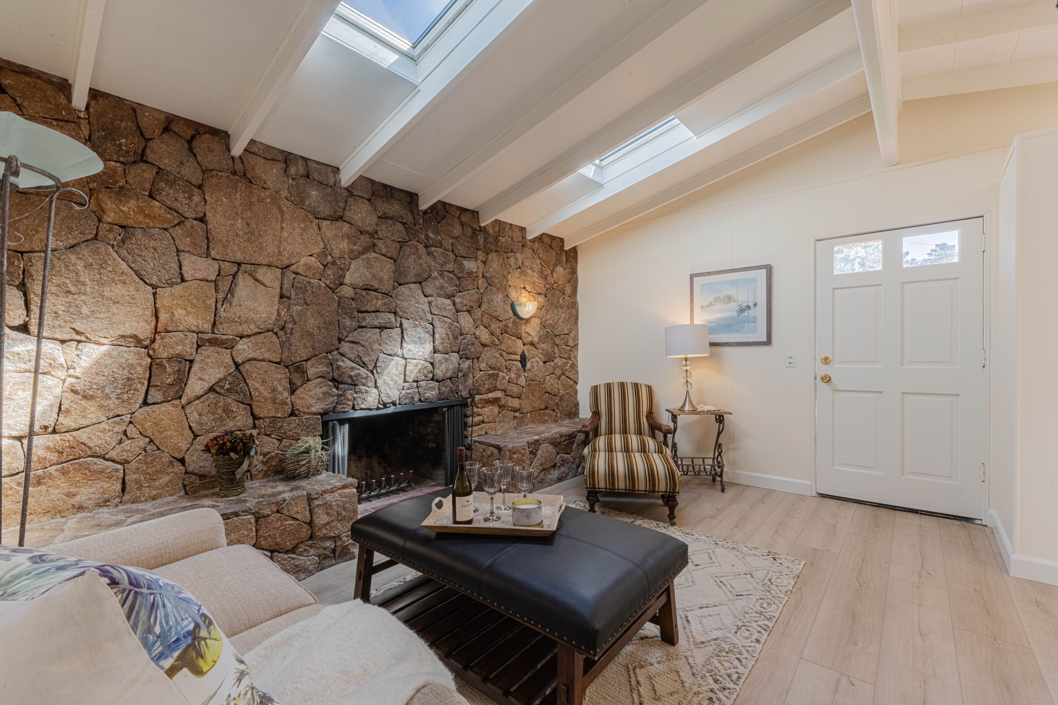 Cozy Pacific Grove cottage located in the sunny Del Monte Park neighborhood. This 2-bedroom, 1-bath home has been recently refreshed with new interior paint, luxury vinyl plank flooring, a new wall furnace, and new appliances, creating a clean and comfortable living space ready for its next owner. The inviting living room features vaulted open-beam ceilings, skylights, and a striking floor-to-ceiling stone fireplace, filling the space with natural light and warmth. The intimate layout makes excellent use of the homes square footage while maintaining a bright and welcoming feel. Situated on a 4,500 sq ft lot, the property offers a sunny backyard with space for gardening, relaxing, or entertaining. A carport with utility area and laundry hookups provides convenient off-street parking. Ideally located with easy access to Highway 68, and just minutes from Pebble Beach, Asilomar Beach, and downtown Pacific Grove.